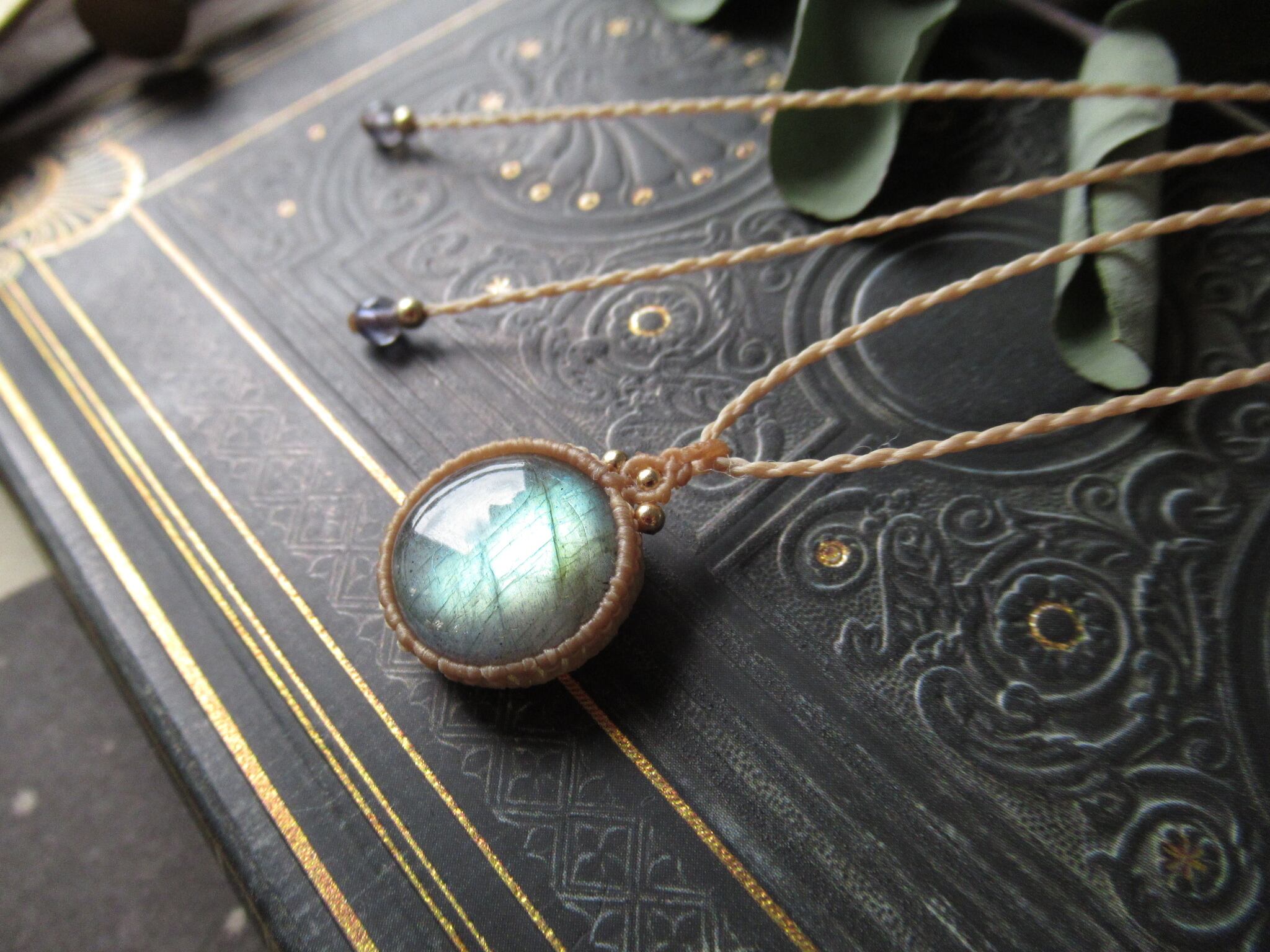 うるつやライムグリーンラブラドライトのマクラメペンダント / 0.25mm仕上げ