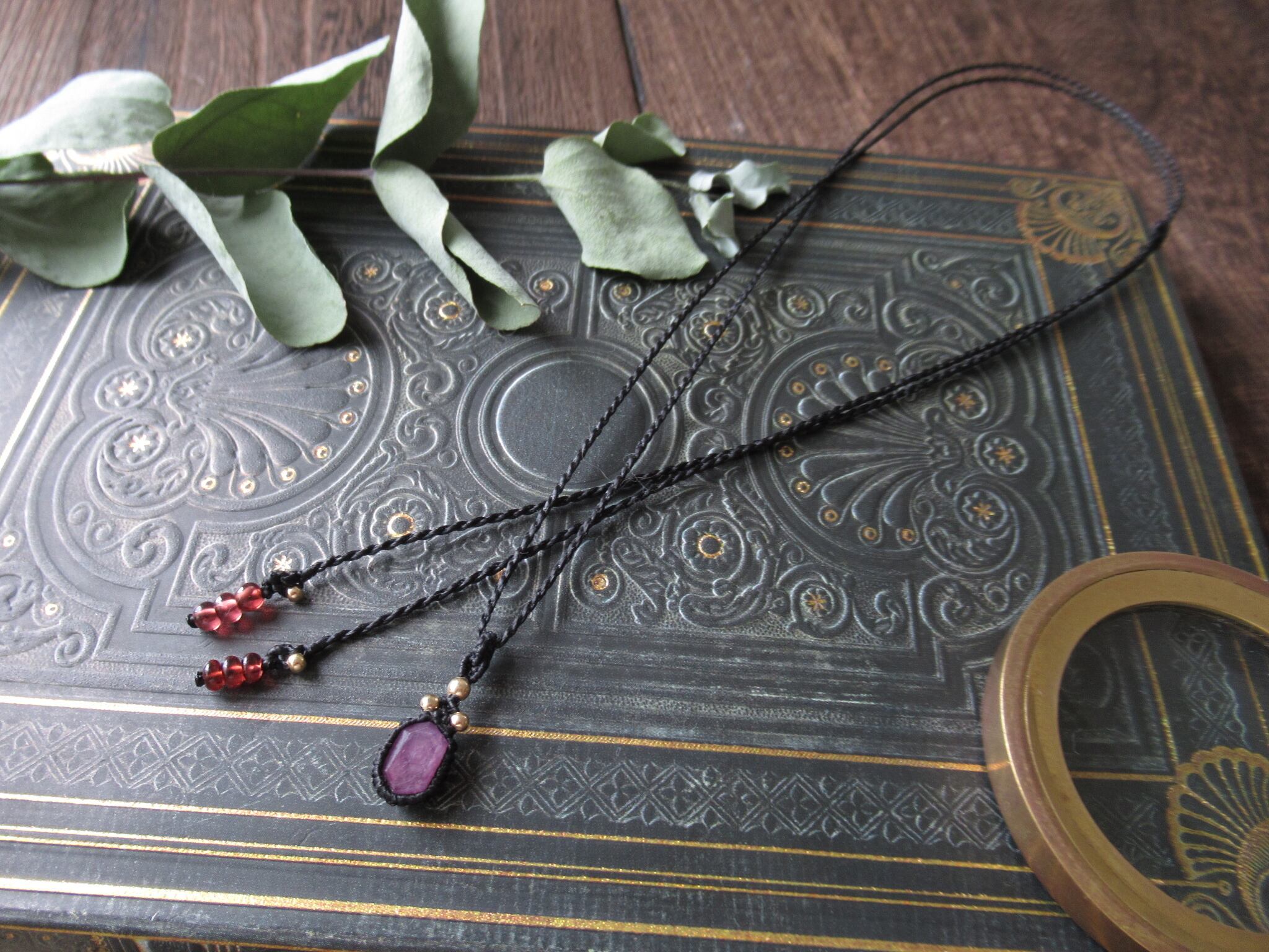 ラズベリーピンクの非加熱サファイアでマクラメペンダントを製作いたしました。
