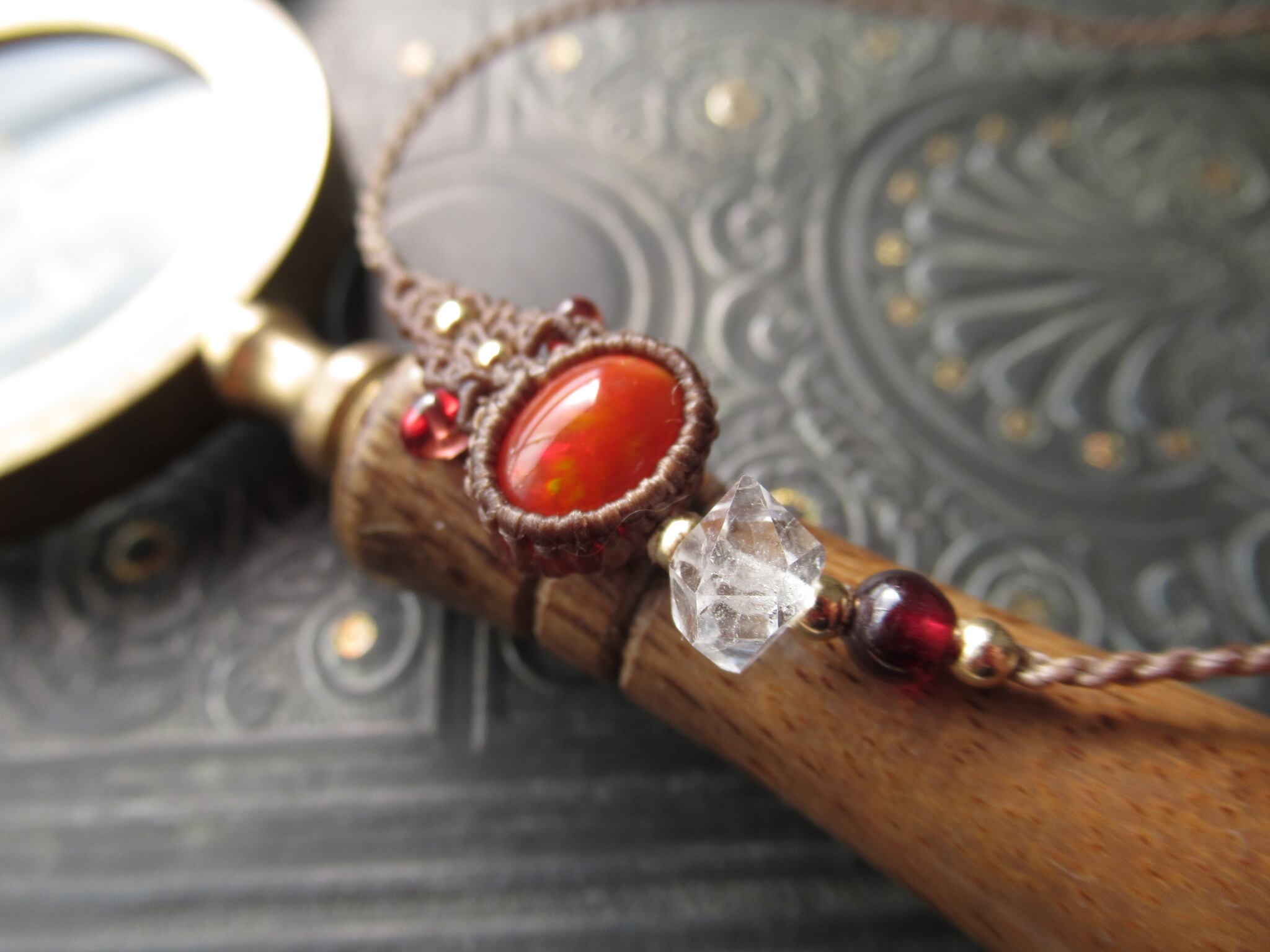 燃え上がる炎のようなオパールとハーキマーダイヤモンドの天然石ビーズを組み合わせ、夏らしい色合いのスッキリとした細身のデザインのアシンメトリーブレスレットを製作しました。