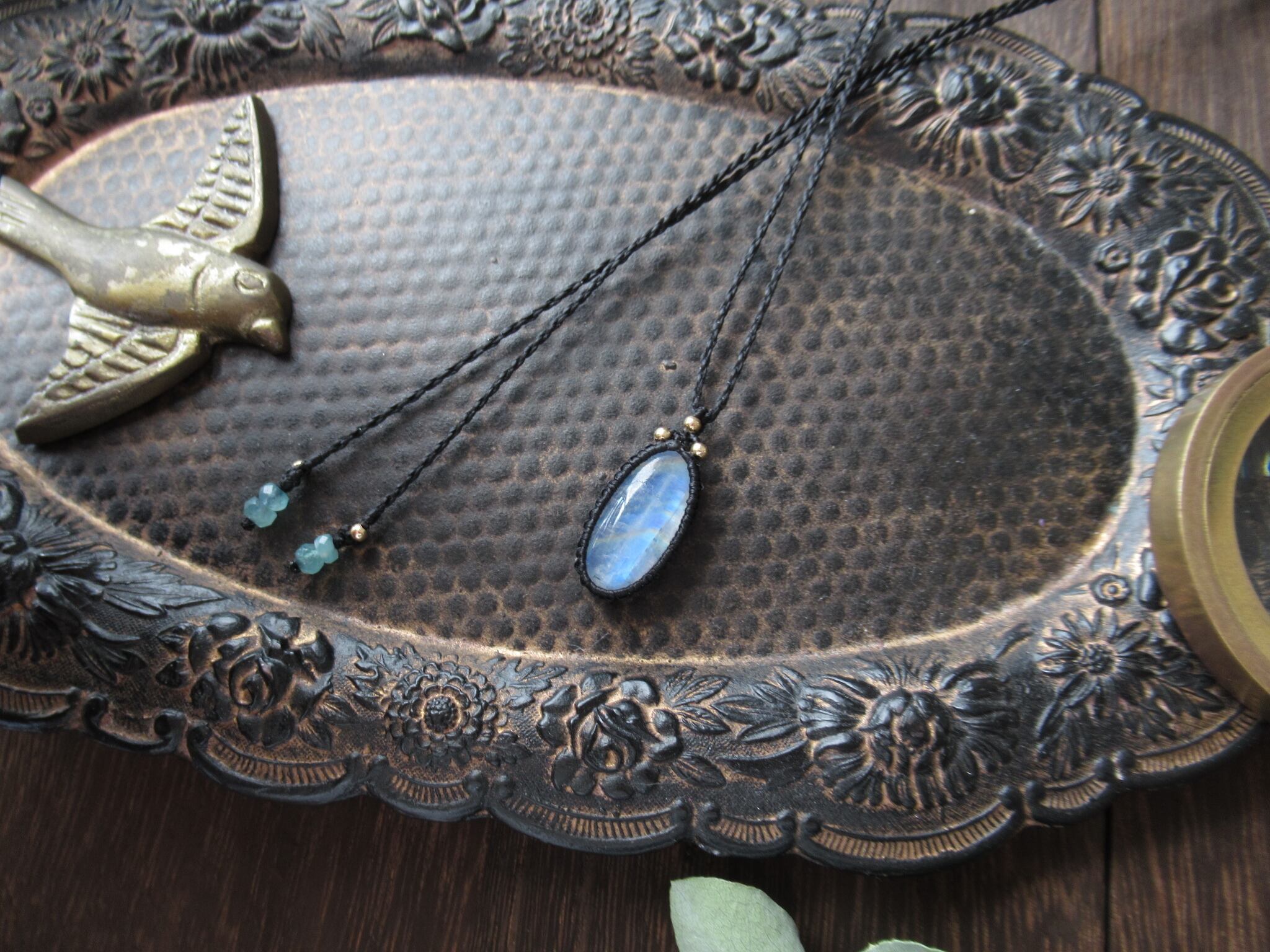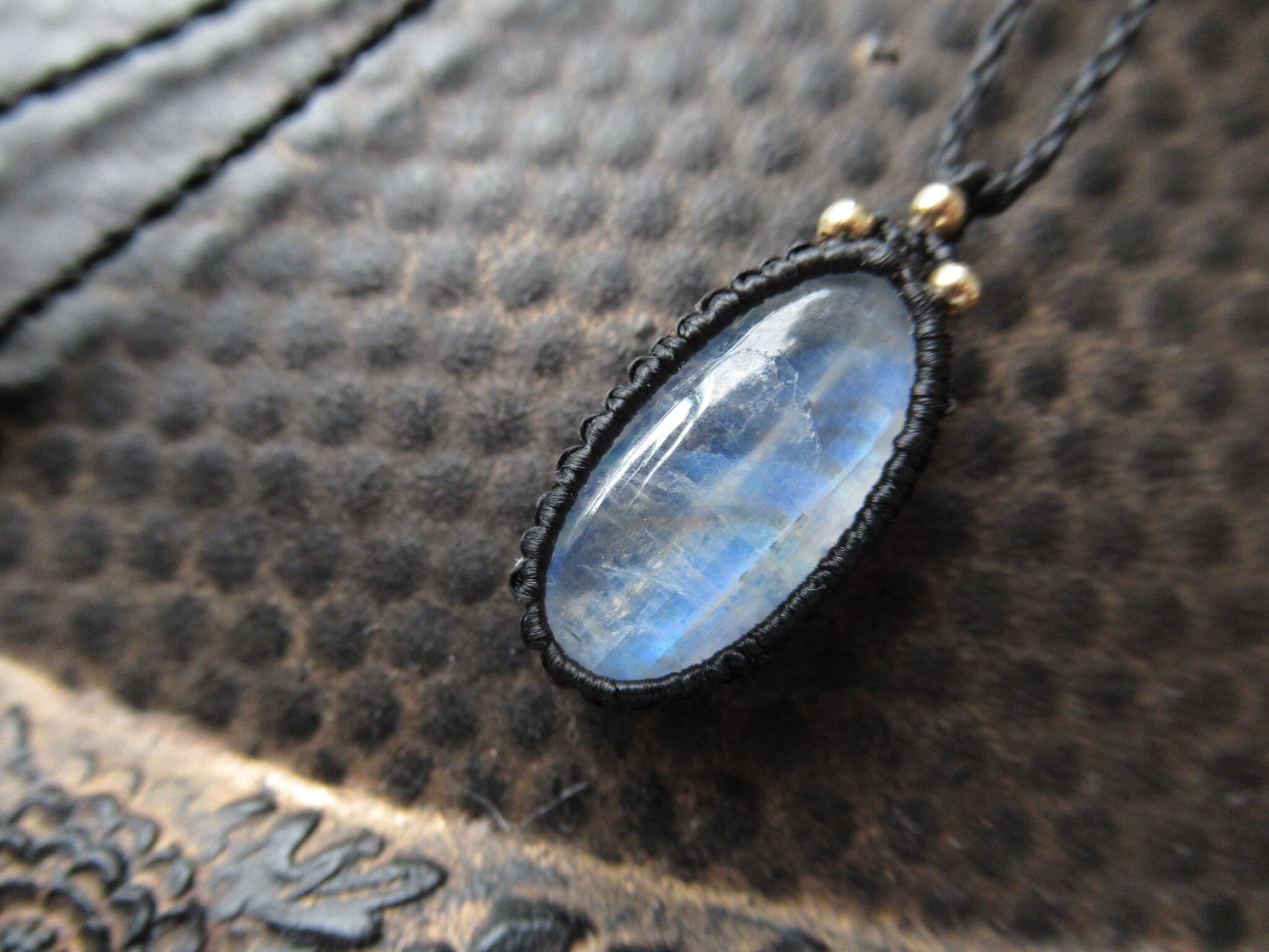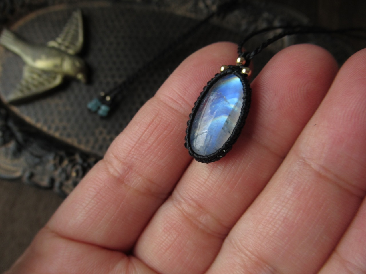 レインボームーンストーンのマクラメペンダント / 0.25mm仕上げ