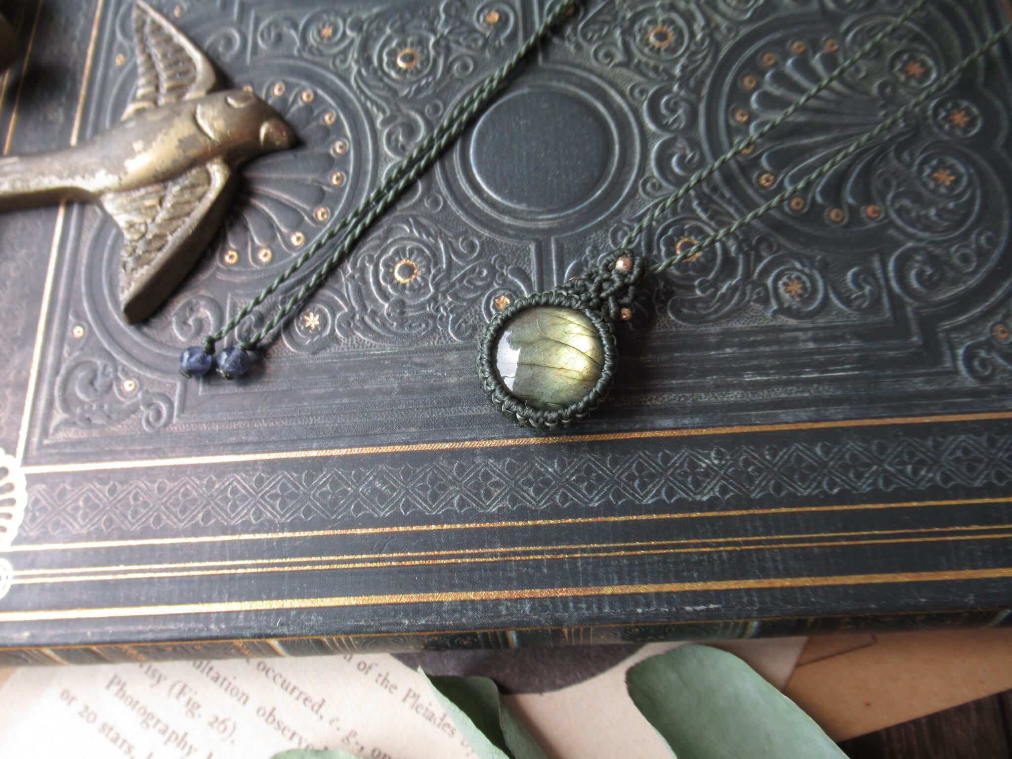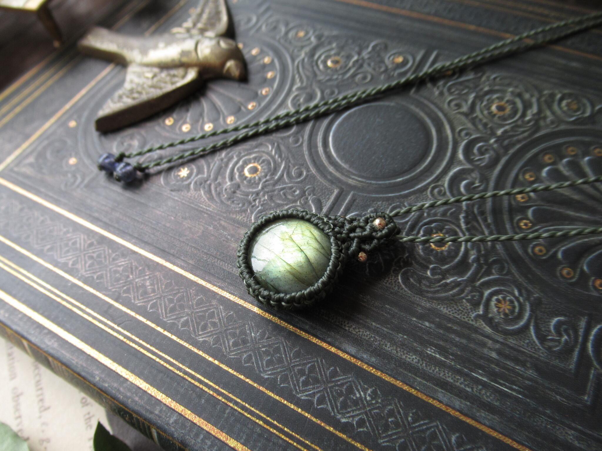 ラブラドライトのマクラメペンダント / 0.5mm仕上げ