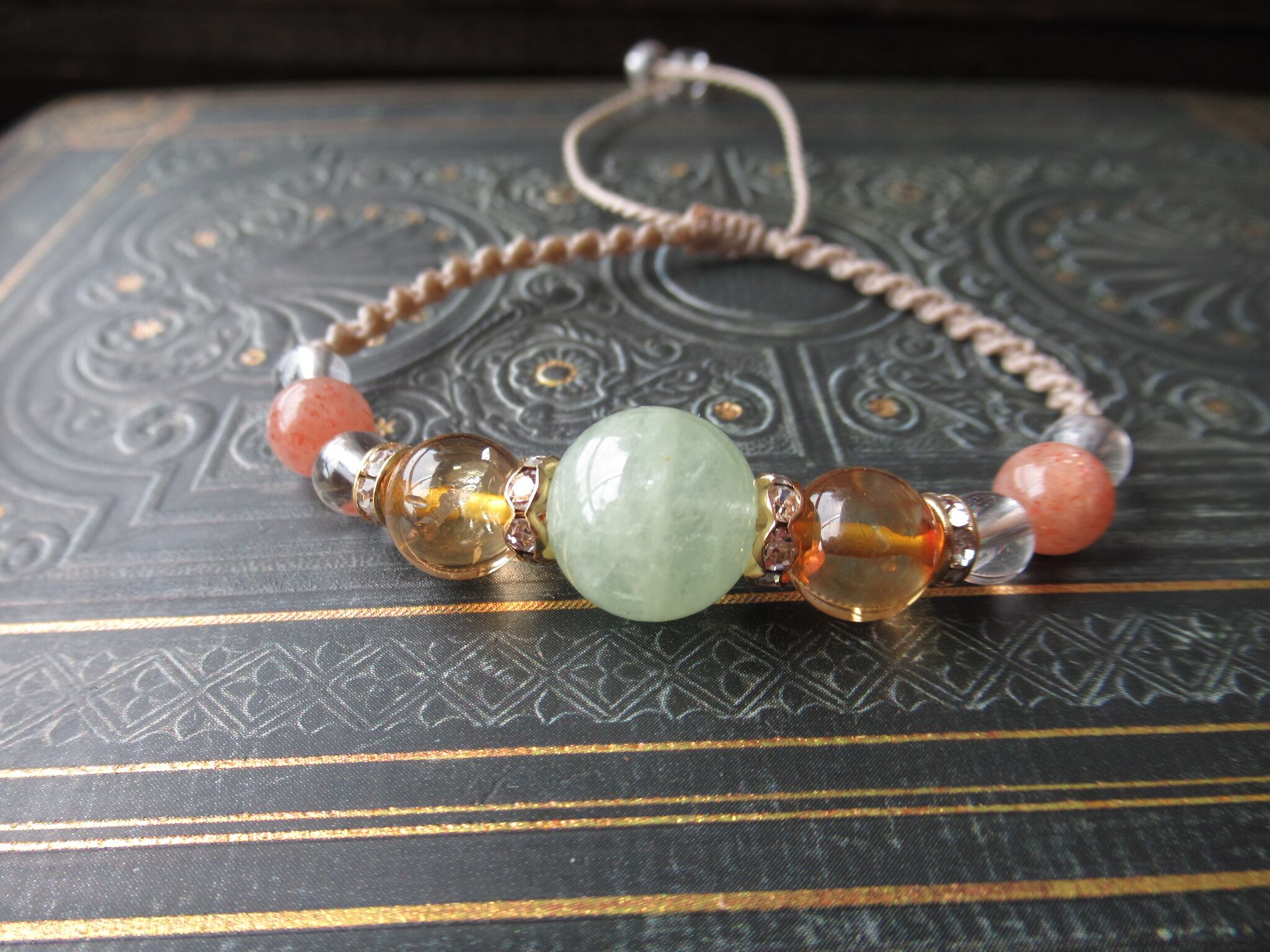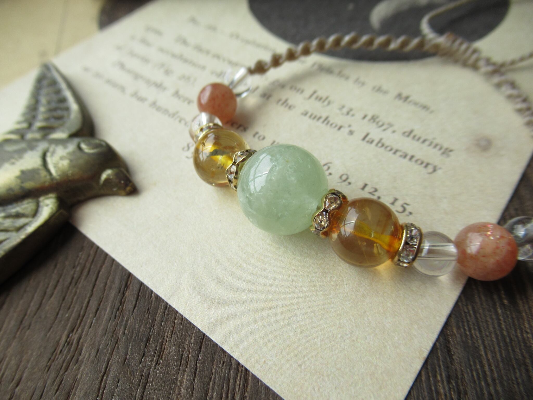 グリーンベリル、ウルグアイ産シトリン、ヒマラヤ水晶、サンストーンです。