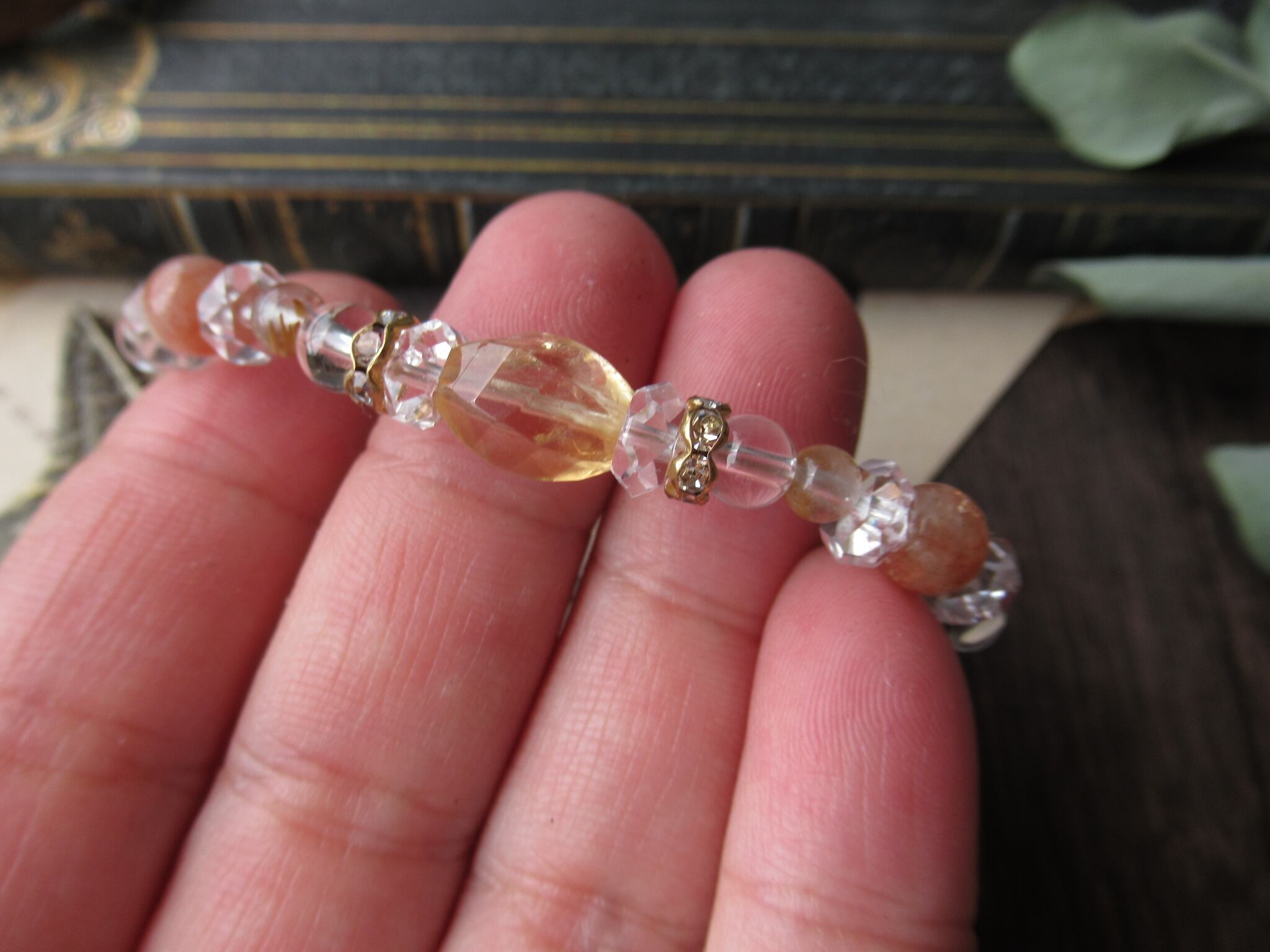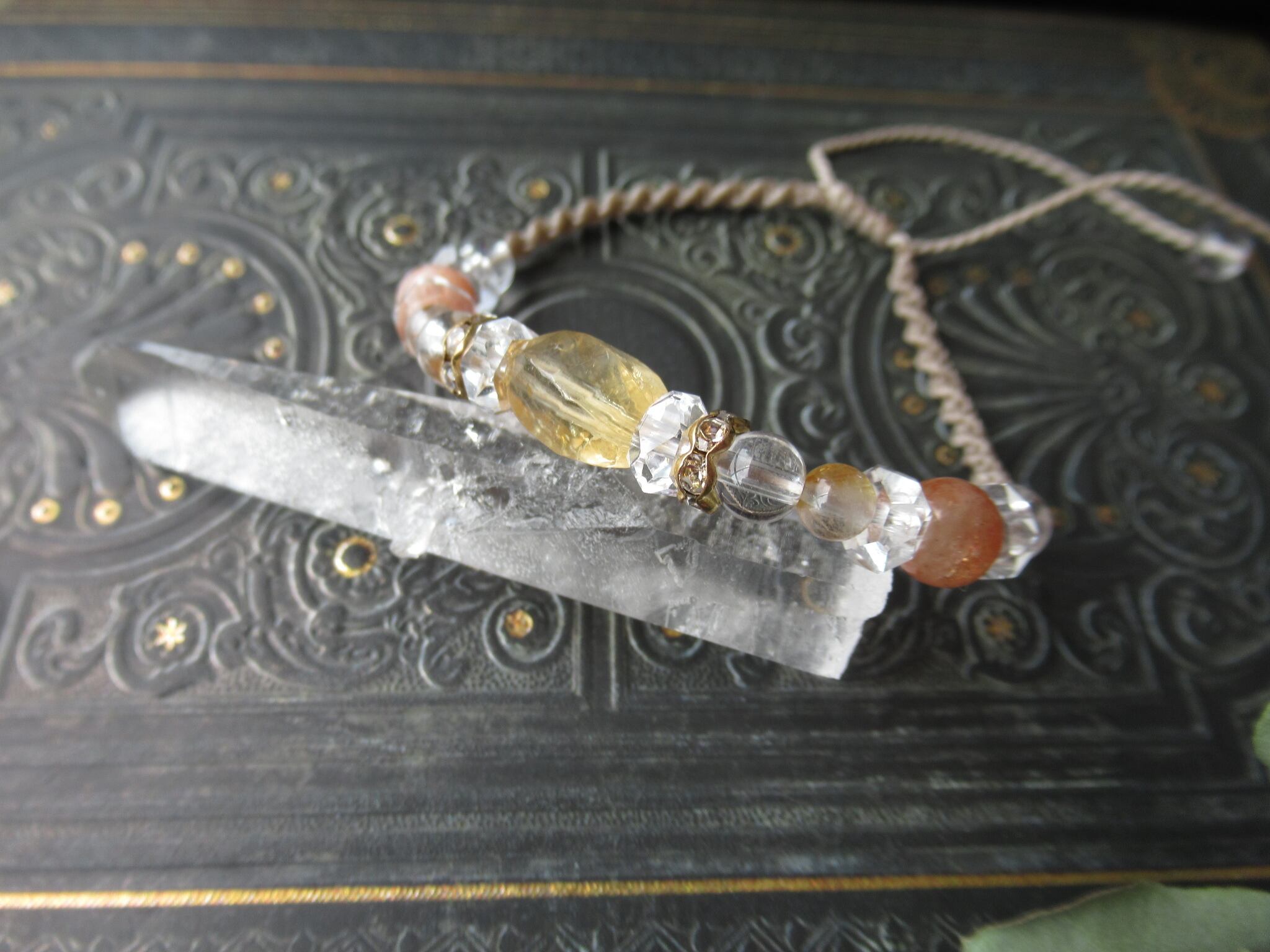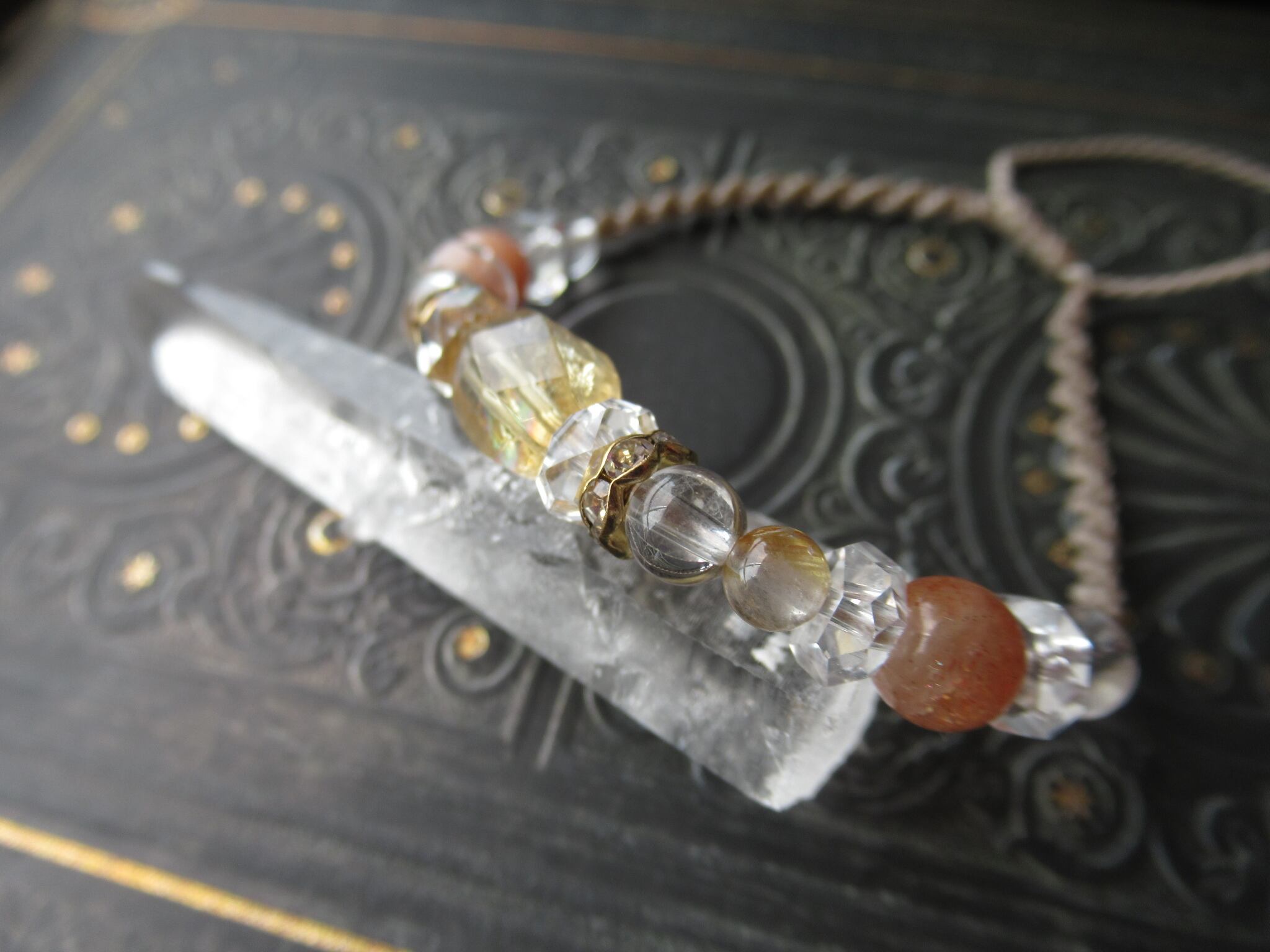 シトリン、ブラジル産水晶(カットロンデル)、ヒマラヤ水晶、ルチルクォーツ、サンストーンです。