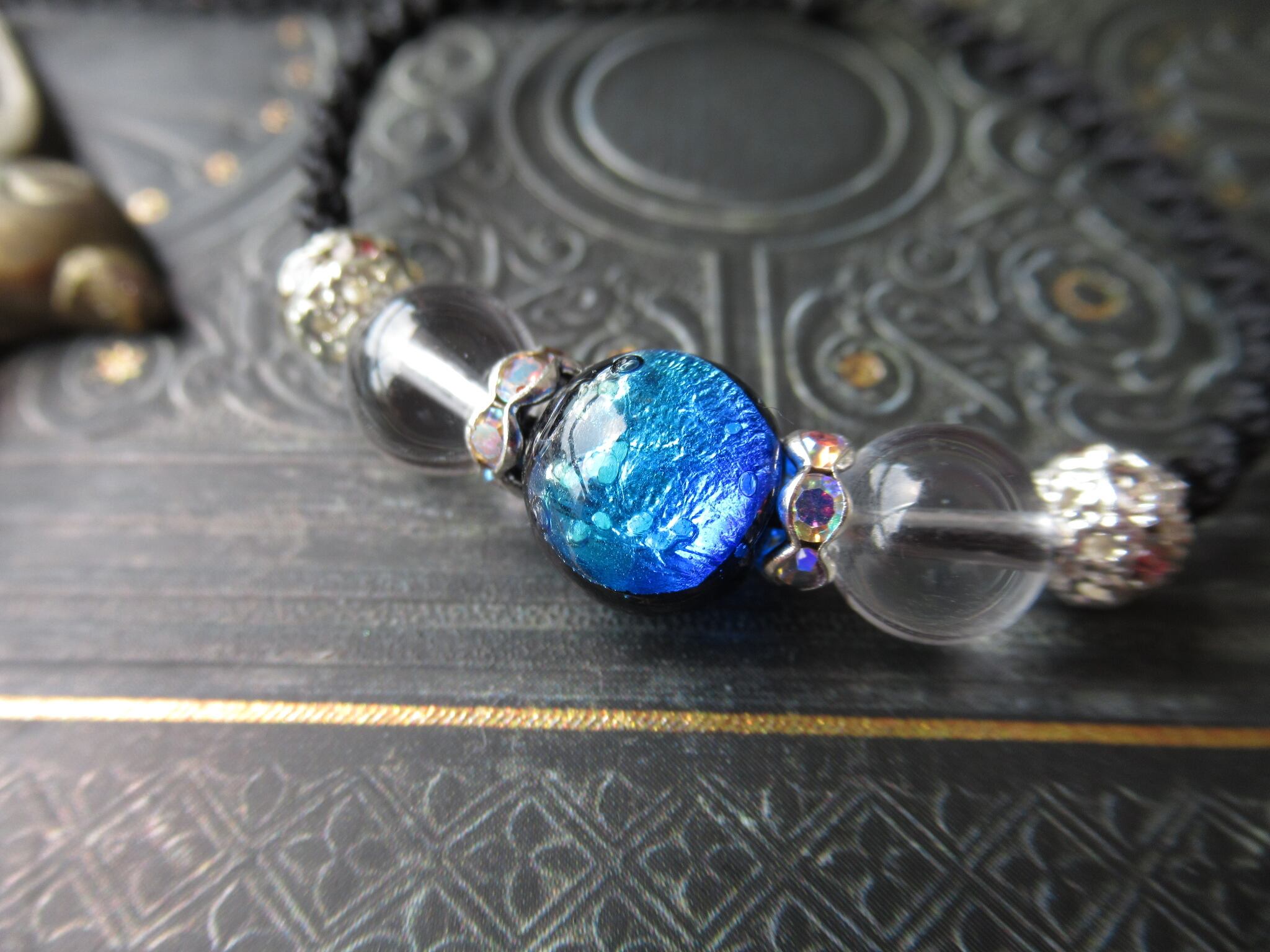 蓄光蛍ガラスとヒマラヤ水晶のマクラメブレスレット / 0.5mm仕上げ /