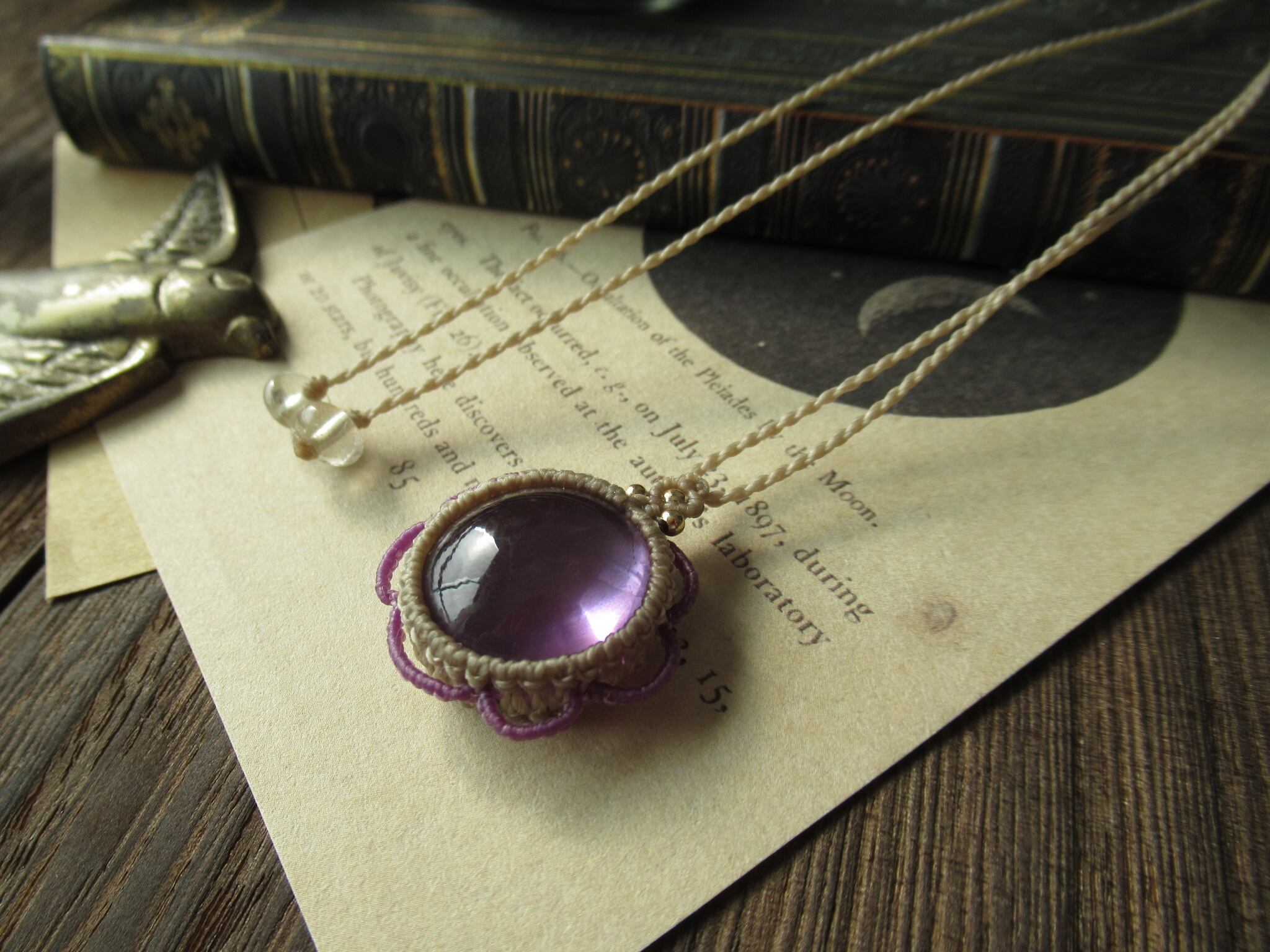 すこし大きめぷっくりアメジストのお花のマクラメペンダント / 0.5㎜仕上げ