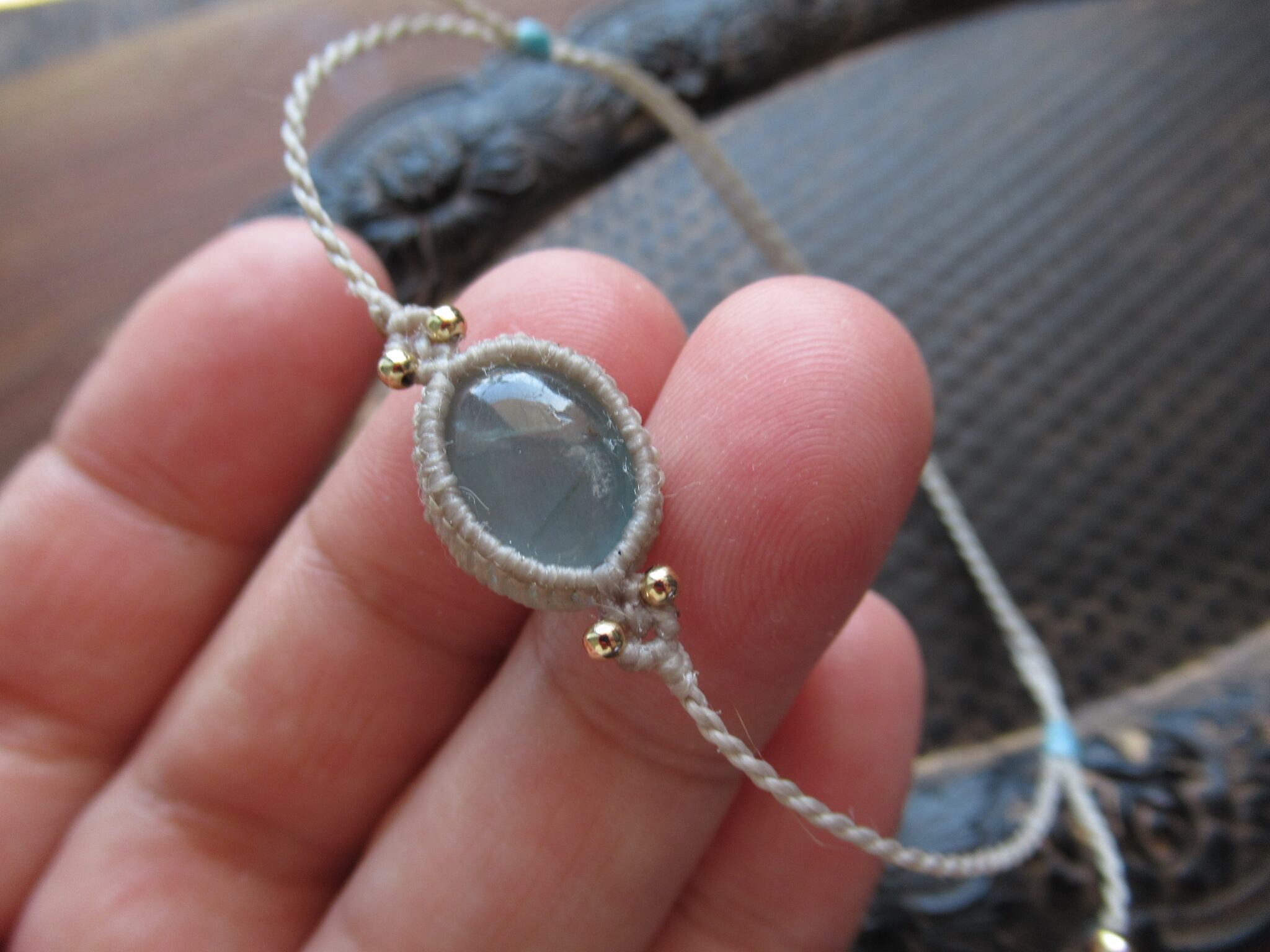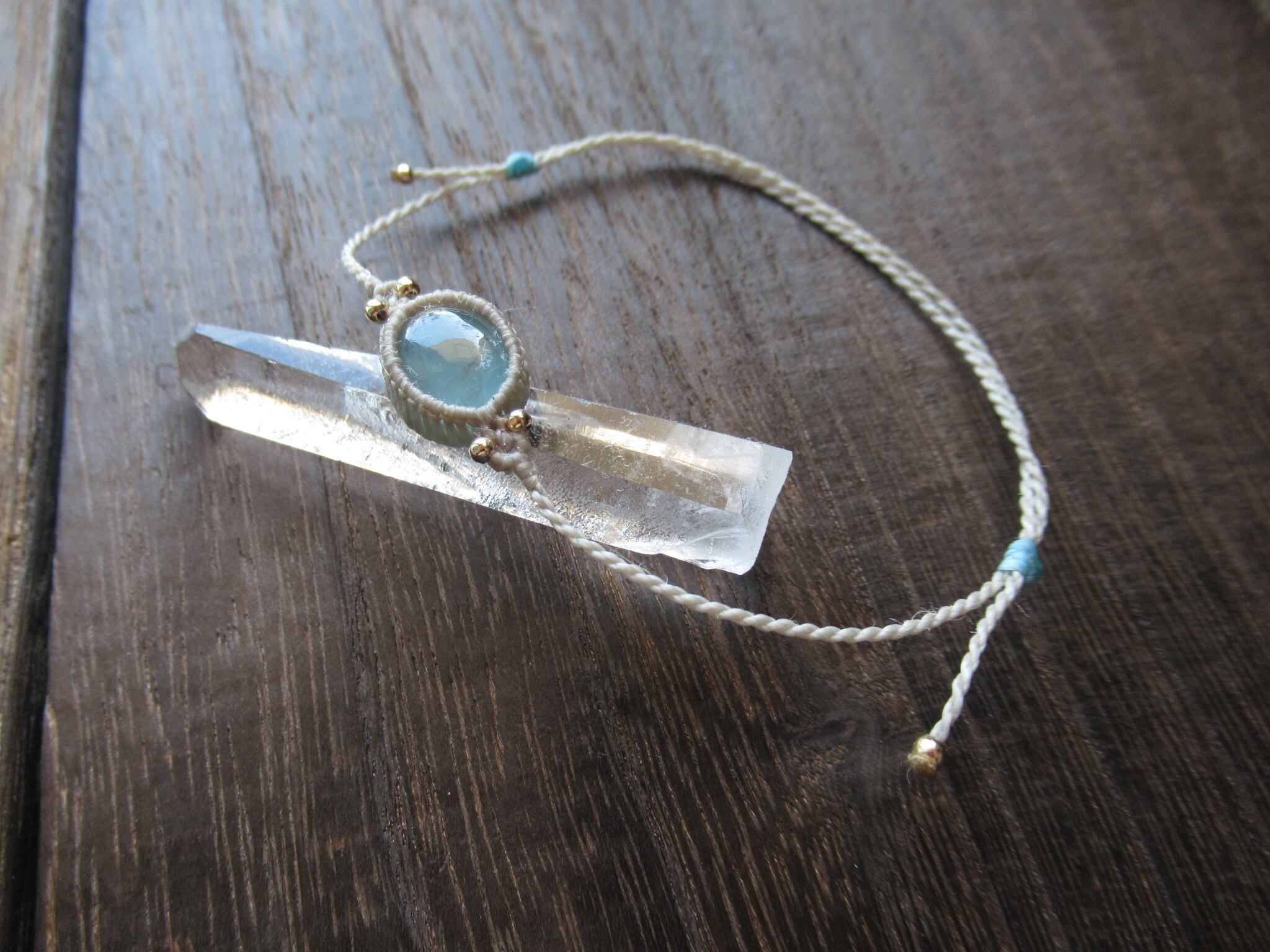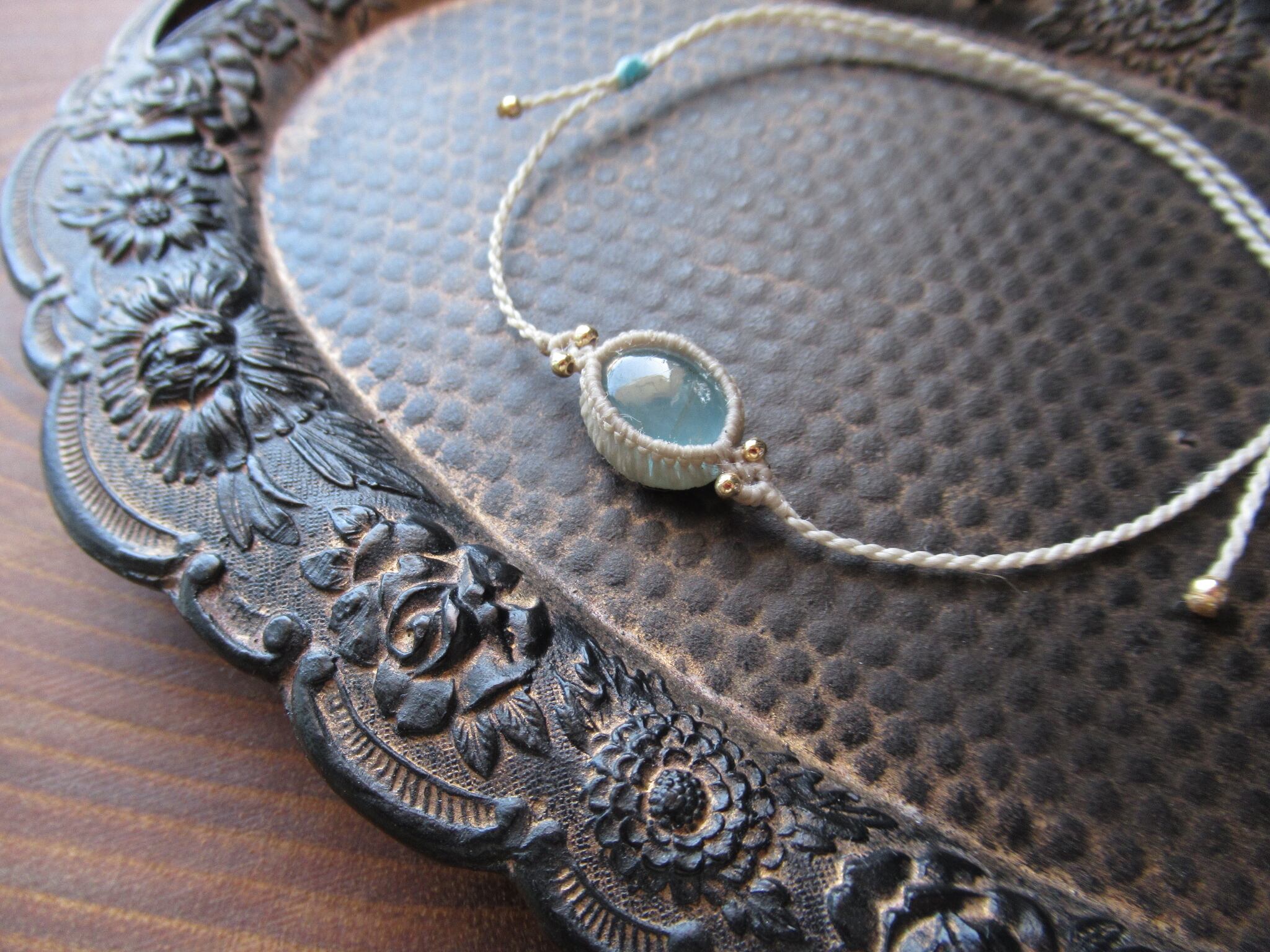夏季限定:ブラジル産アクアマリンのマクラメアンクレット / 0.25mm仕上げ