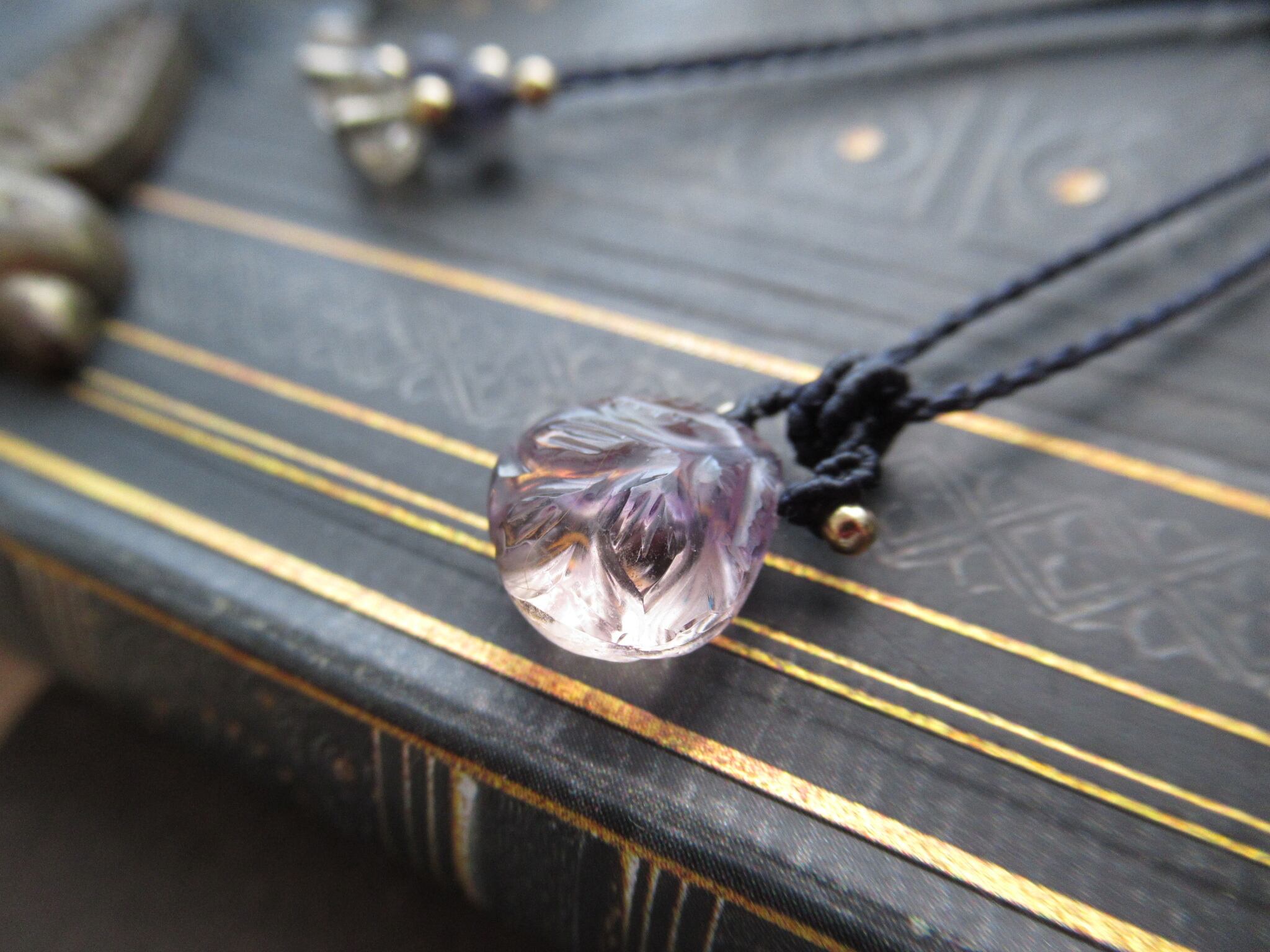 葉っぱ模様の宝石質アメトリンの小さなペンダント /0.25㎜仕上げ