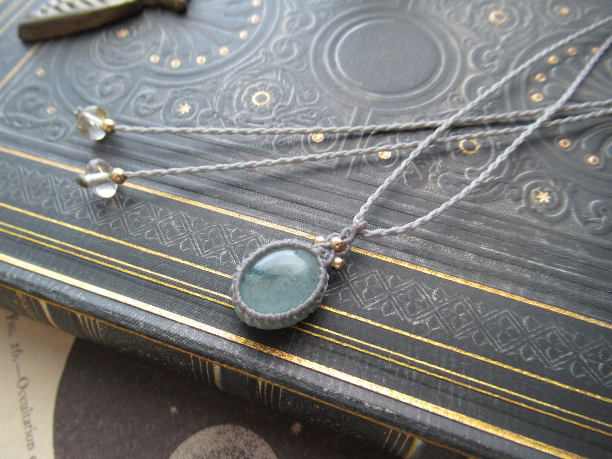 ブラジル産非加熱アクアマリンのマクラメペンダント / 0.25mm仕上げ