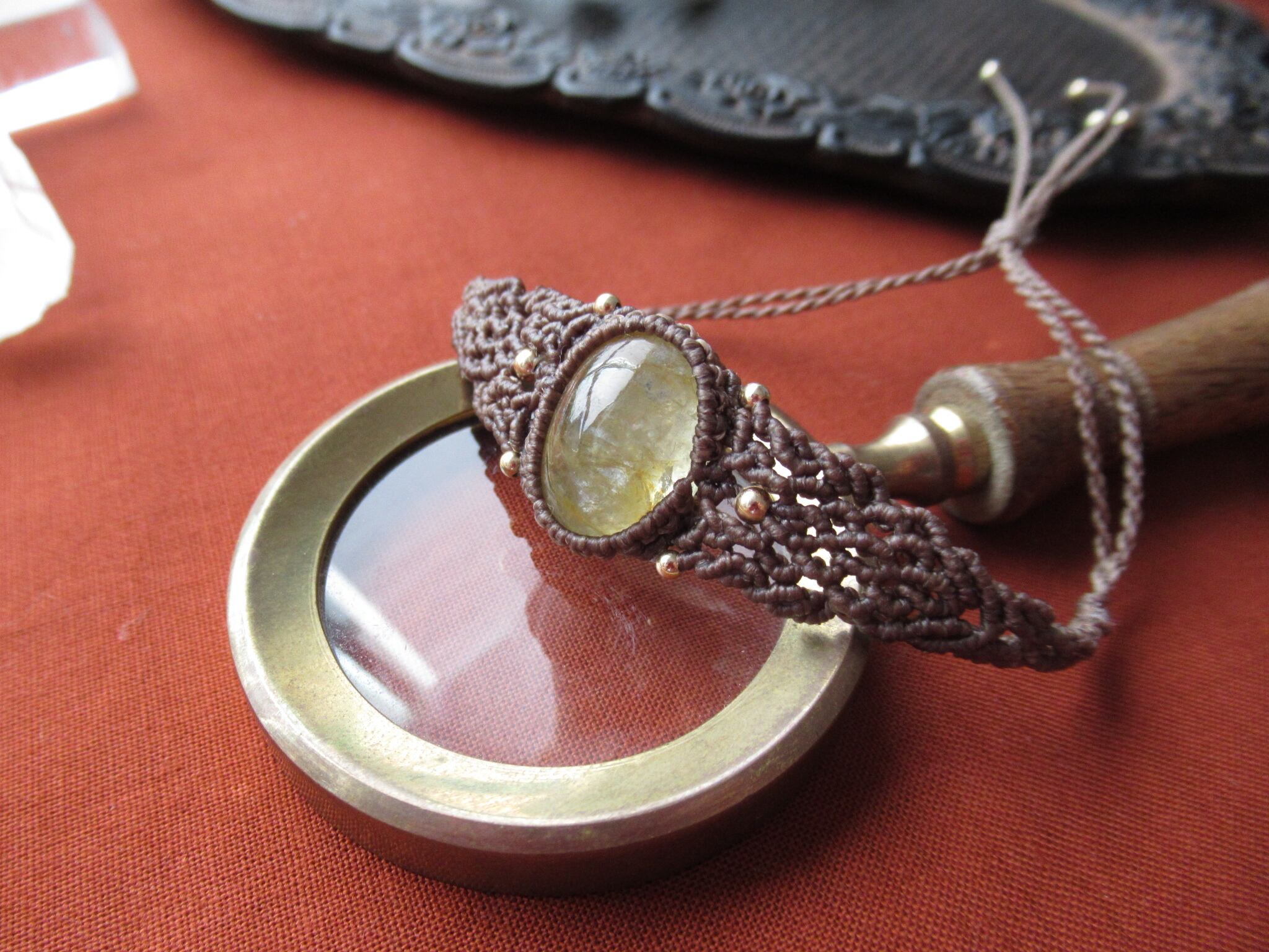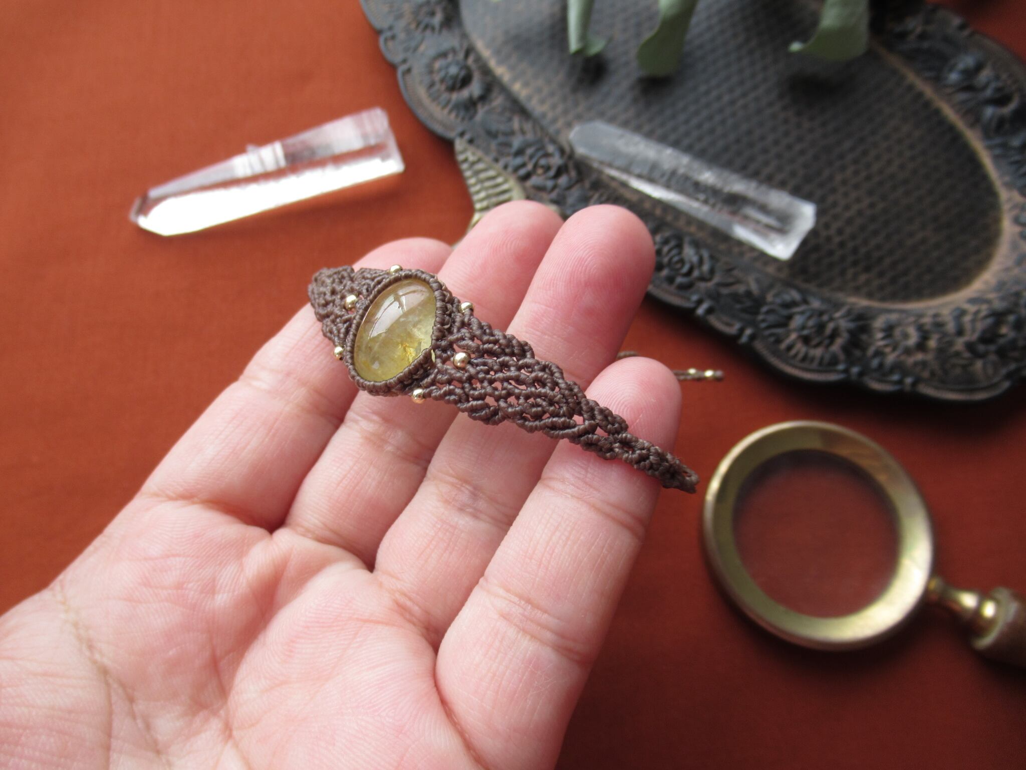 イエローベリルの幅広バングル風マクラメブレスレット / 0.5mm仕上げ