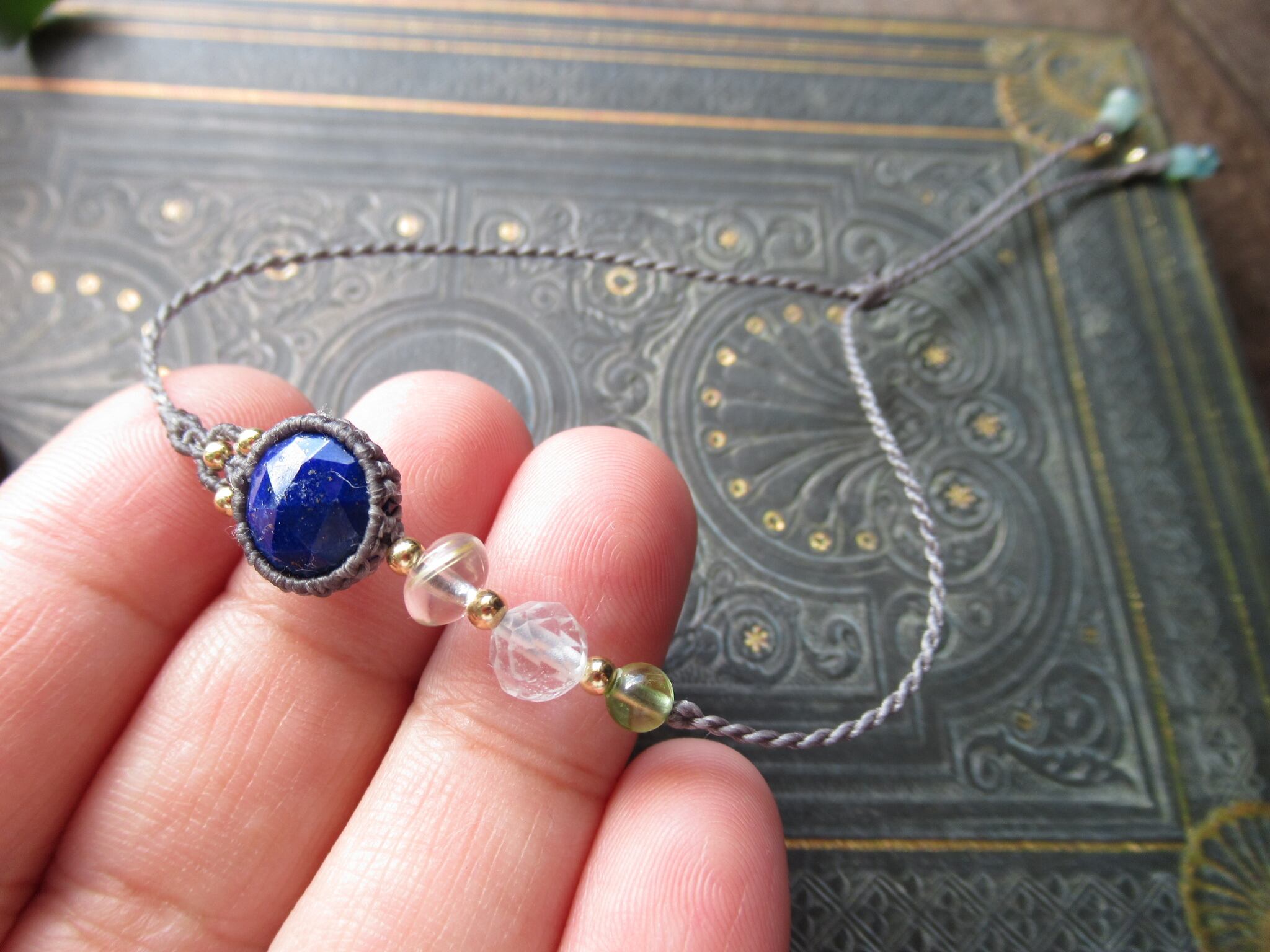 ラピスラズリ×3粒の天然石ビーズのアシンメトリーブレスレット /0.25㎜仕上げ