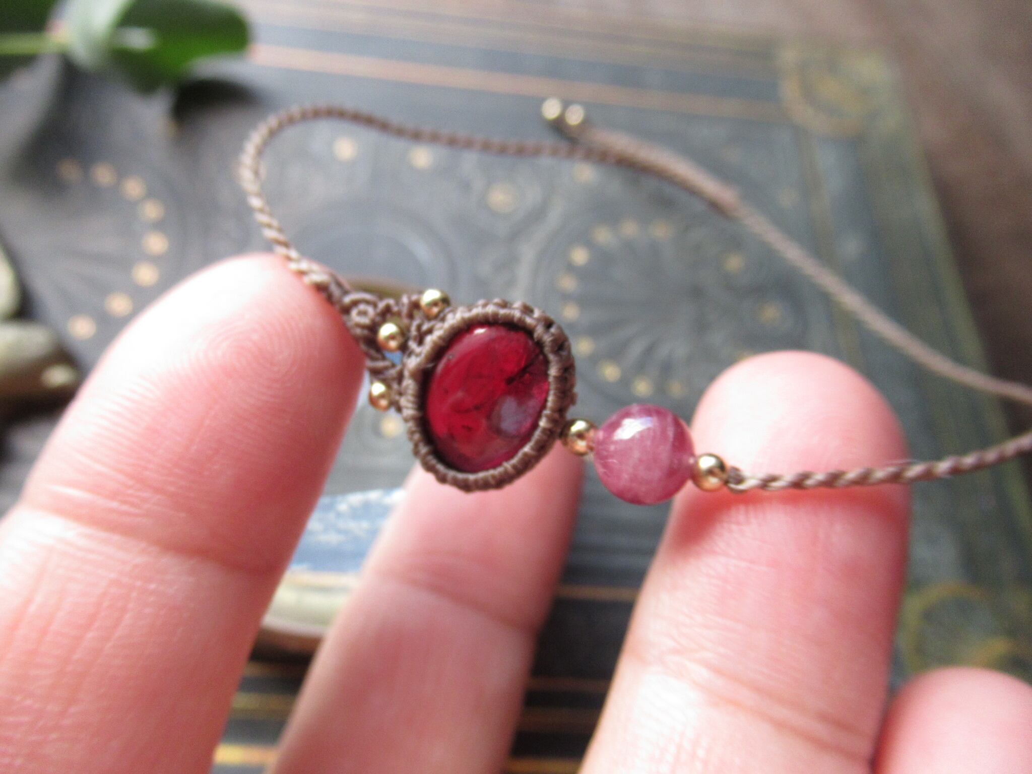 ワケアリ / ローズカラーガーネット×ピンクトルマリンのアシンメトリーブレスレット /0.25㎜仕上げ