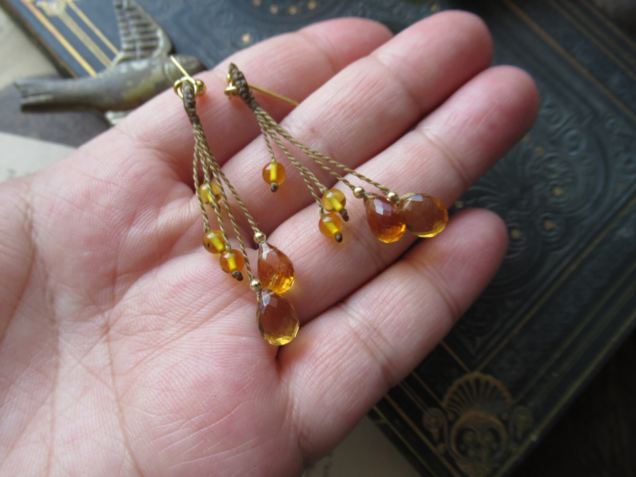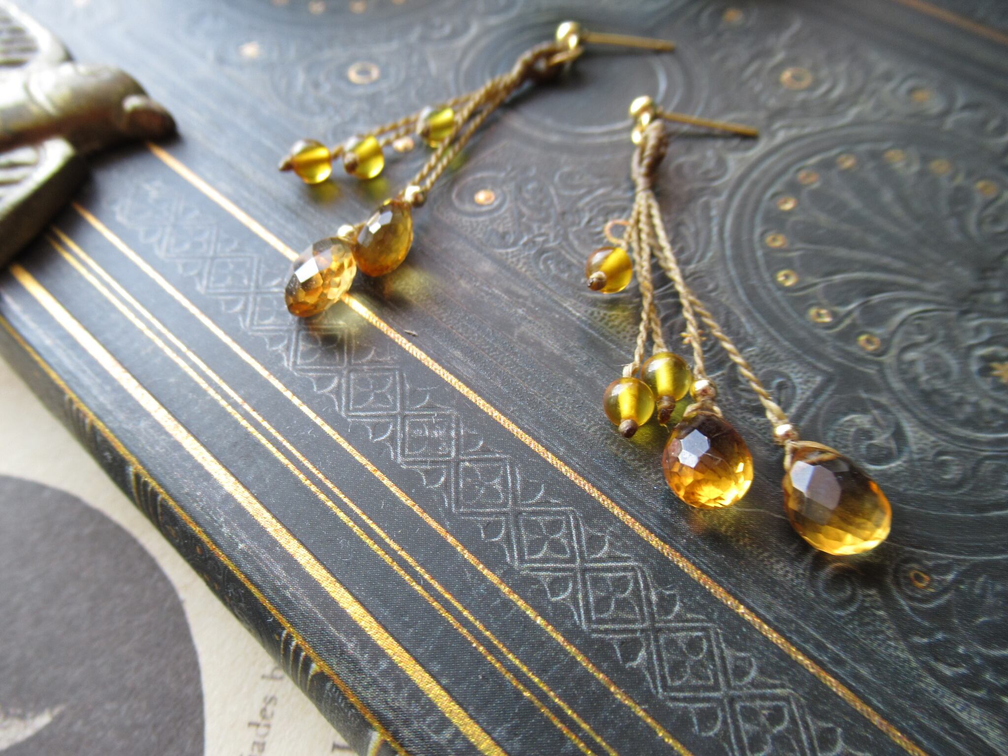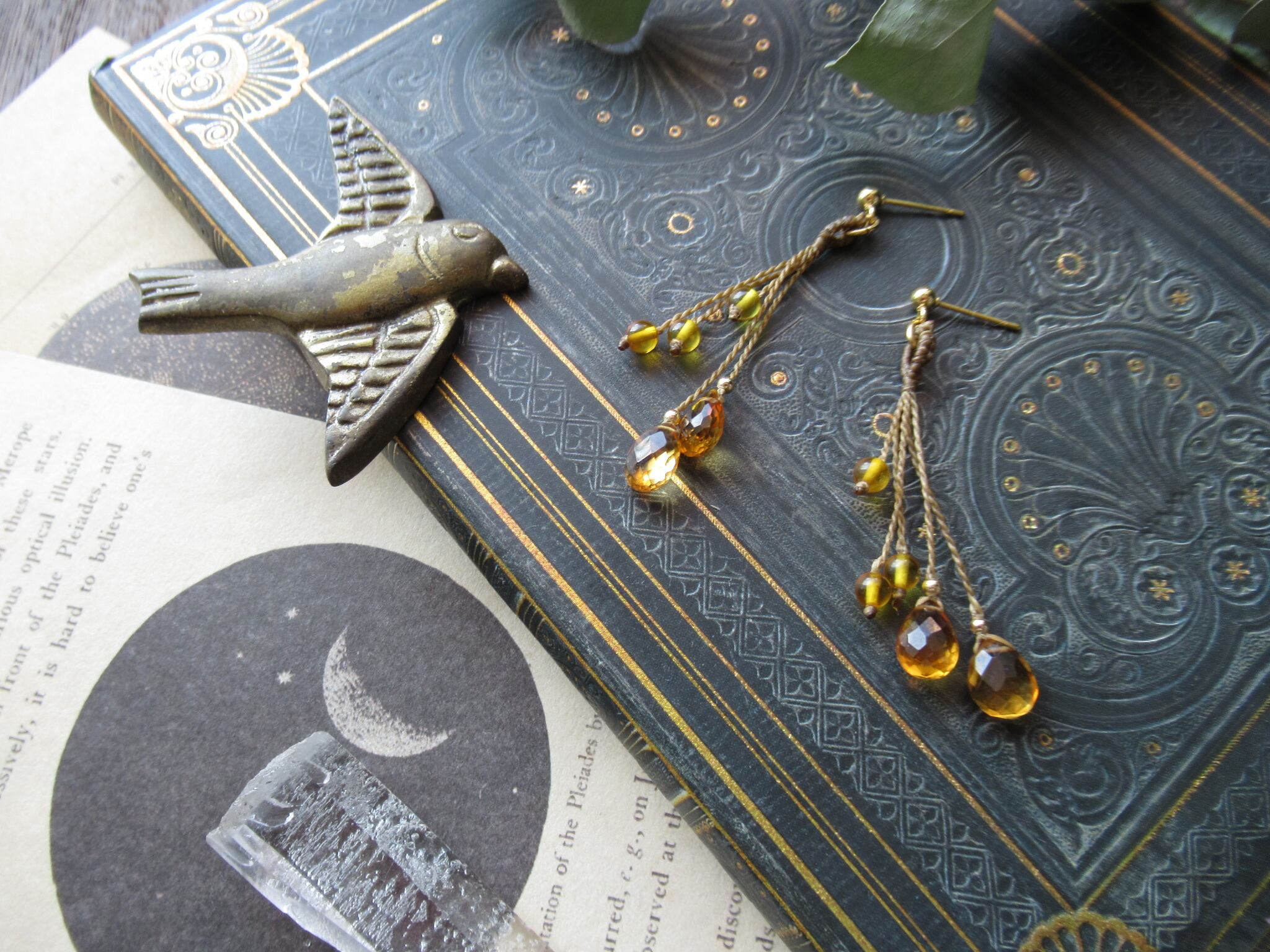 明るく艶やかな色合いの宝石質シトリンとアンバーで、耳元で印象的に揺れる耳飾りを製作しました。