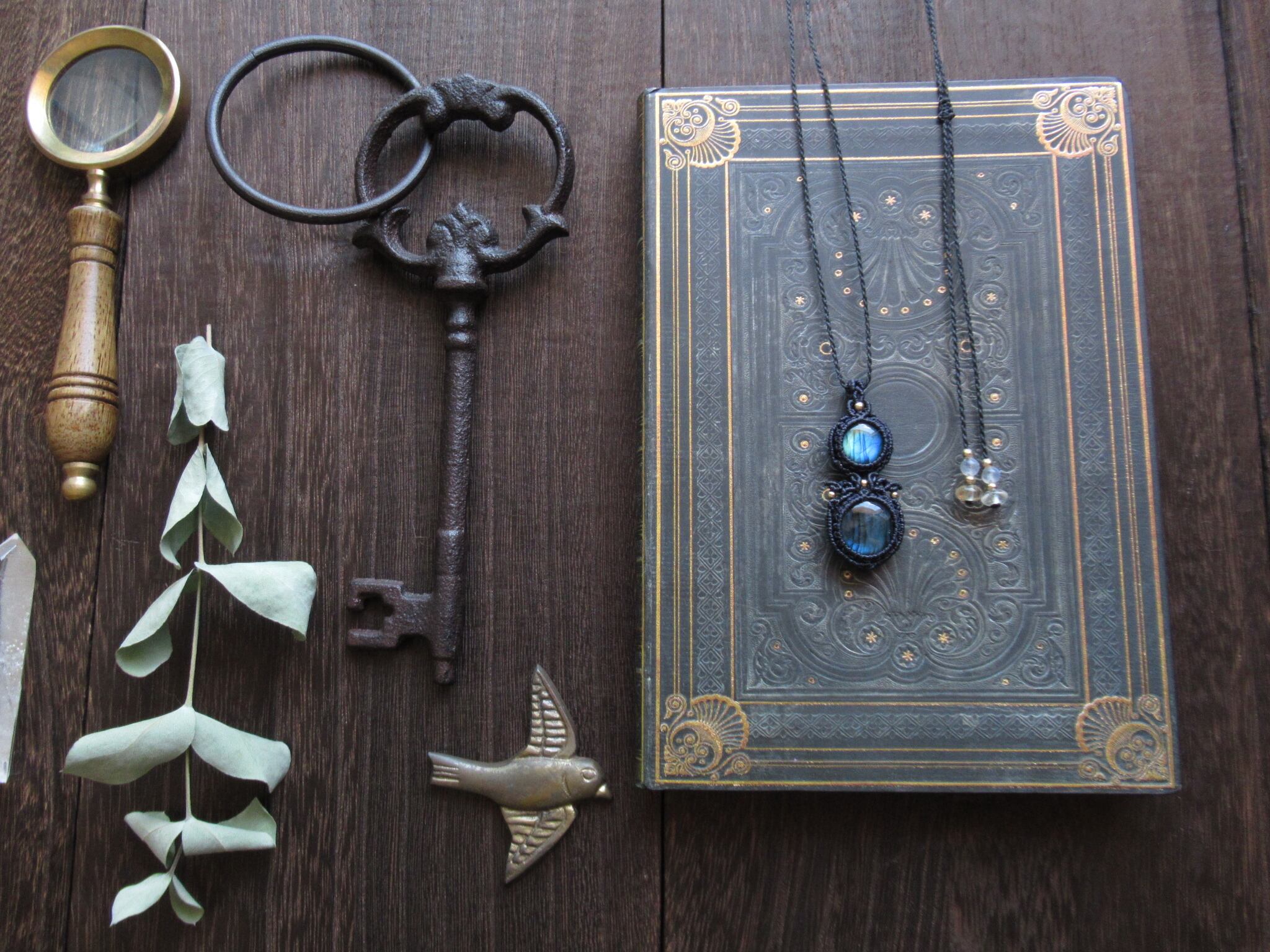 ふた粒のラブラドライトのマクラメペンダント / 0.5㎜仕上げ