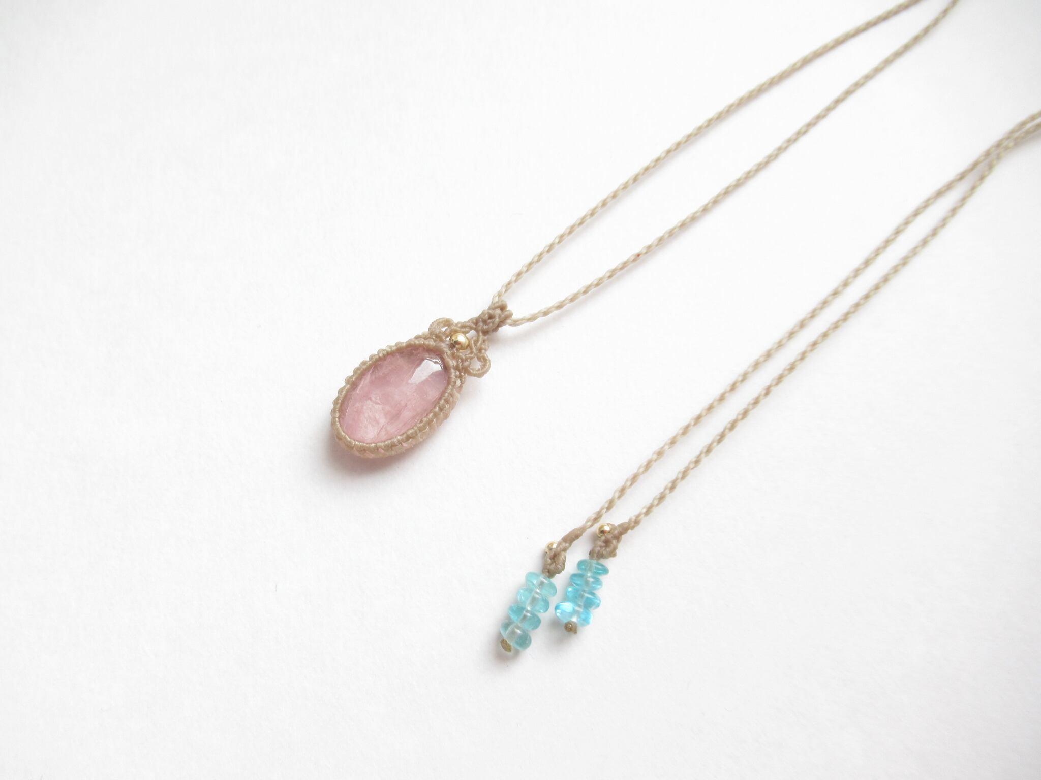 ブラジル産モルガナイトのマクラメペンダント / 0.25㎜仕上げ