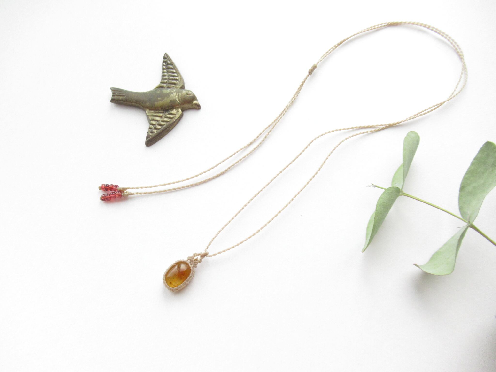 《棚卸し》イエローベリルのマクラメペンダント / 0.25㎜仕上げ