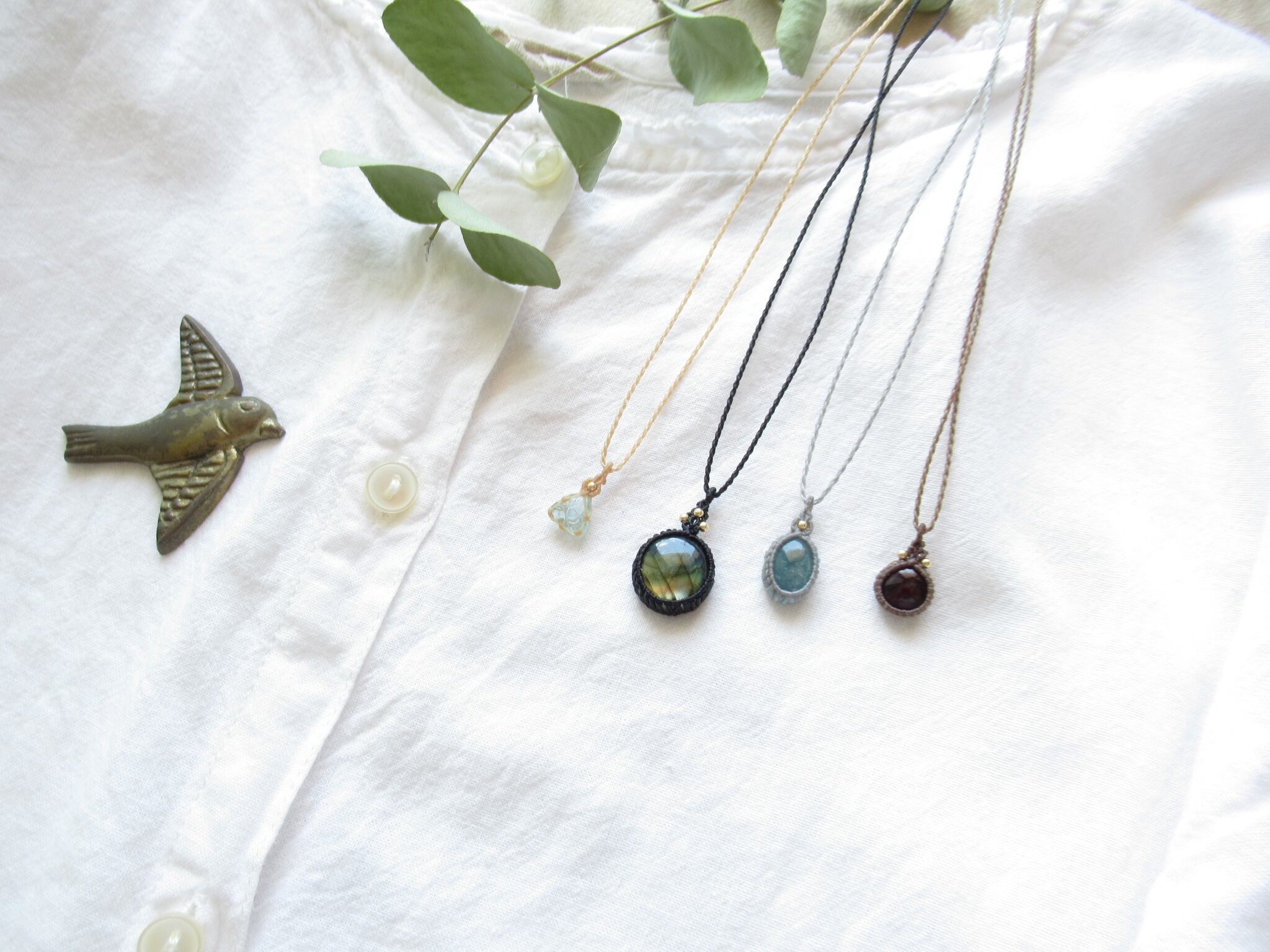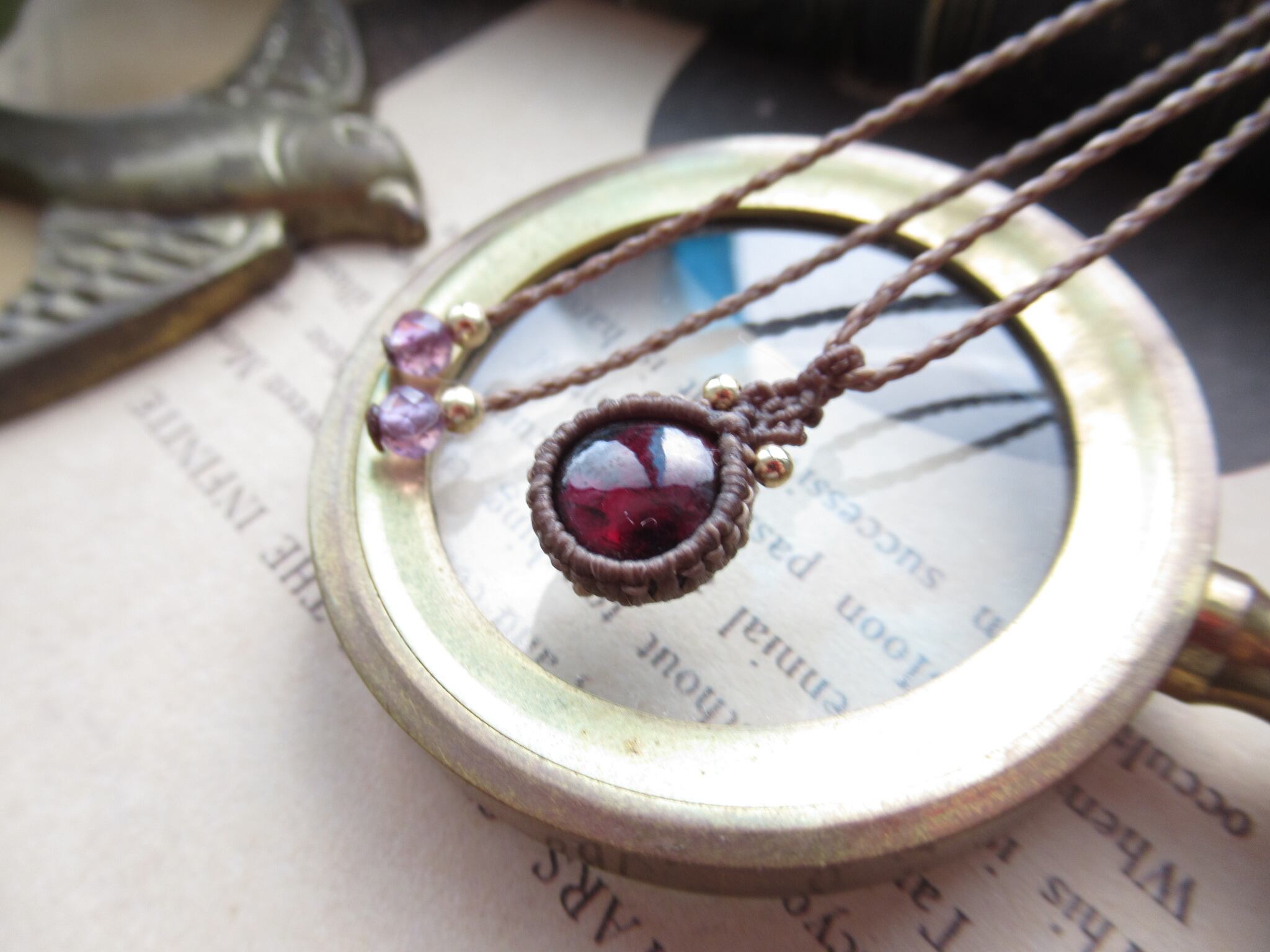 ちいさなロードライトガーネットのマクラメペンダント / 0.25mm仕上げ