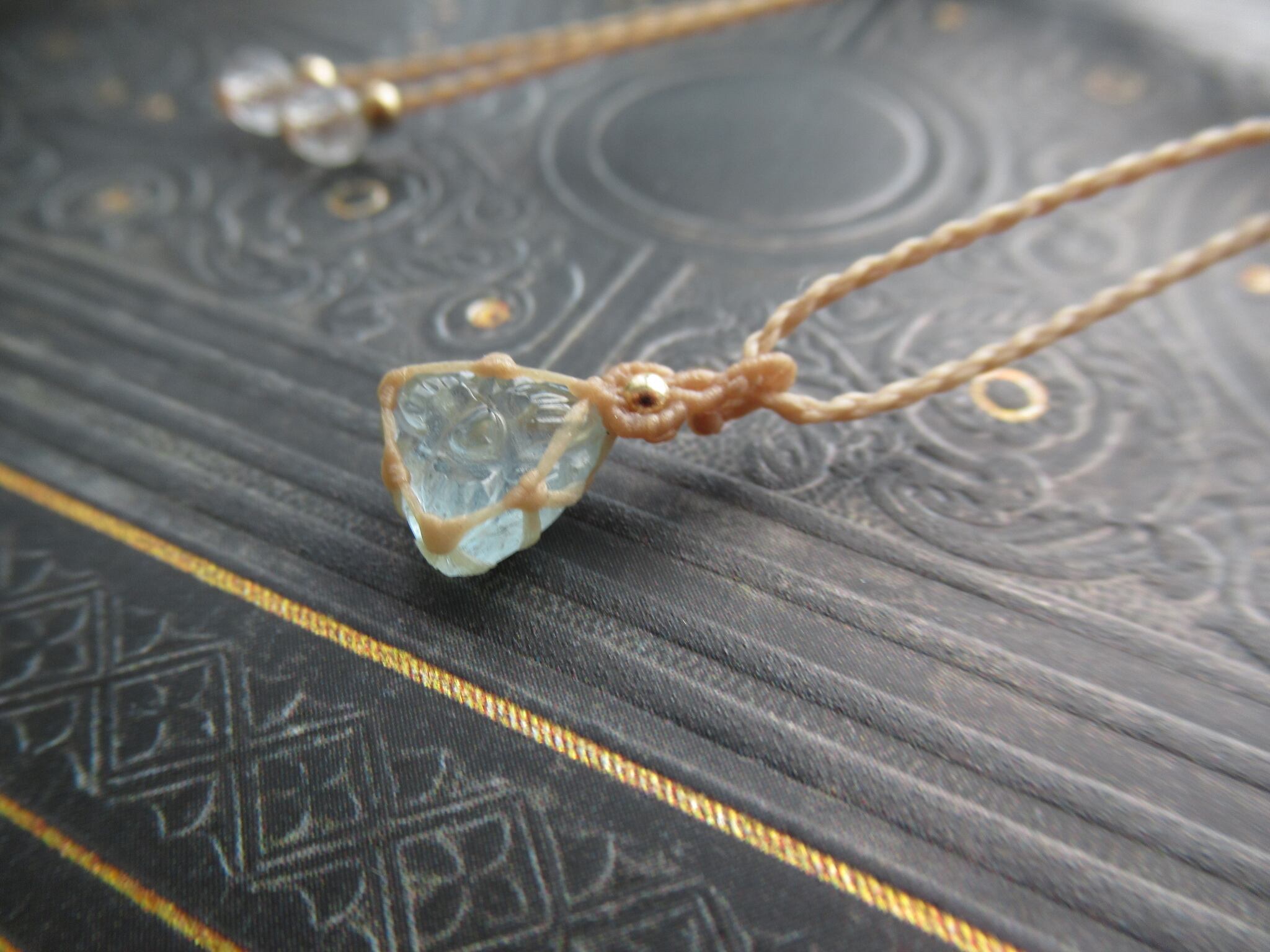 とてもちいさな さんかくアクアマリンのマクラメペンダント / 0.25mm仕上げ