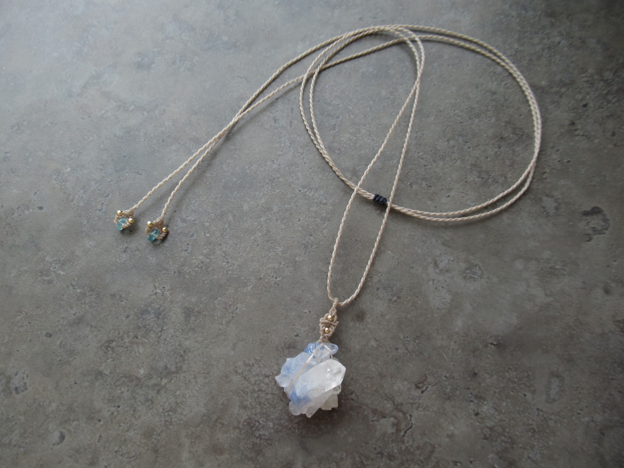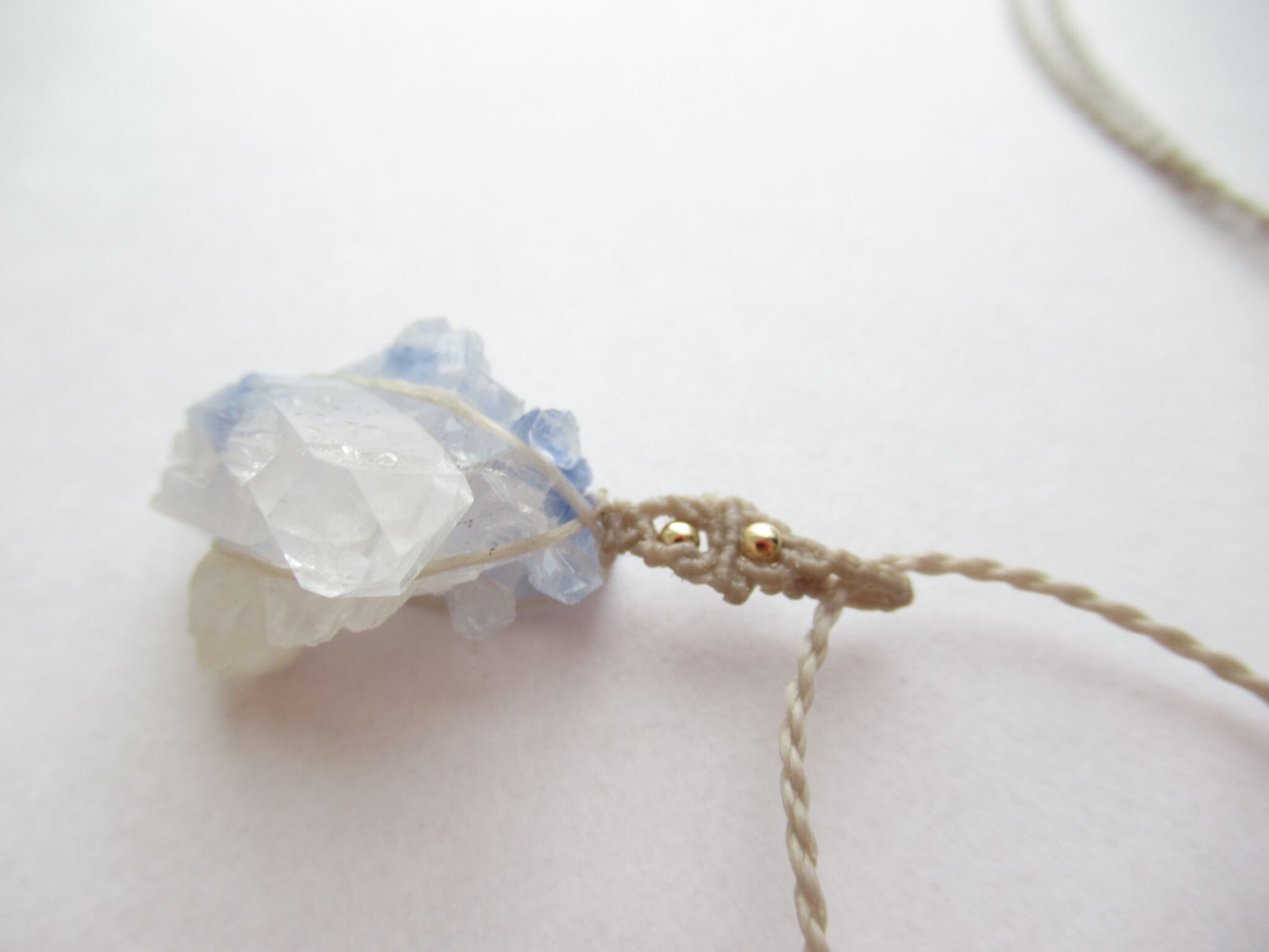 原石の形状そのままに、糸を架けて編み、結晶に負担が少ないようにバチカンをお仕立てしております。