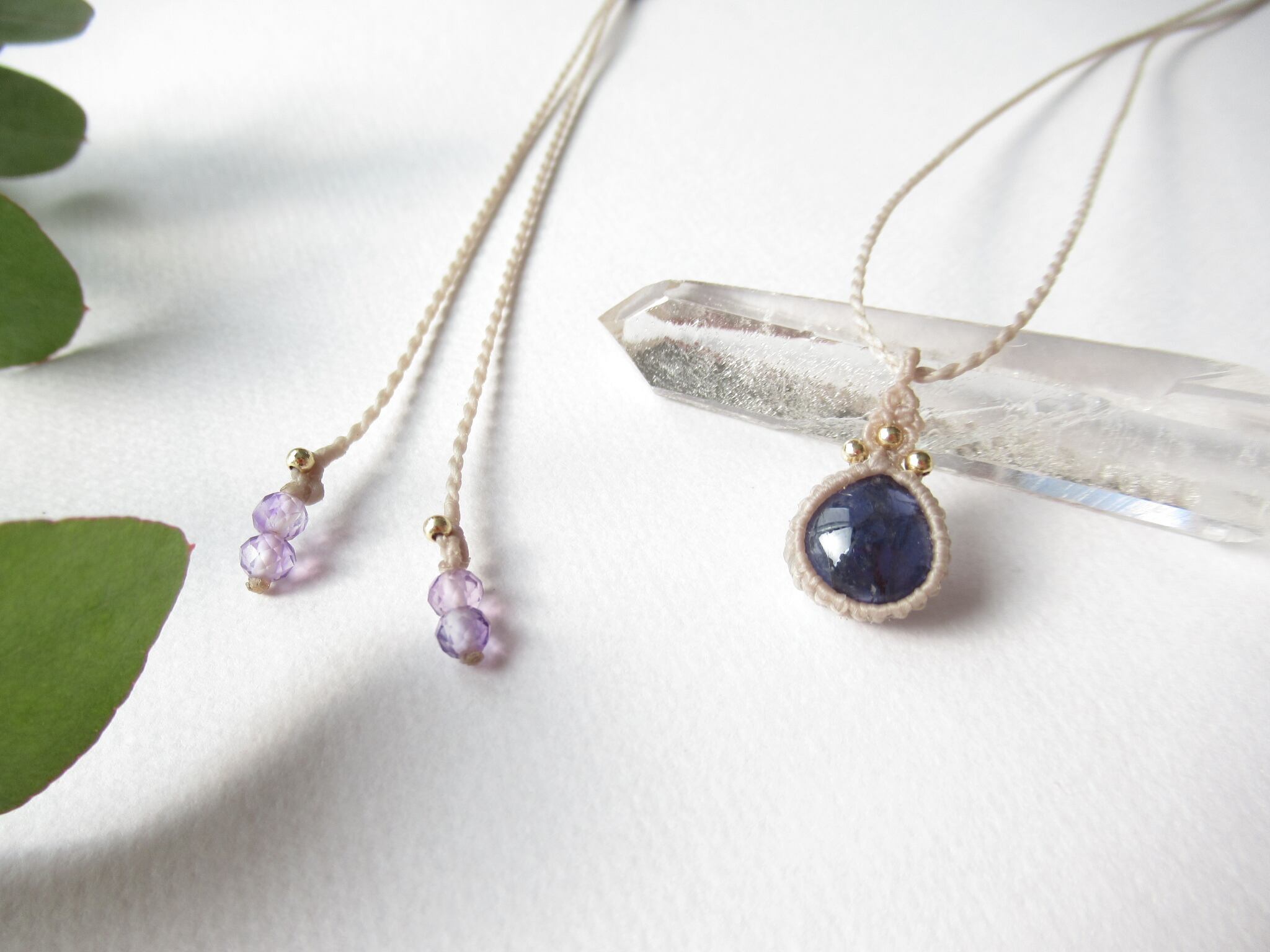 ちいさなアイオライトのマクラメペンダント / 0.25mm仕上げ