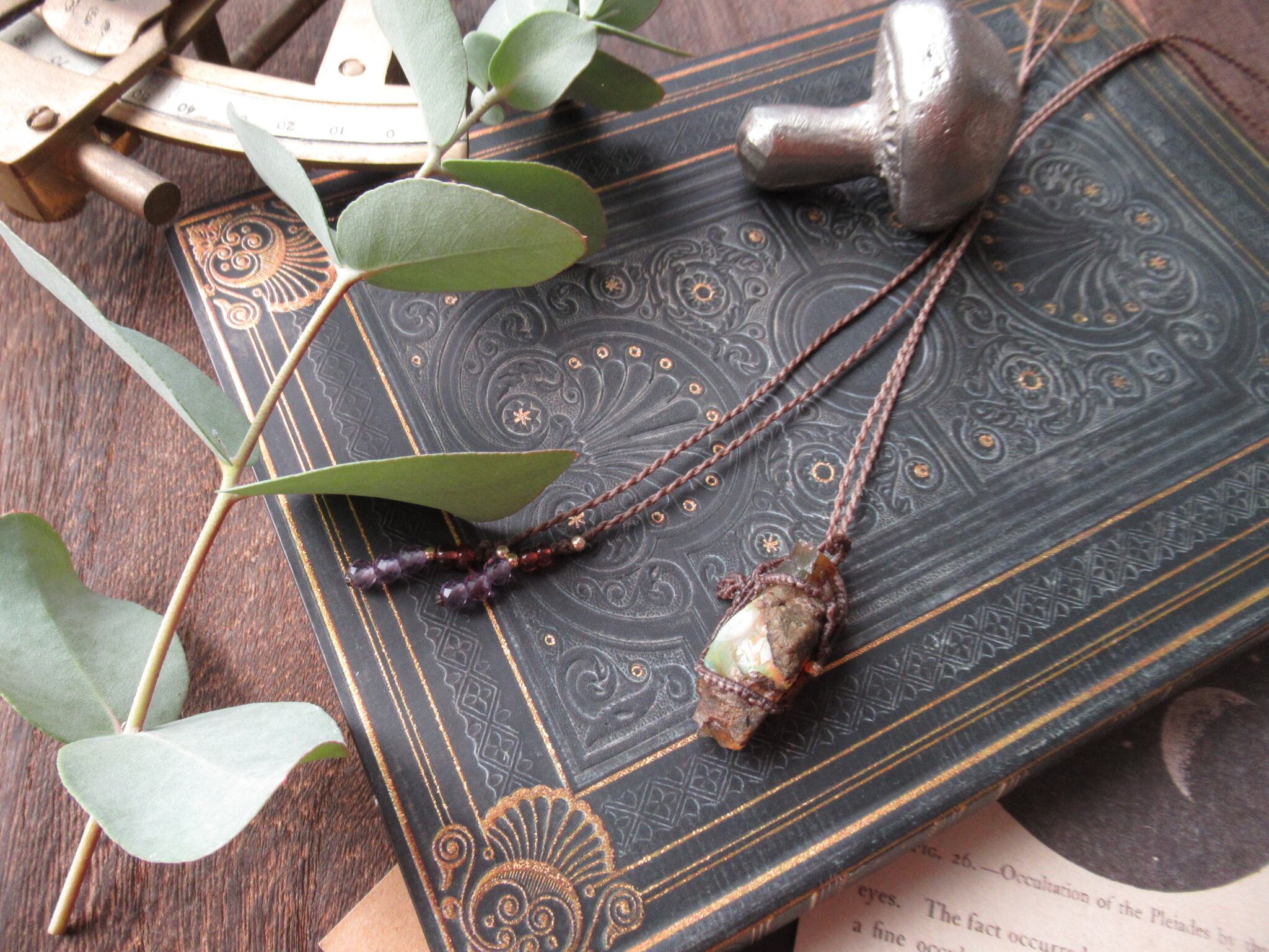 大粒オパールの原石のマクラメペンダント / 0.25㎜仕上げ