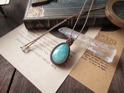 雫形のやや大きめのアマゾナイトをすっきりとシンプルなマクラメペンダントにお仕立ていたしました。