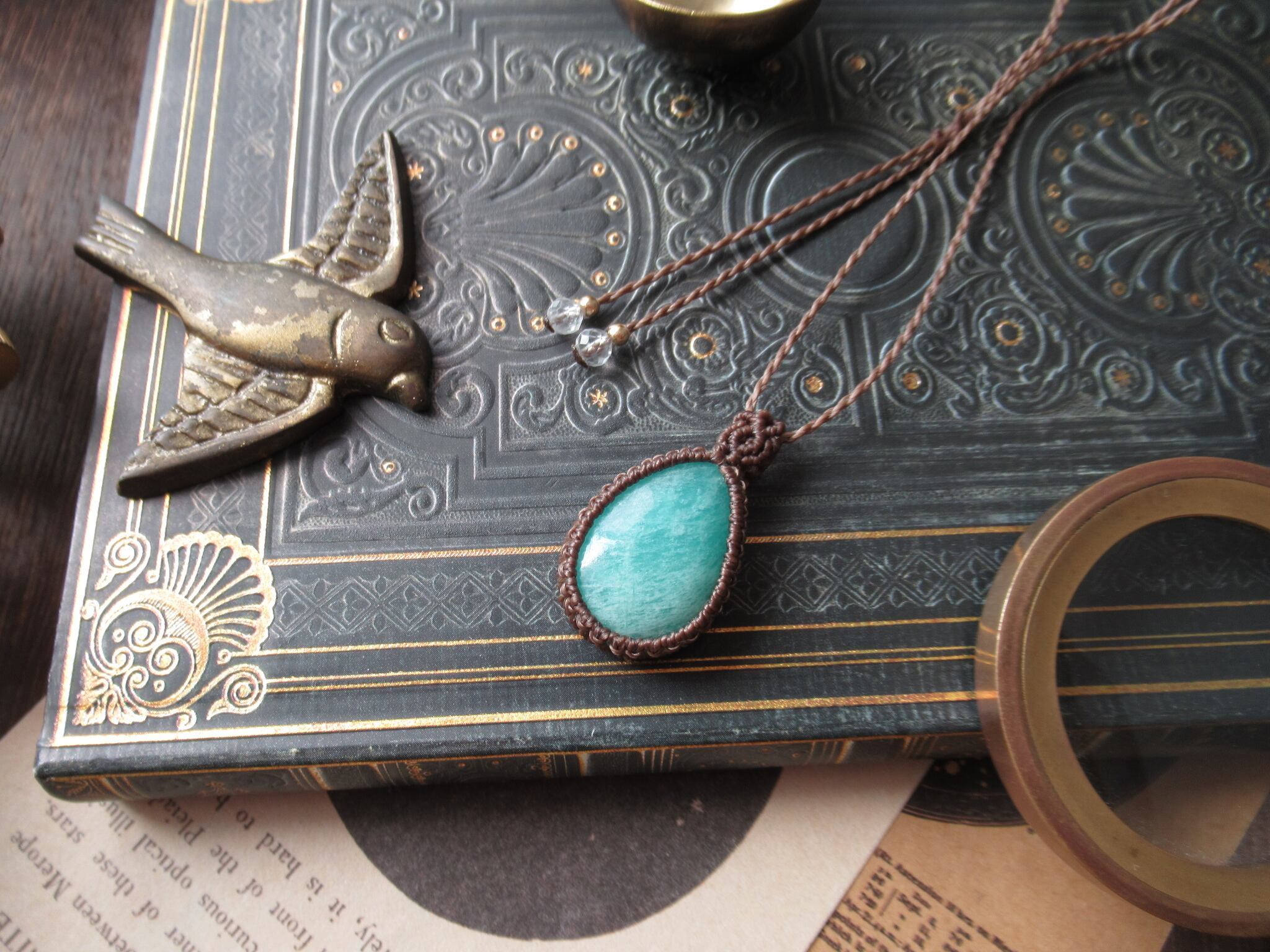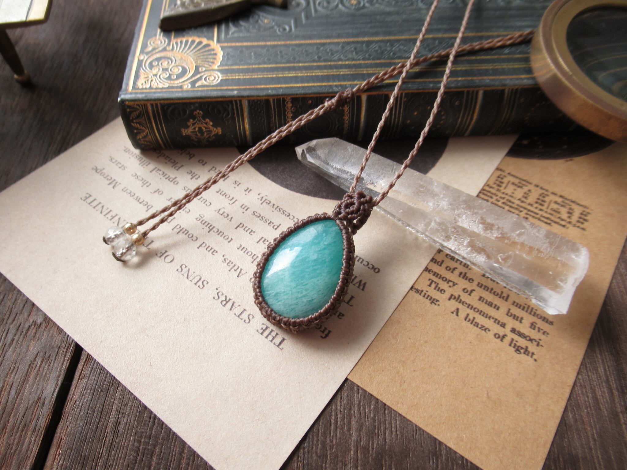 アマゾナイトのマクラメペンダント /0.5mm仕上げ