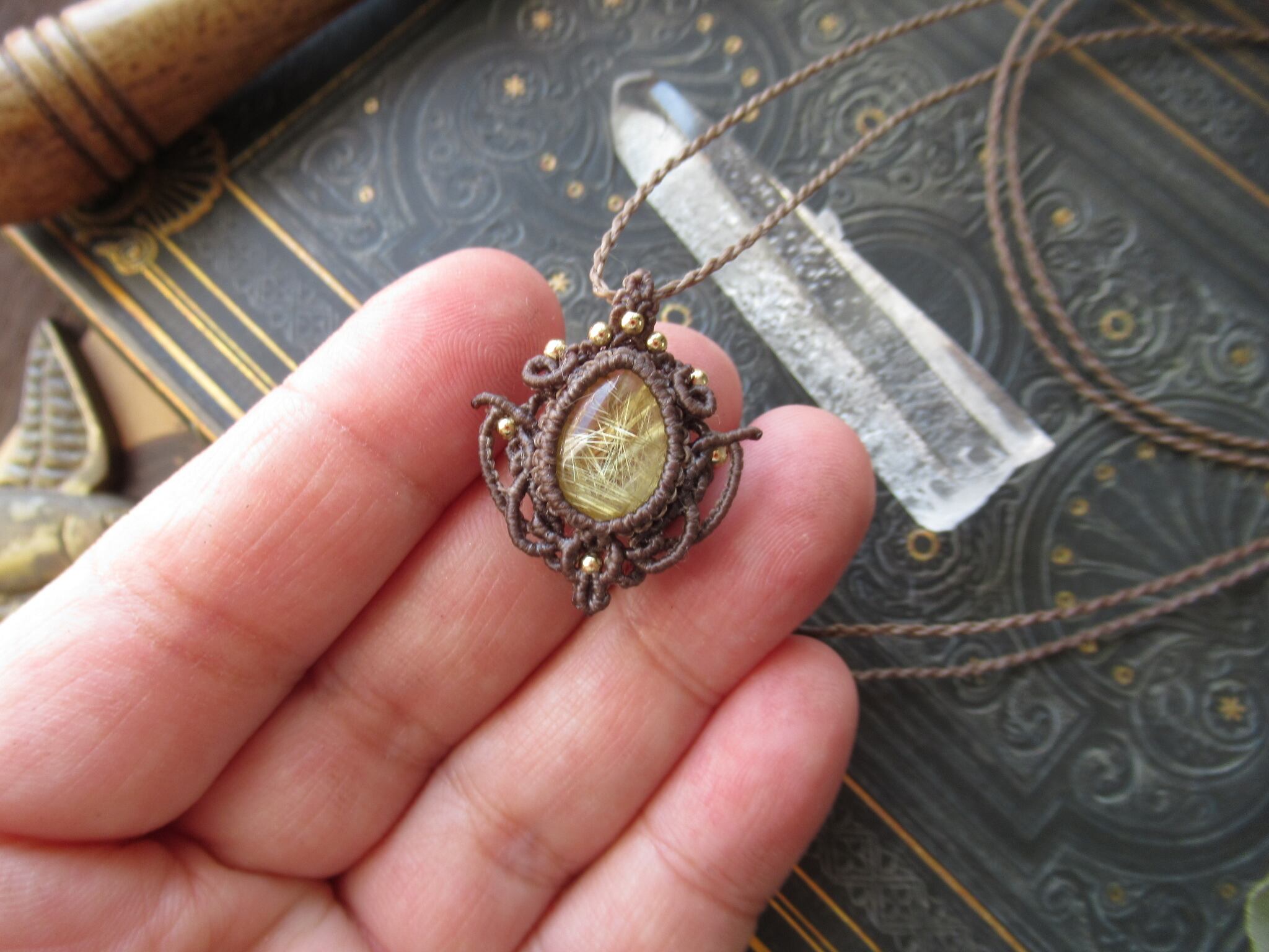 ブラジル産ルチルクォーツの金のお守りペンダント