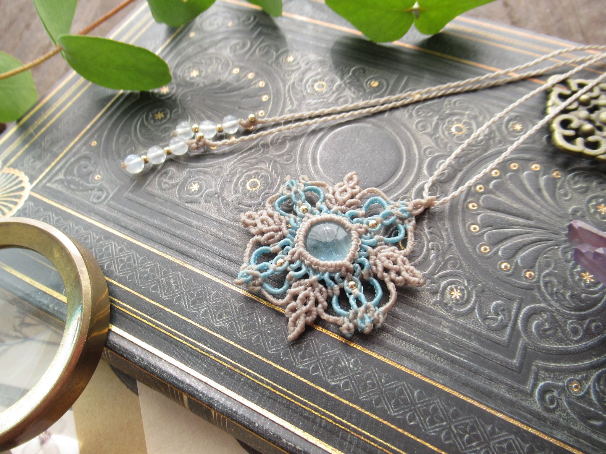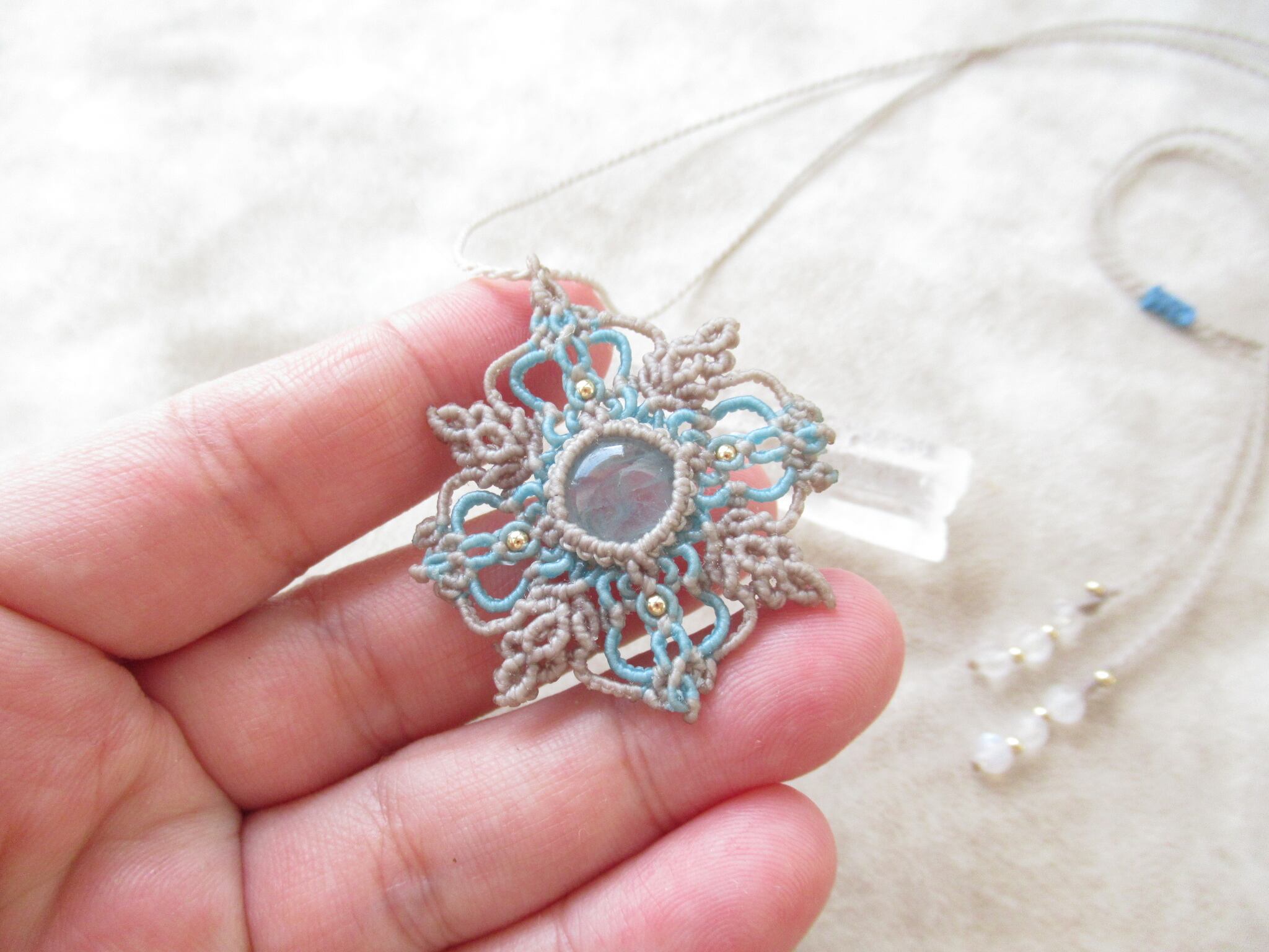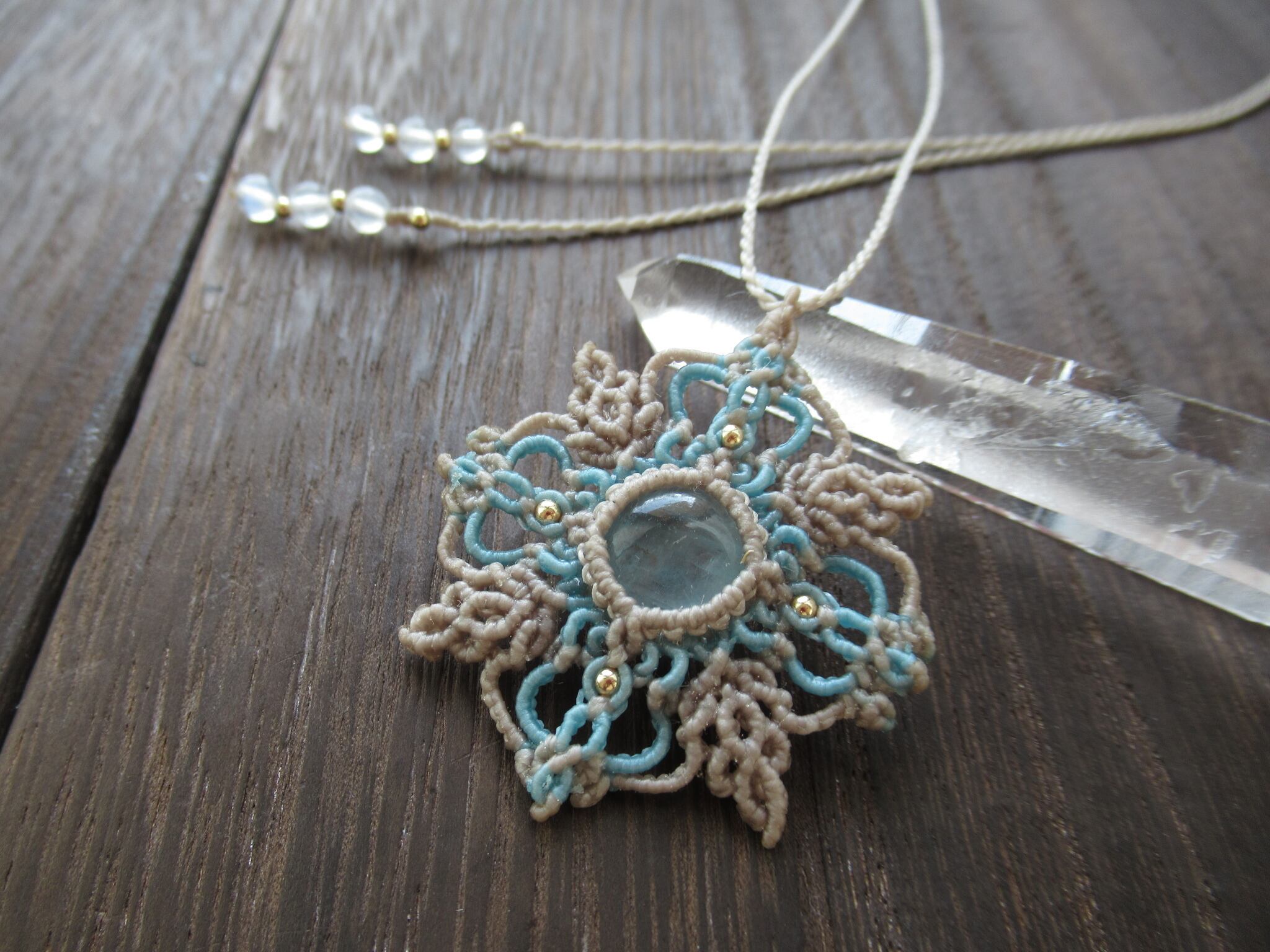 雪の結晶 非加熱アクアマリンのマクラメペンダント