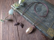 以前掲載していたペンダントをペンダント紐部分を新しいものに編み直し、すっきりと仕上げております。ペンダント紐の色合いはダークブラウンで、ペンダントトップよりワントーン落ち着いたお色です。カジュアルでしっかりとした色合いの糸で編み上げております。