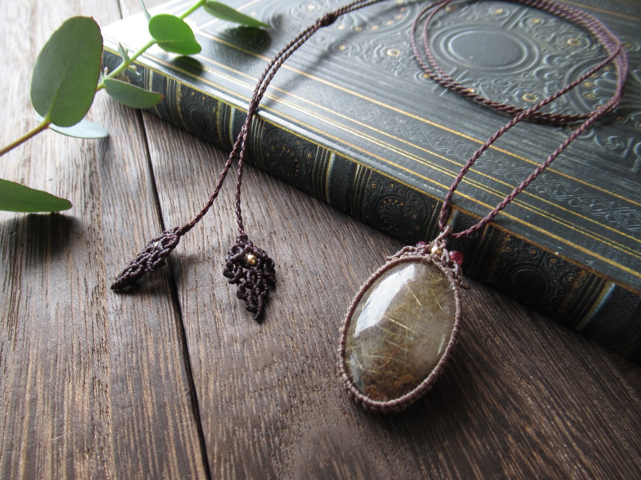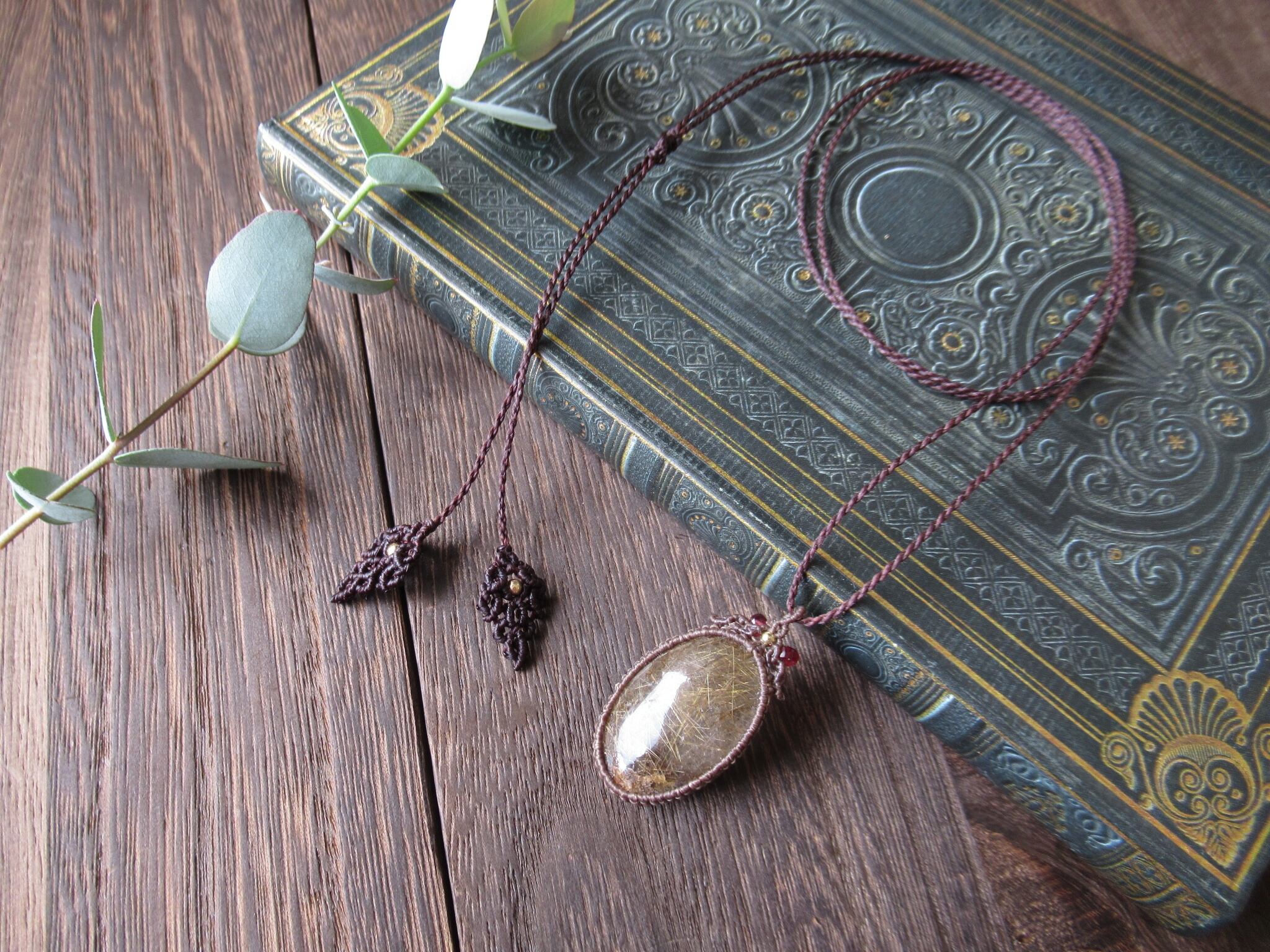 大粒コッパールチルクォーツのマクラメペンダント / 0.25mm仕上げ