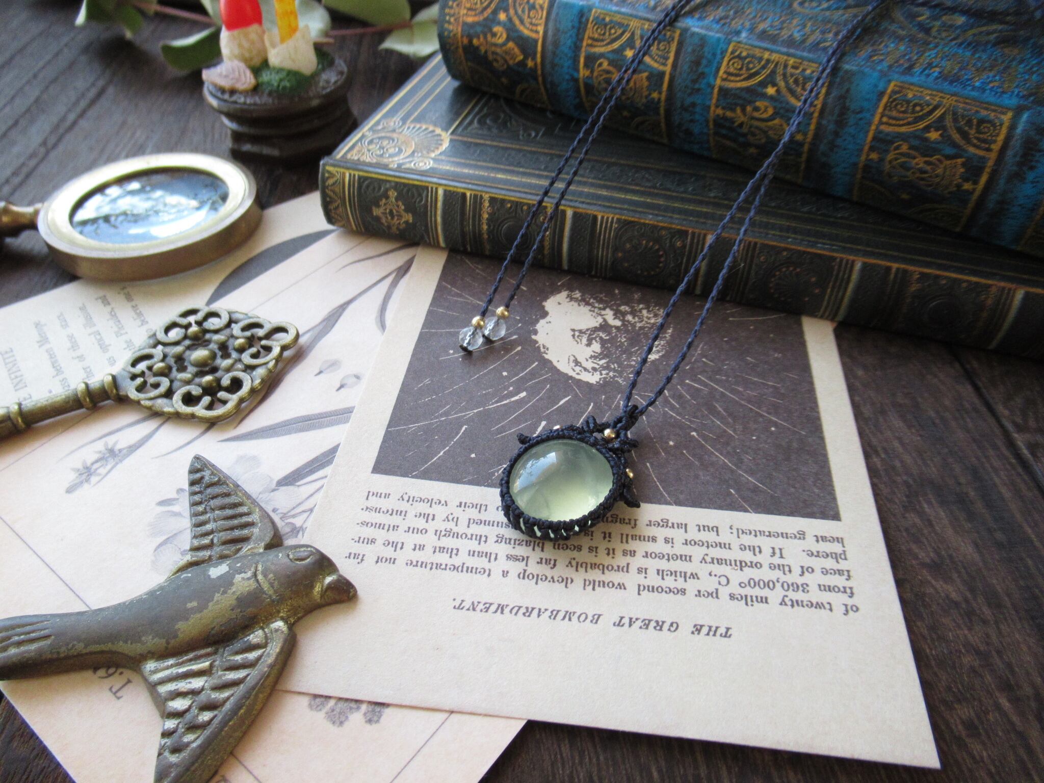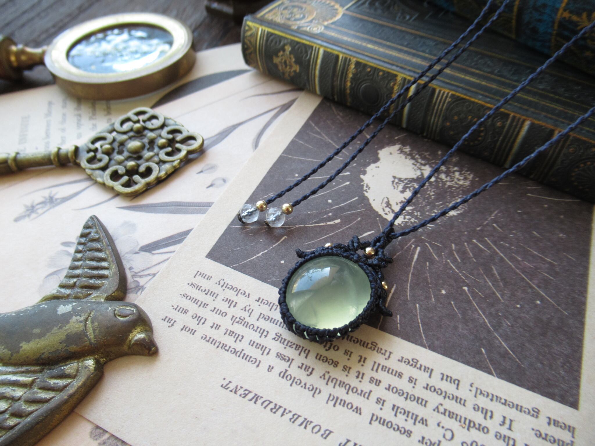 アフリカ産プレナイトのマクラメペンダント / 0.5mm仕上げ