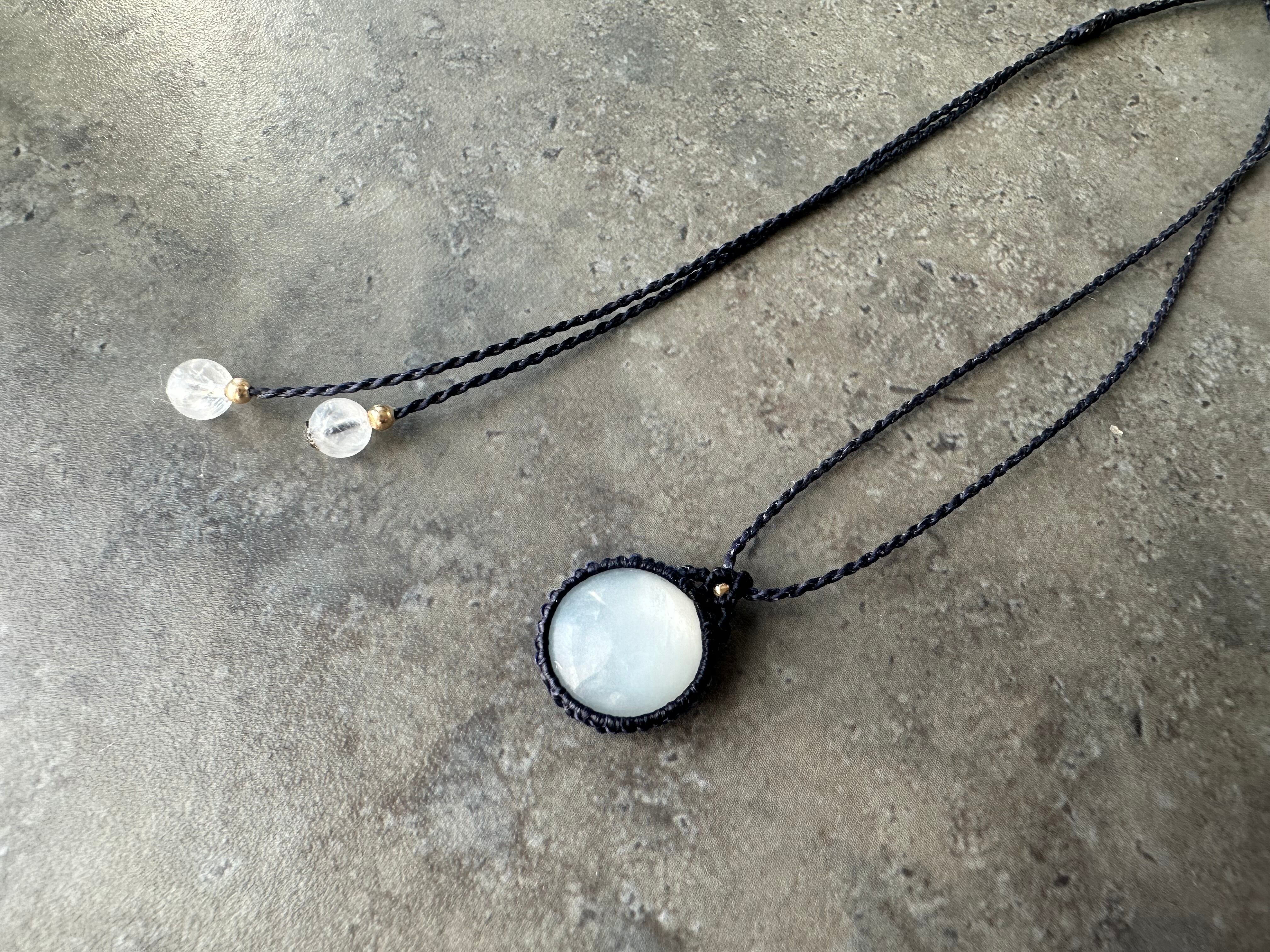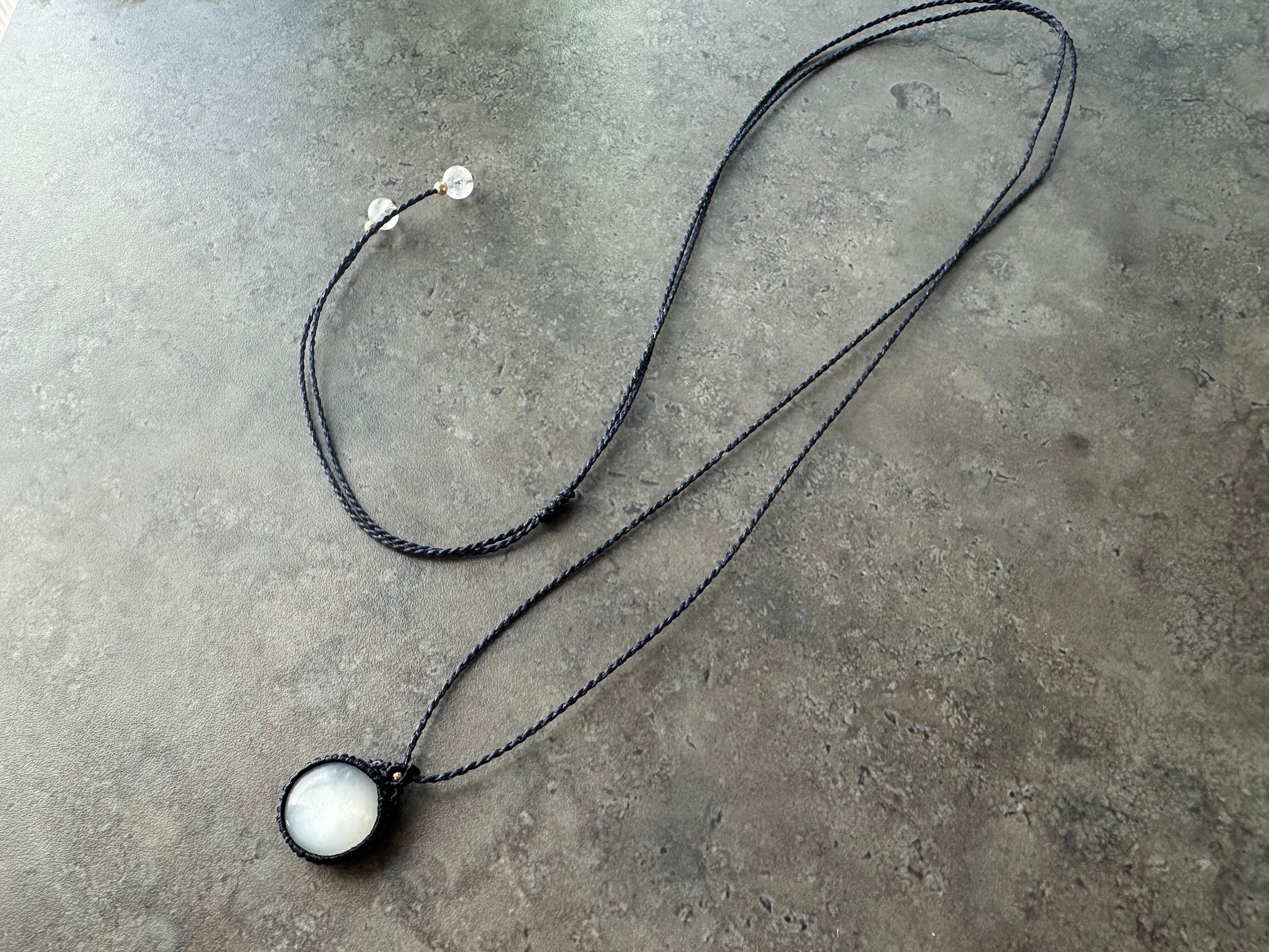 ホワイトムーンストーンのマクラメペンダント / 0.25mm仕上げ