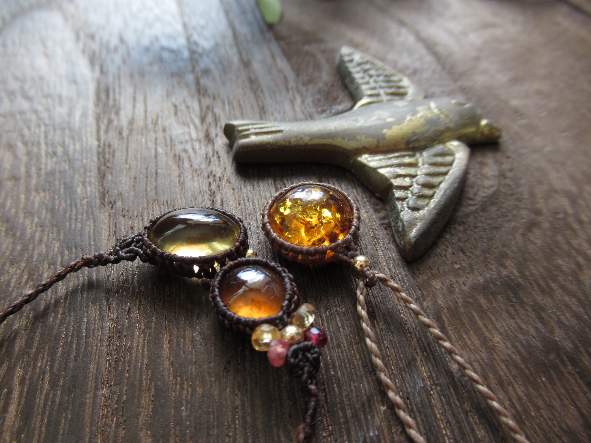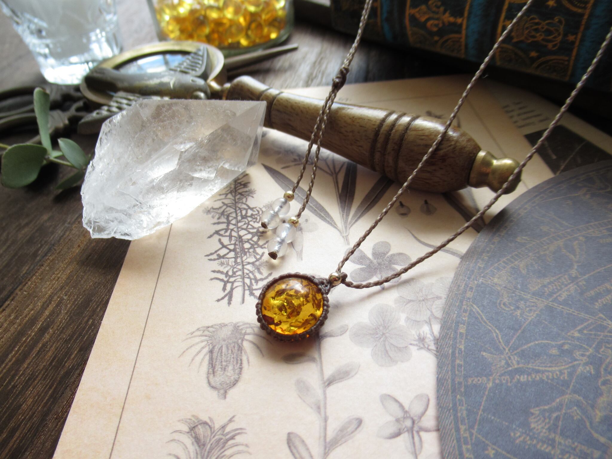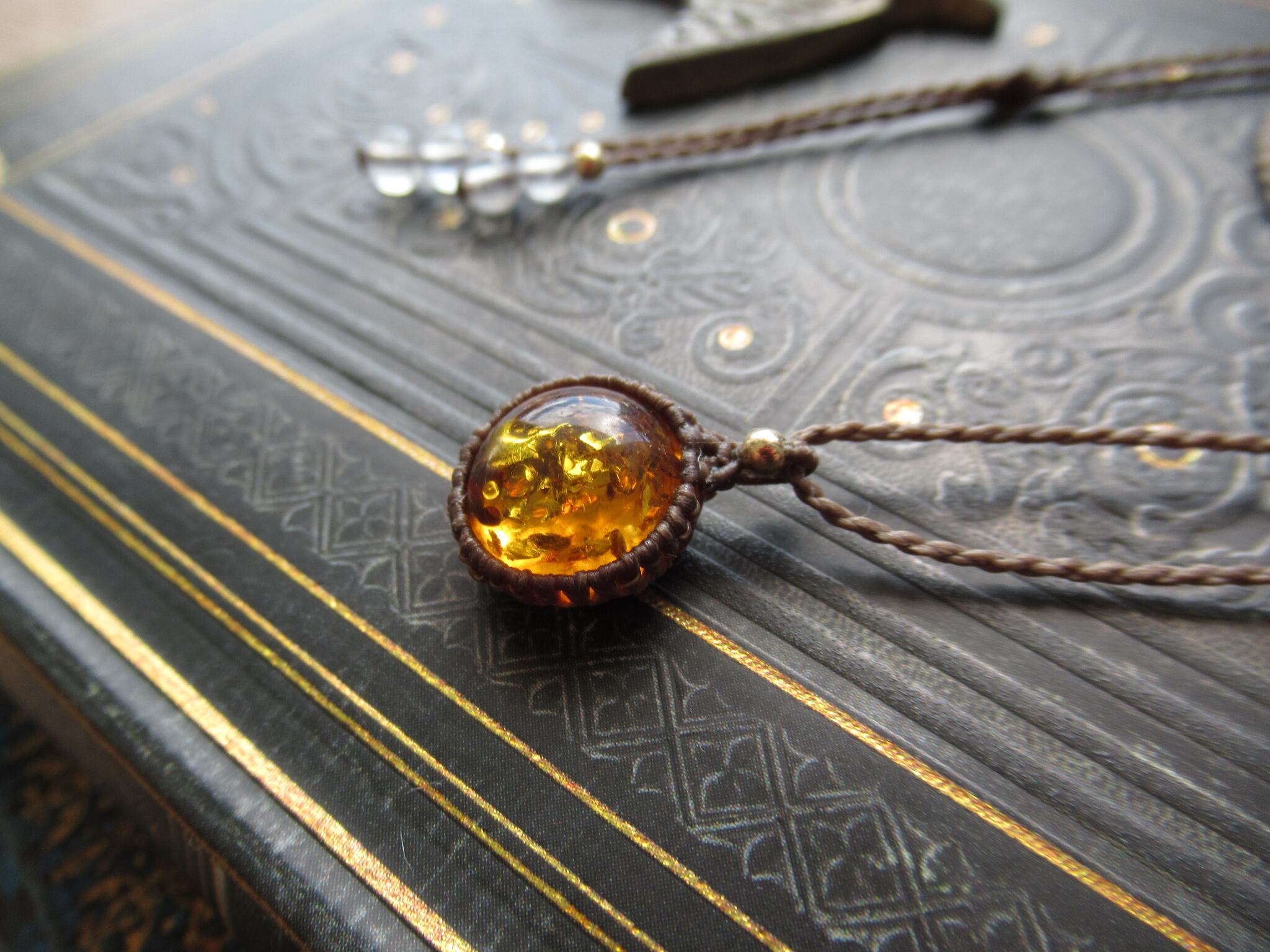ちいさな一期一会 バルティックアンバーのマクラメペンダント / 0.25mm仕上げ