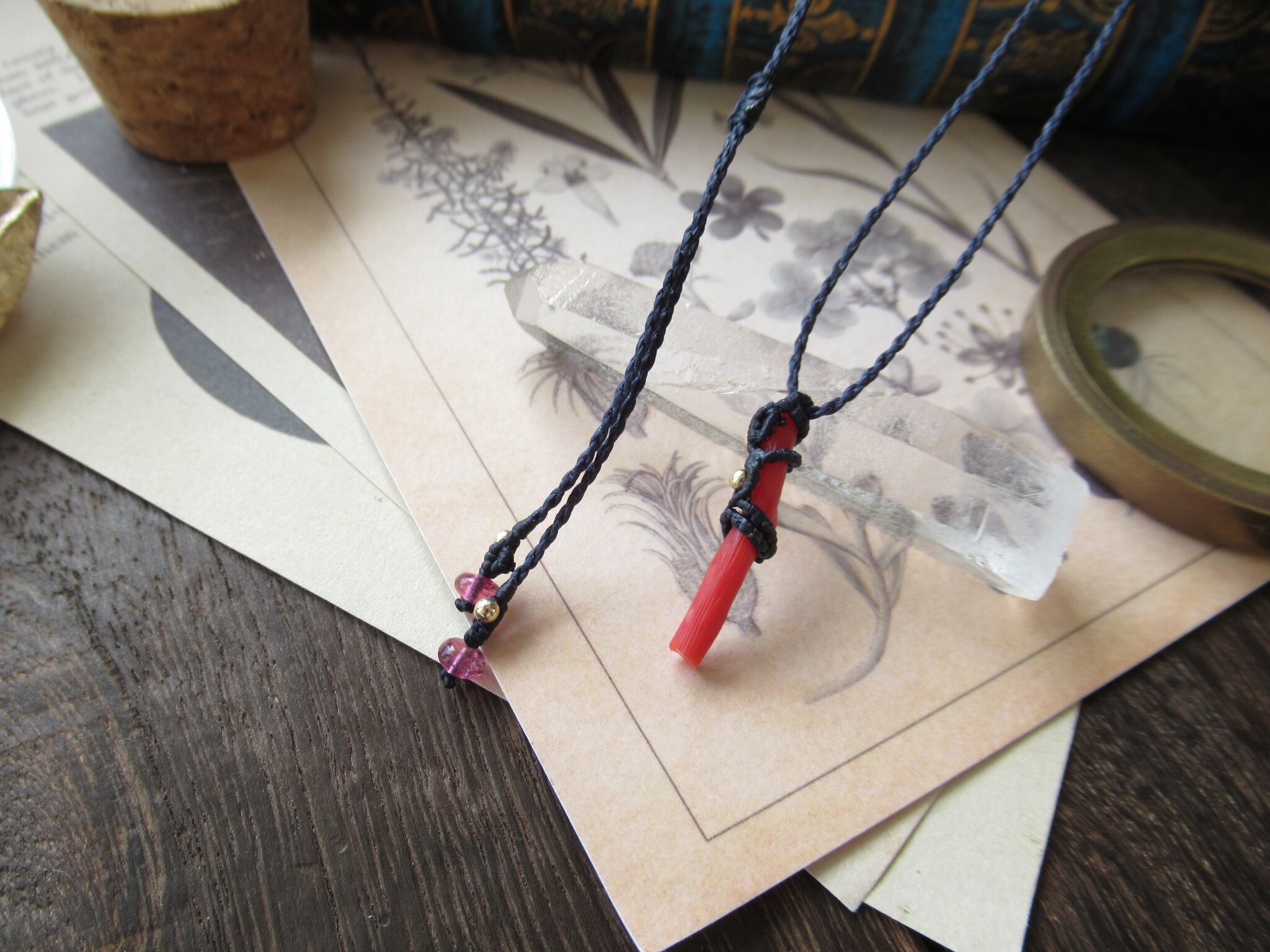 イタリア産宝石珊瑚のマクラメペンダント / 0.25mm仕上げ