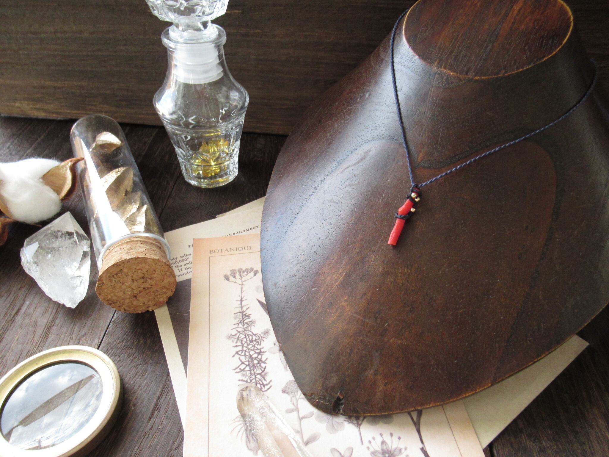 今回は小さな枝のような朱色の珊瑚をカジュアルでシンプルなワンポイントペンダントにお仕立ていたしました。