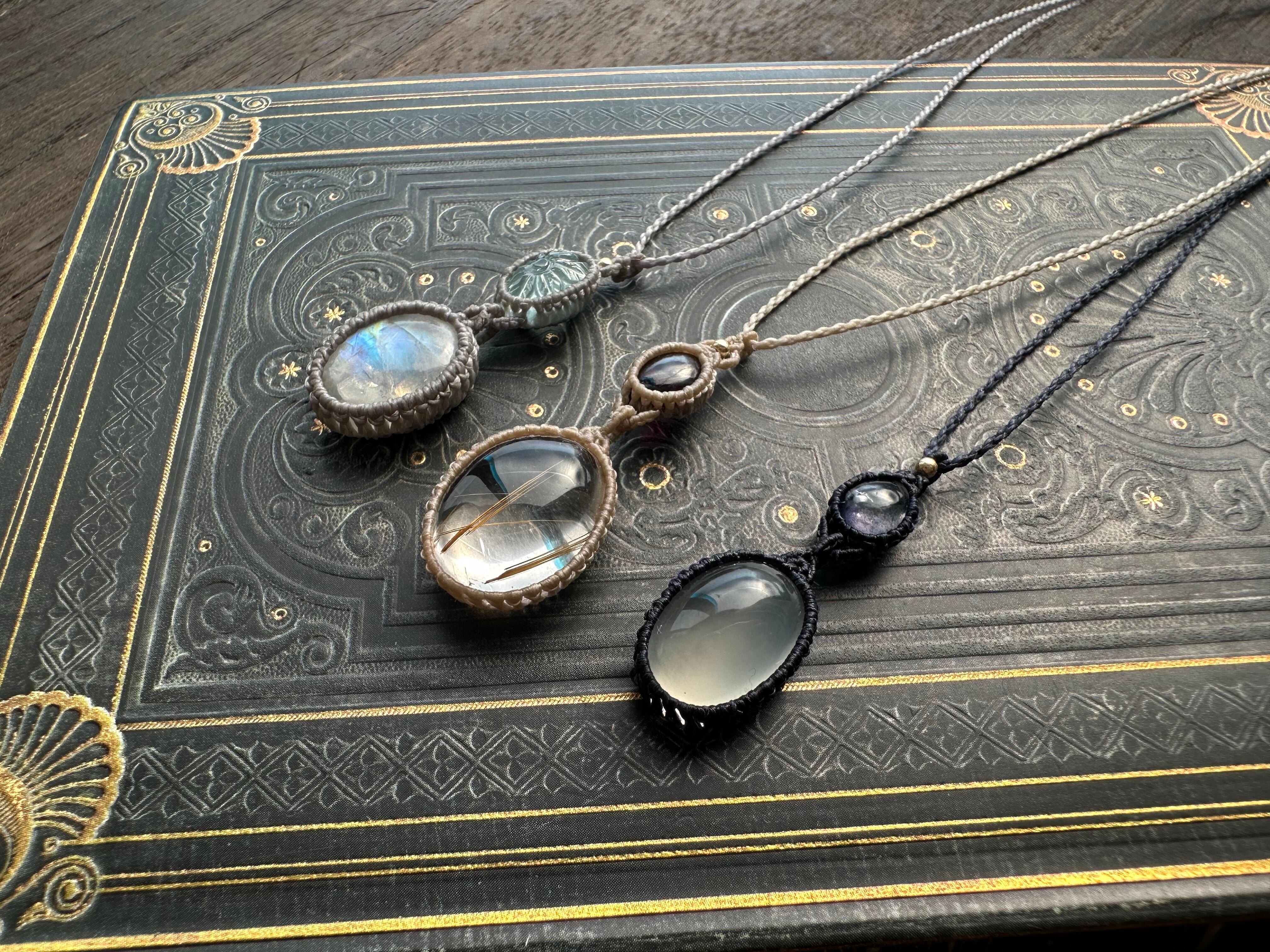 結び石はブルーシラーのホワイトラブラドライトをあしらいました。