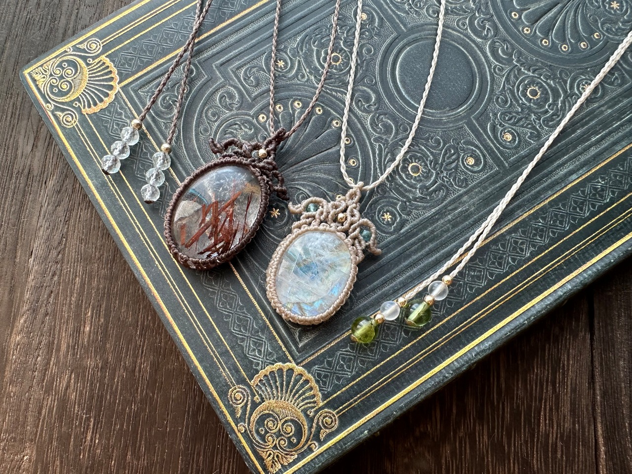 ふと見下ろすと胸元で揺れる、一期一会の天然石たちとの出会いを楽しんでいただけましたら嬉しいです。
