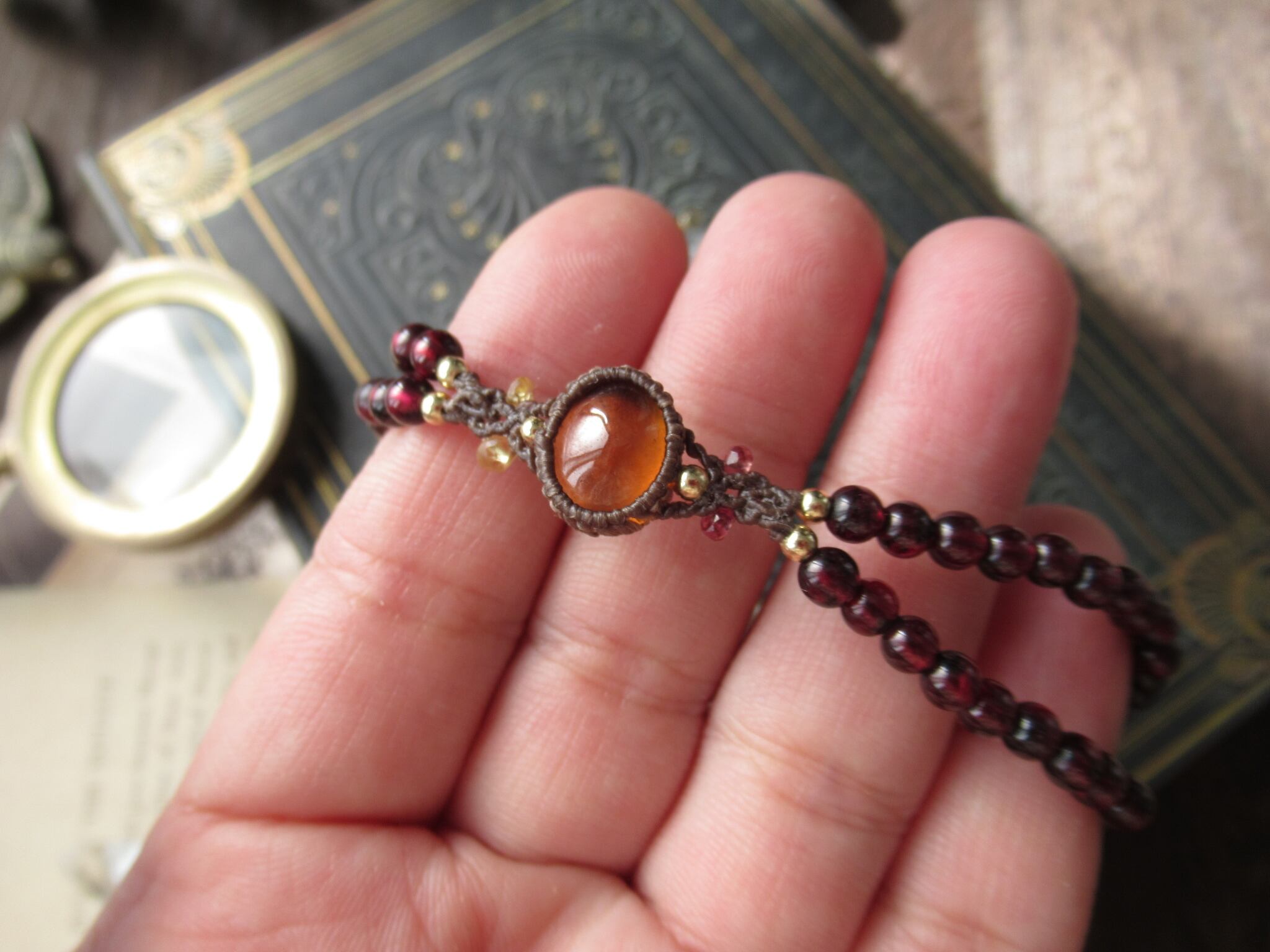 二色の異なる趣のガーネットと宝石質のサファイアを選び、宝石感たっぷりのブレスレットを製作致しました。