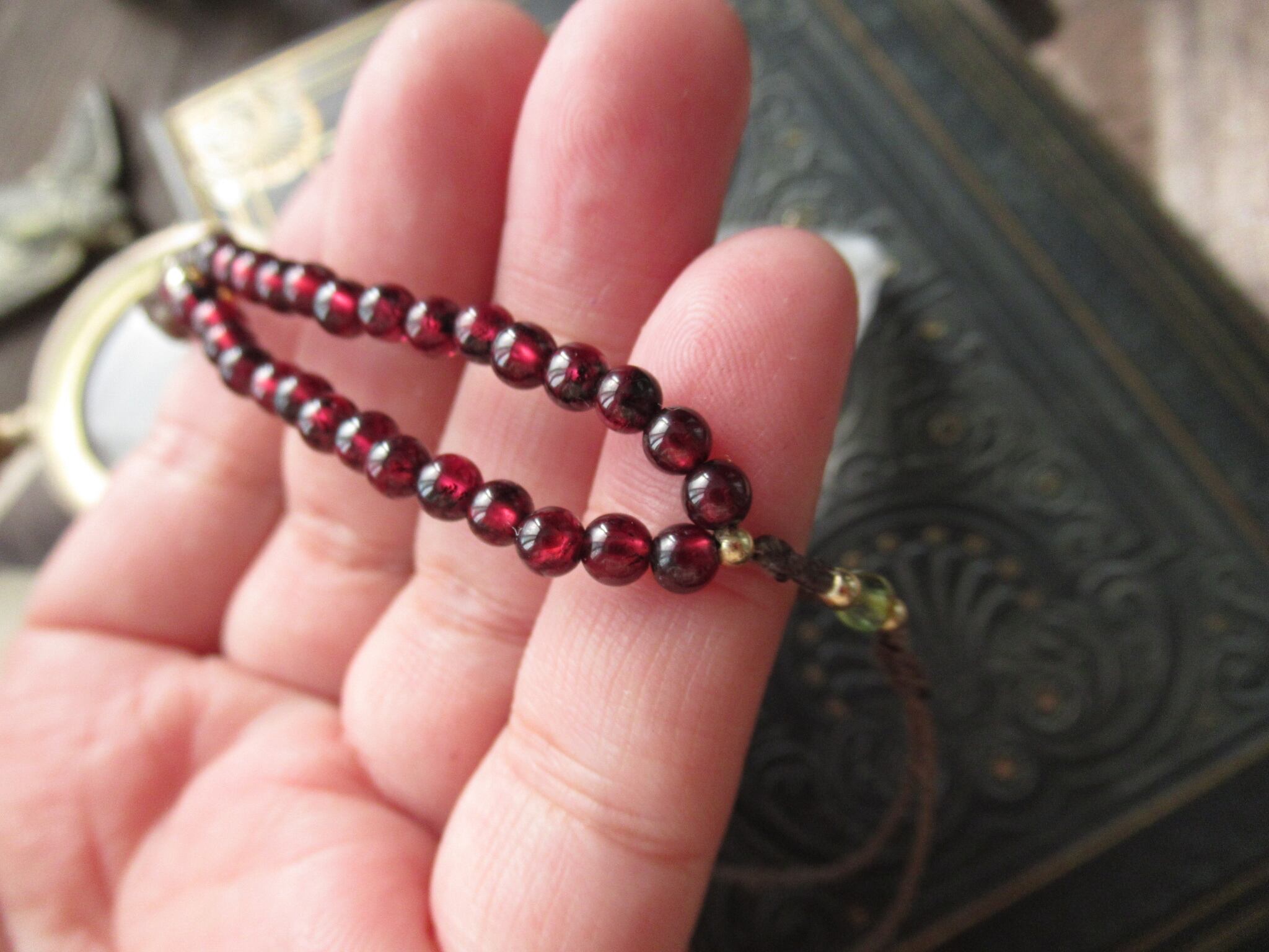 両サイドのガーネットのビーズはストレートでもお使いいただけますし、くるん、と指で回して二重螺旋としてお楽しみいただけるようにお仕立ていたしました。