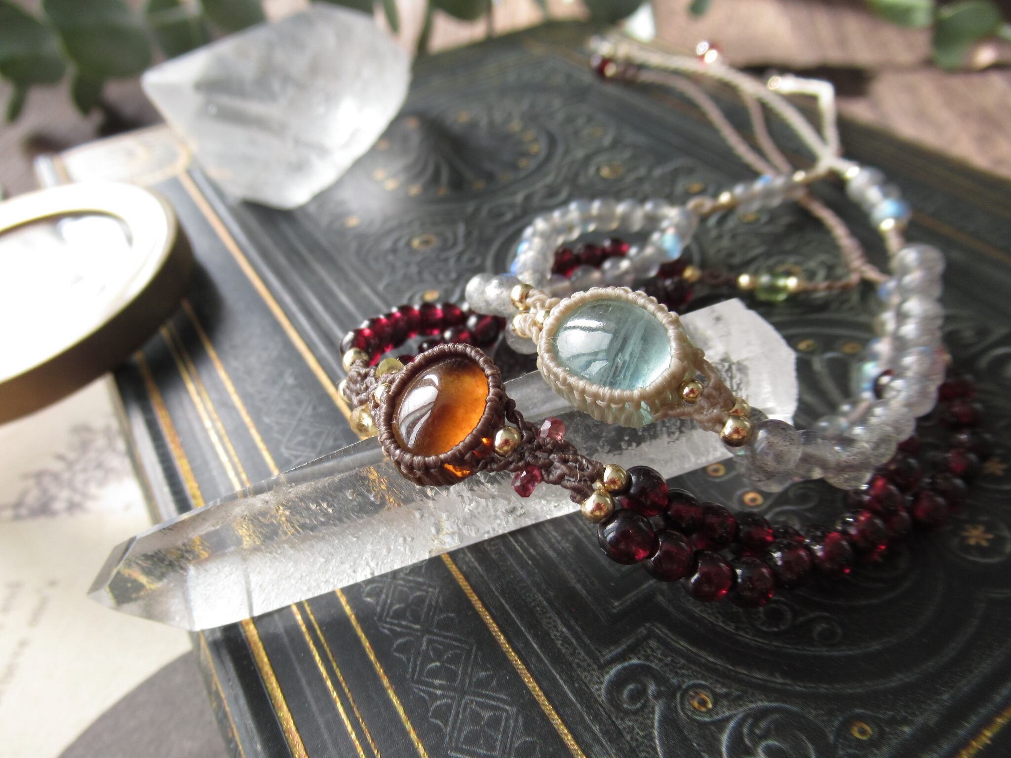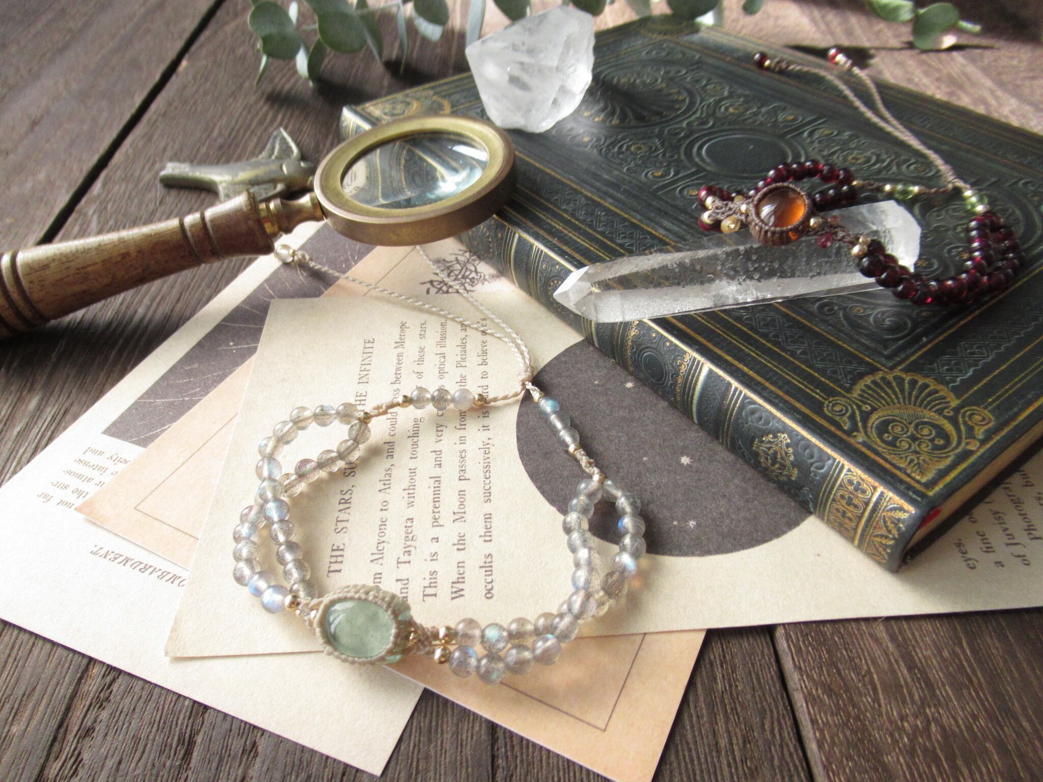 両サイドのラブラドライトのビーズはストレートでもお使いいただけますし、くるん、と指で回して二重螺旋としてお楽しみいただけるようにお仕立ていたしました。