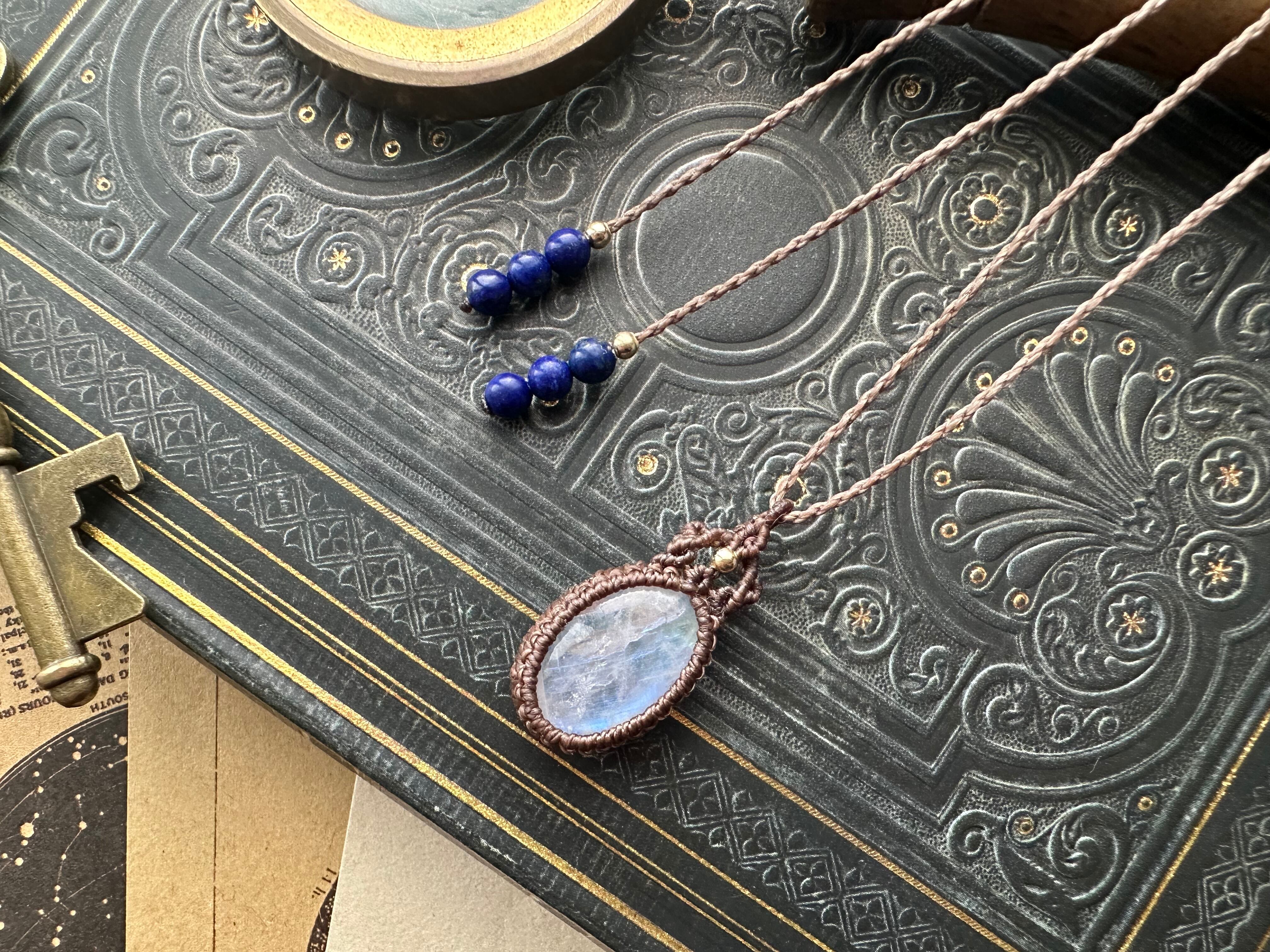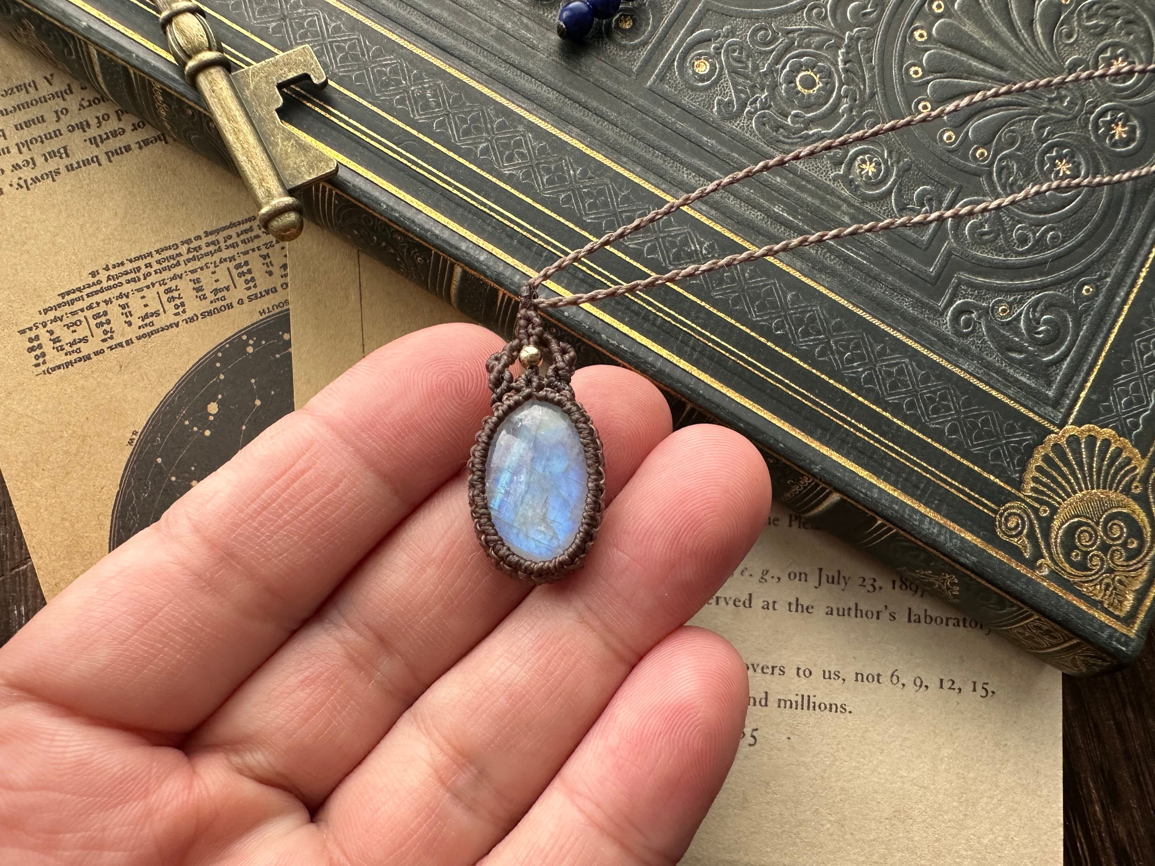 レインボームーンストーンのマクラメペンダント / 0.5mm仕上げ