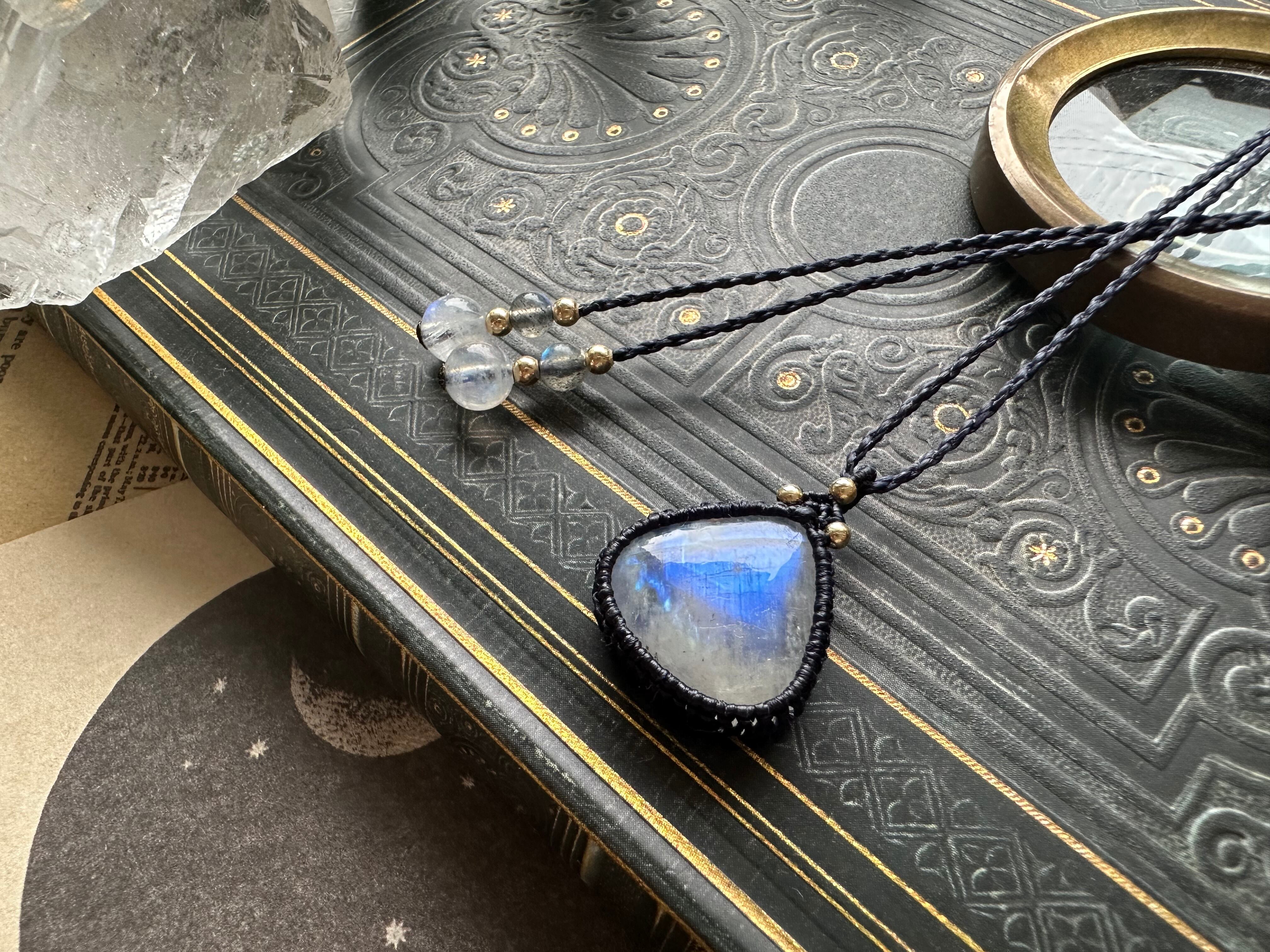 レインボームーンストーンのマクラメペンダント