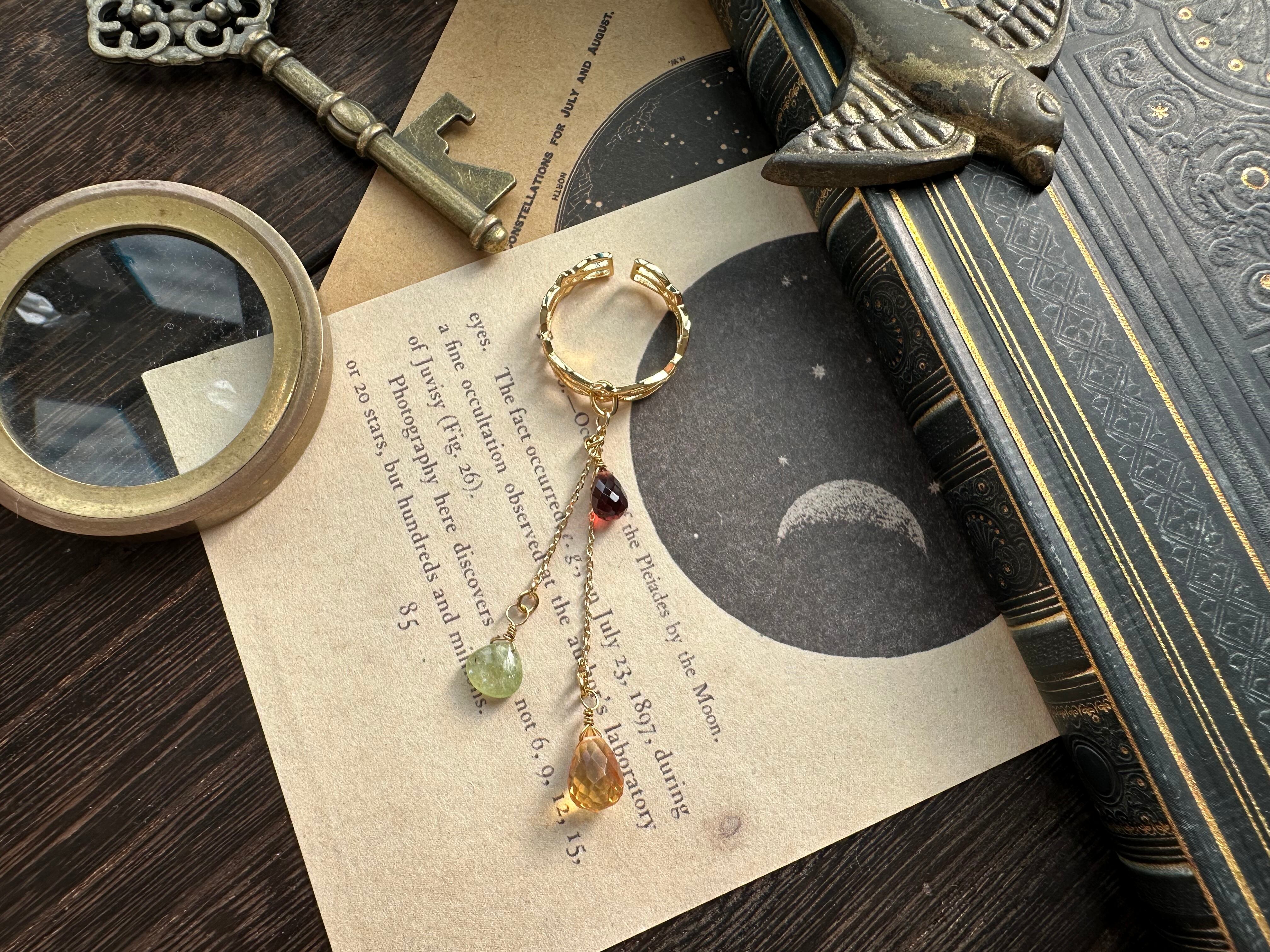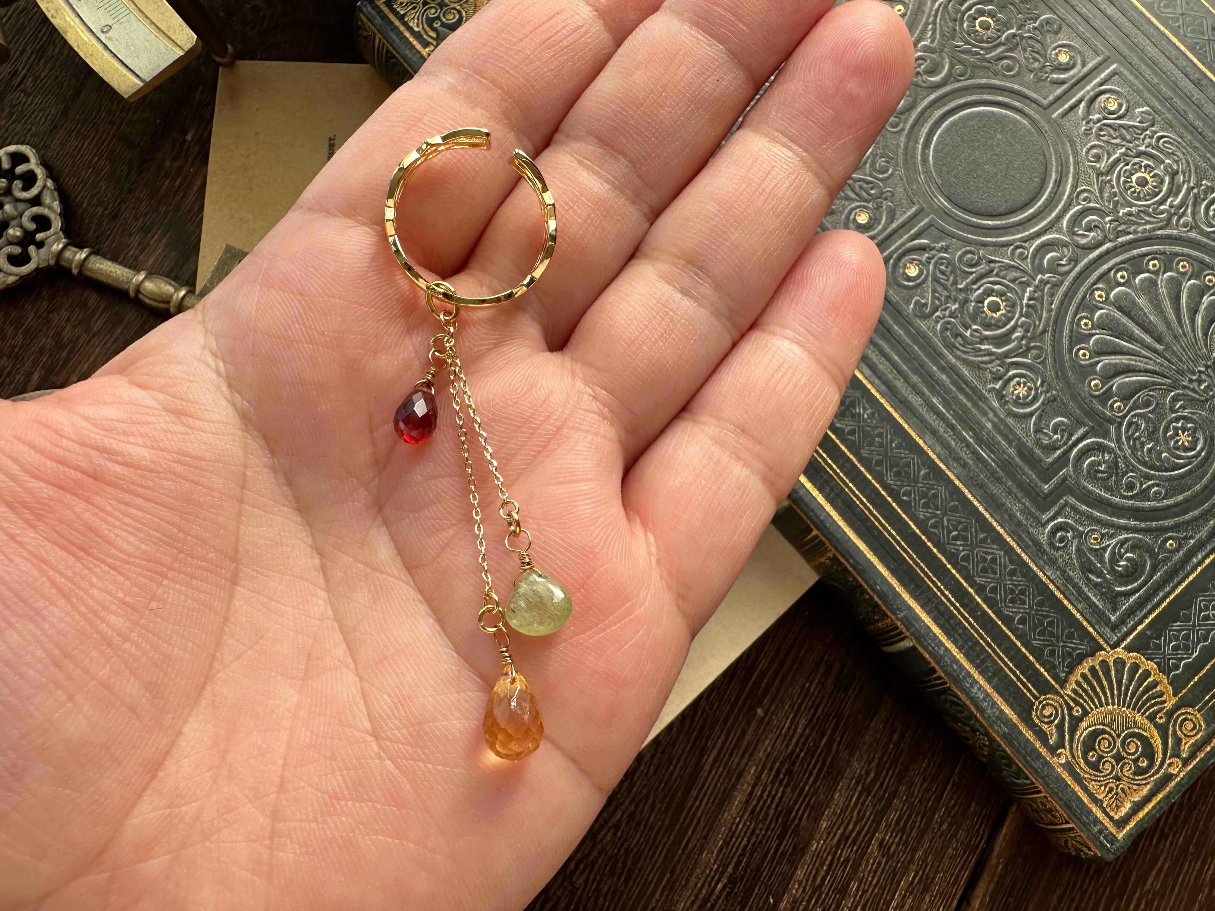 ≪片耳用≫ 揺れる天然石の雫のイヤーカフ / ブラジル産シトリン×グリーンカイヤナイト×ガーネット