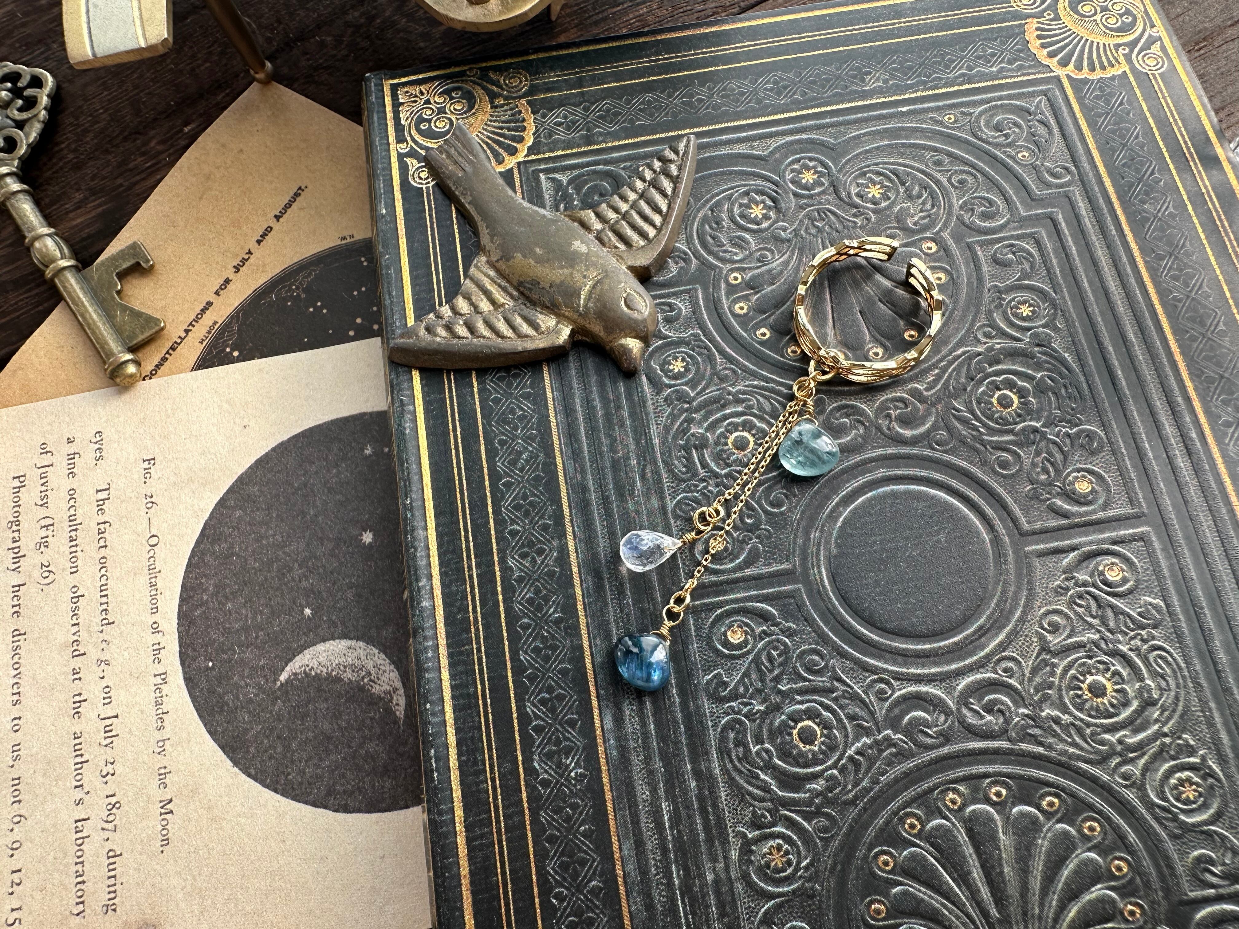 ≪片耳用≫ 揺れる天然石の雫のイヤーカフ / 宝石質グリーンカイヤナイト×レインボームーンストーン