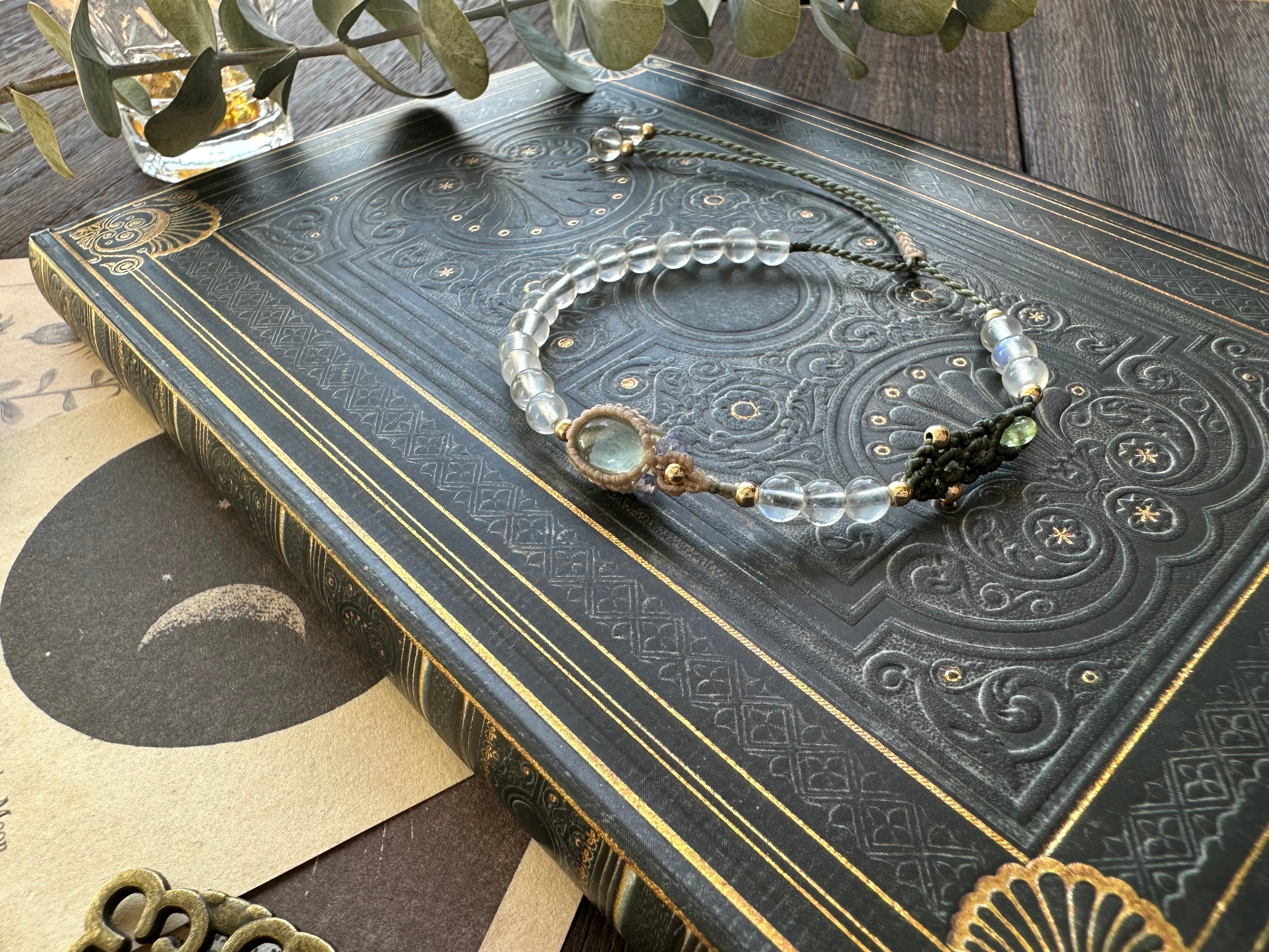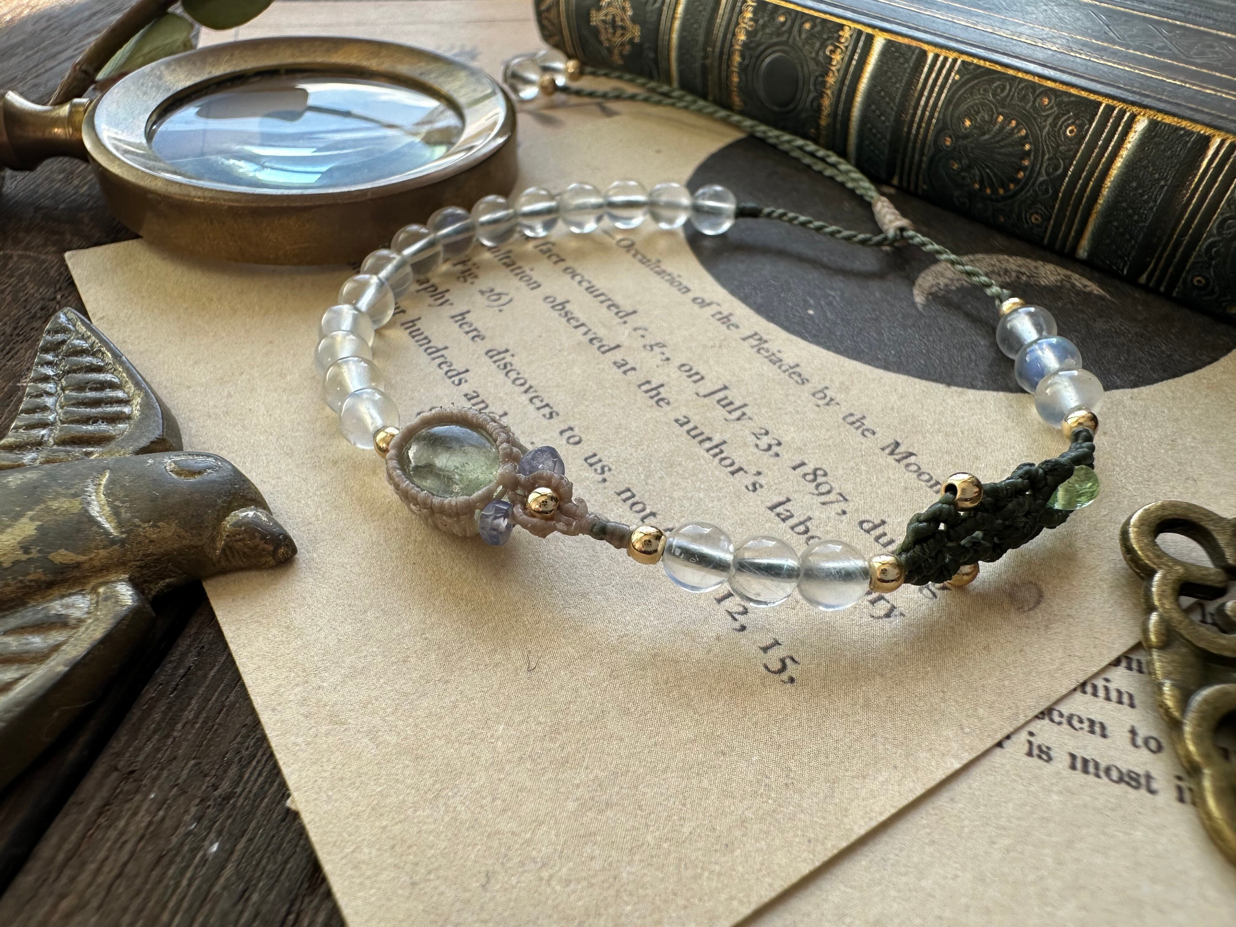 グリーンベリルとペリステライトのマクラメブレスレット /0.25mm仕上げ