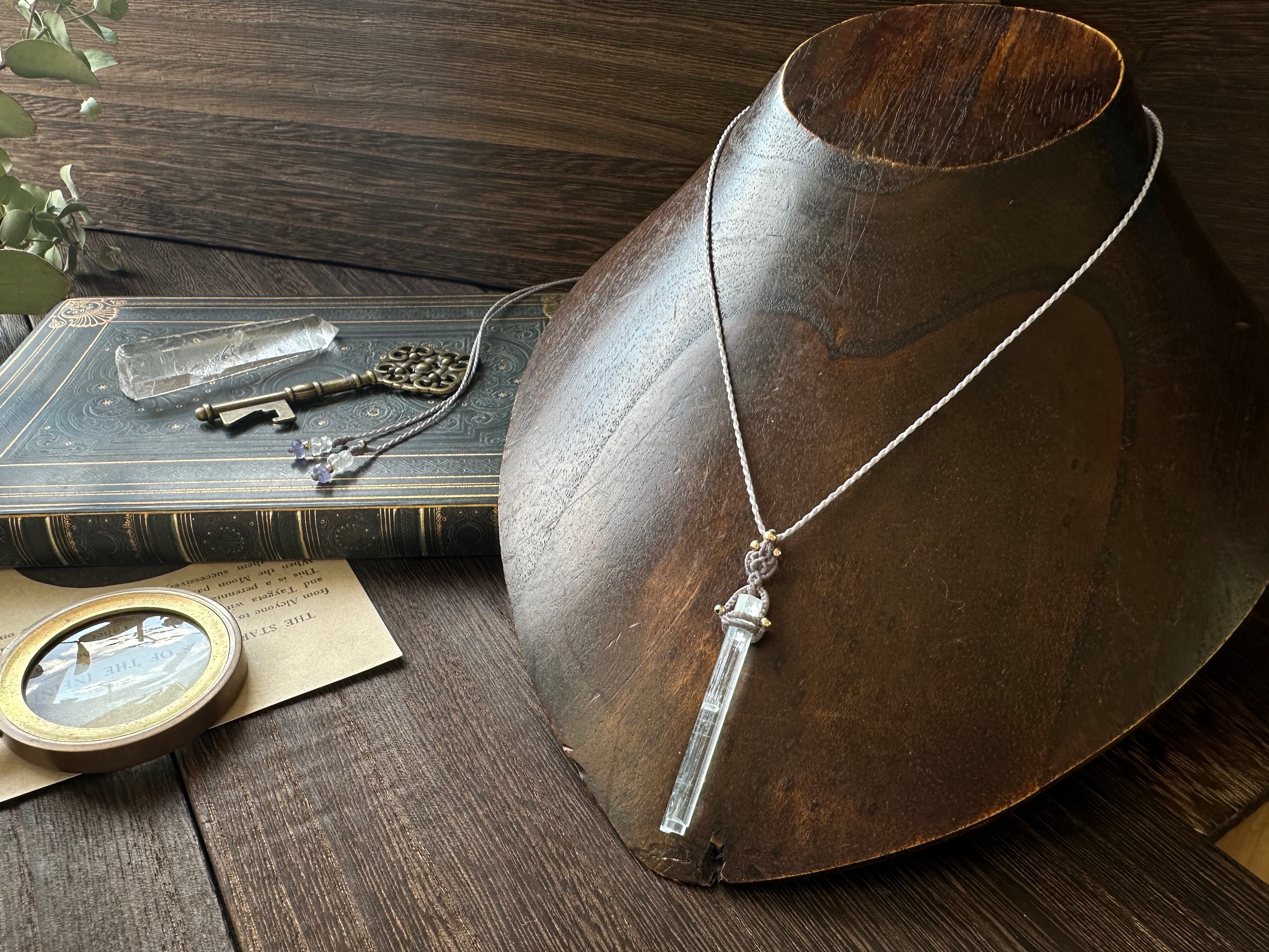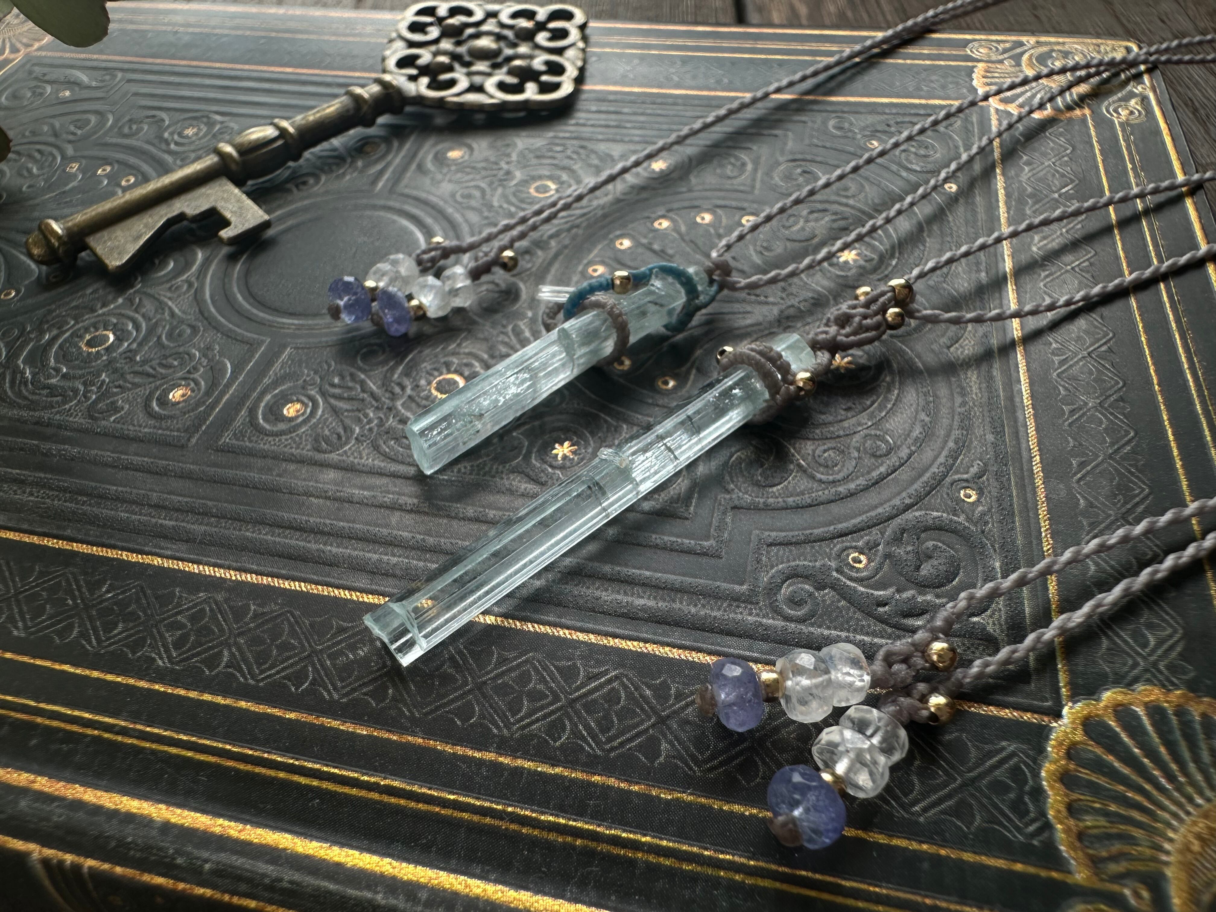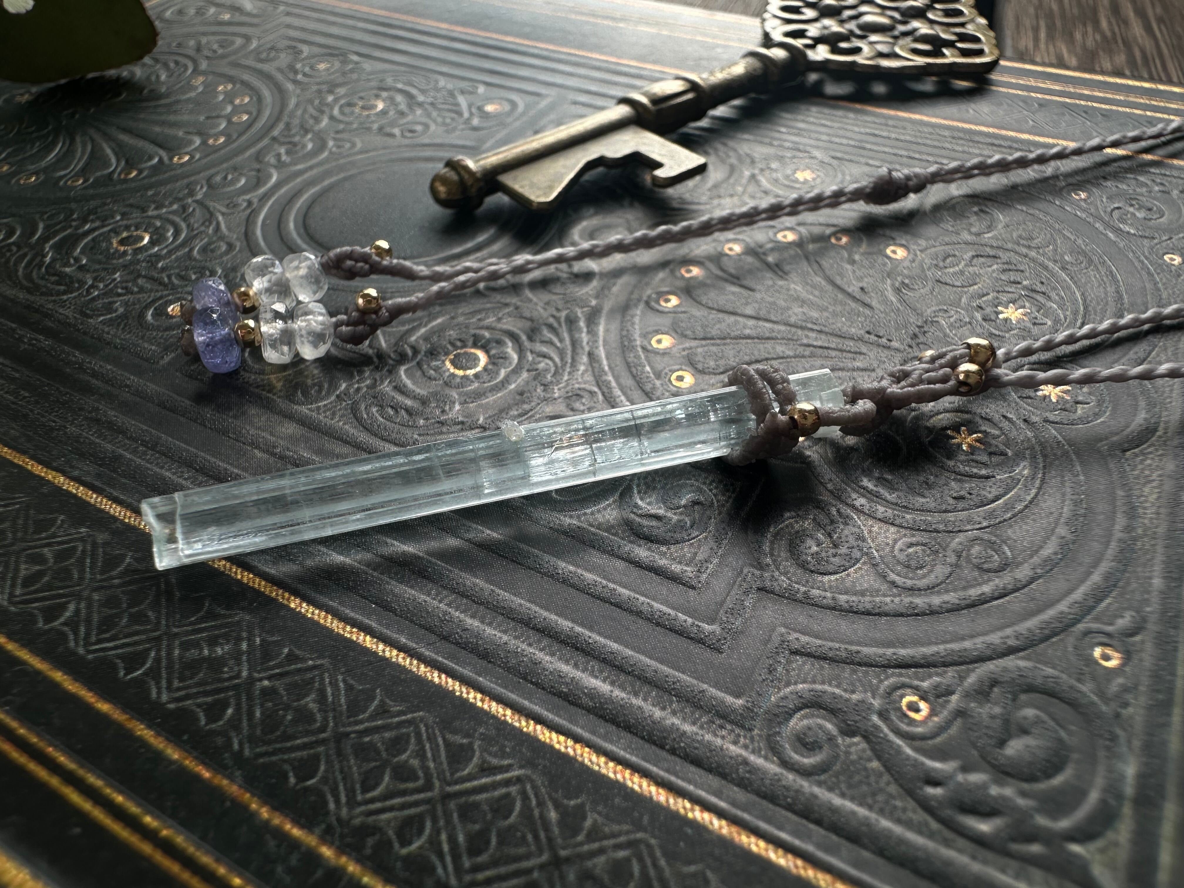 凛とした佇まいの剣のような趣を感じさせる透明感のあるアクアマリンの原石を、毎日身につけられるペンダントにお仕立ていたしました。