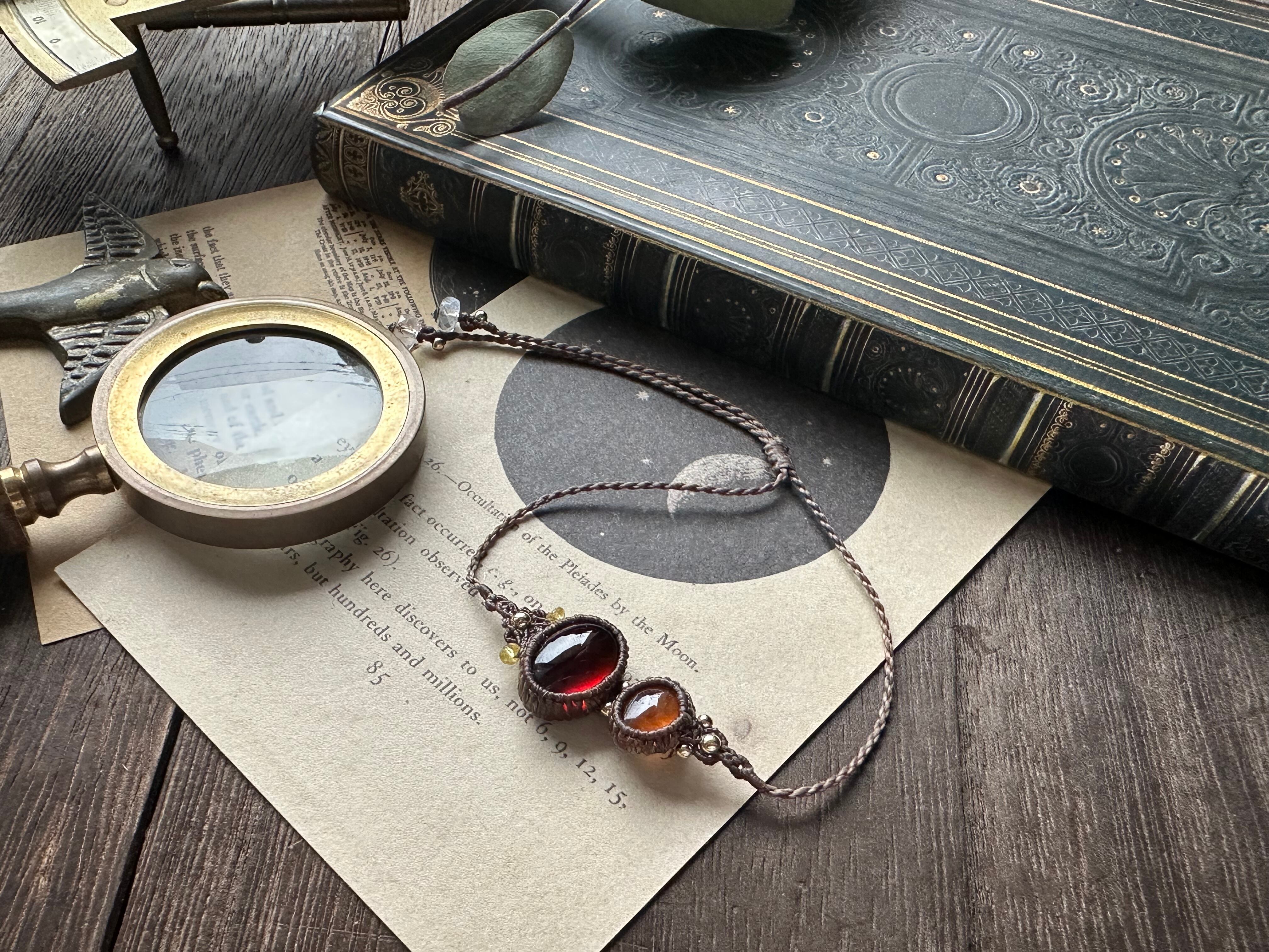 2粒の色彩が異なる粒感が美しいヘソナイトガーネットを、日常使いしやすいカジュアルでシンプルなブレスレットに仕立てました。