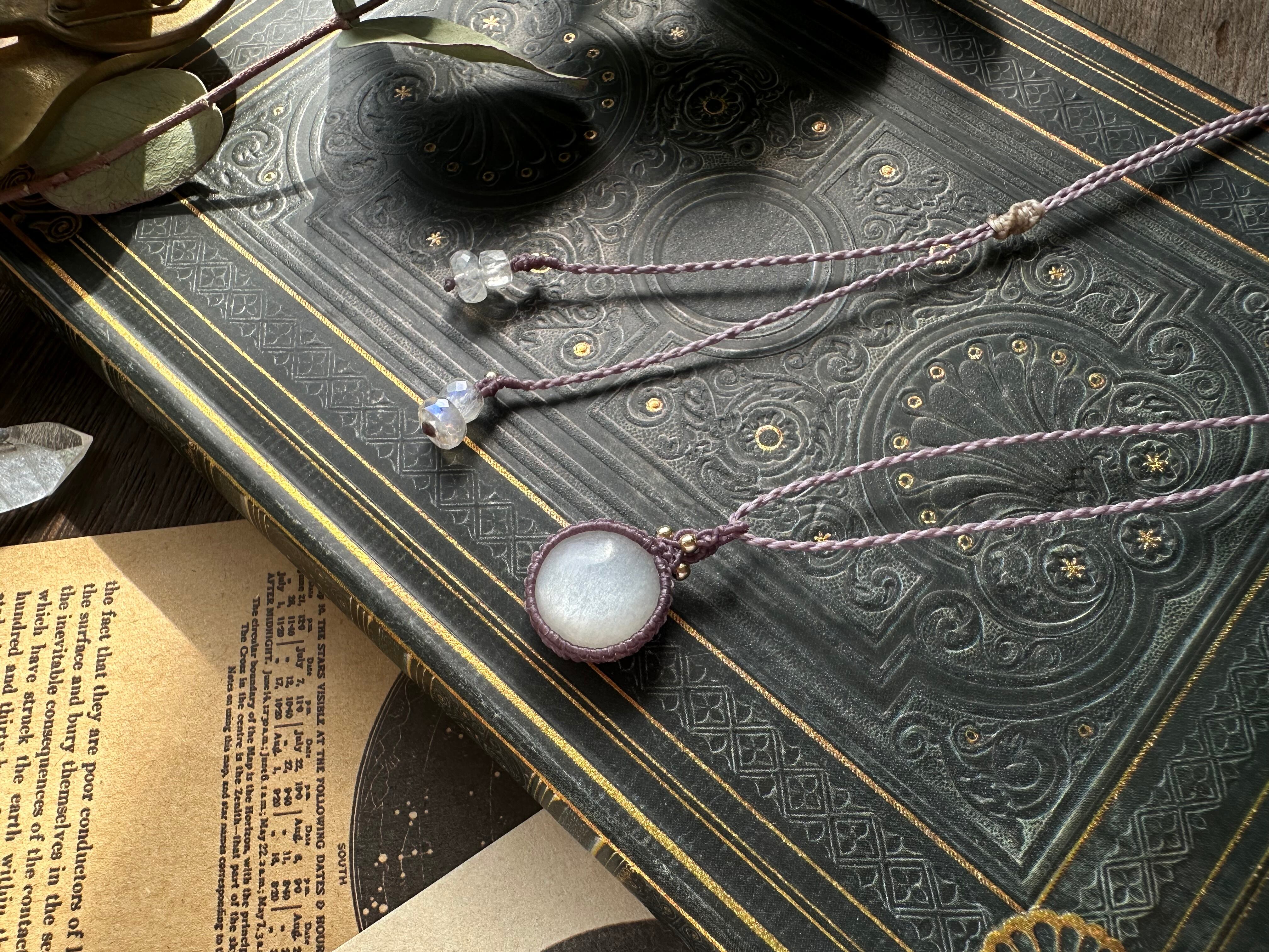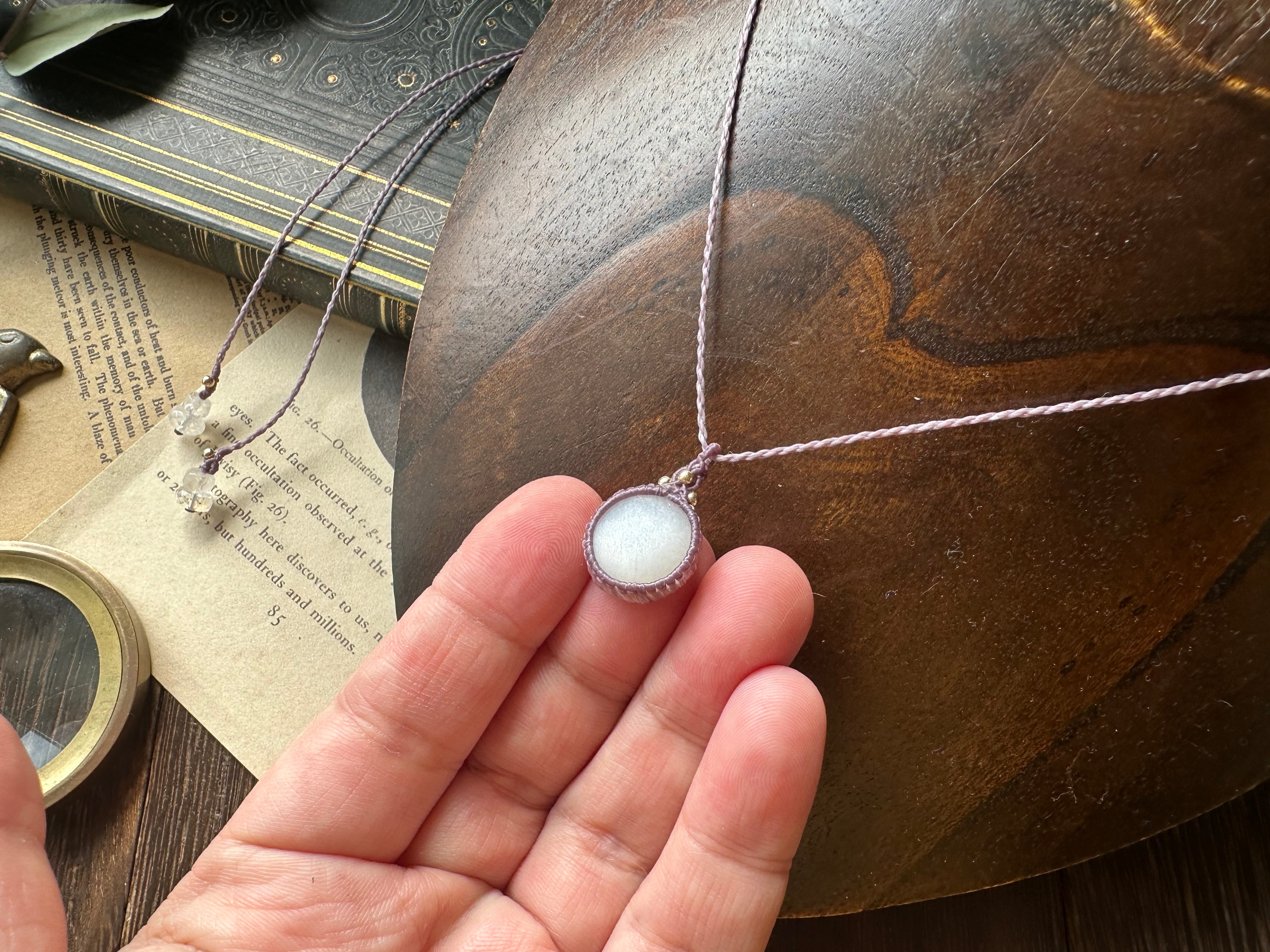 ころんと愛らしい形状のホワイトムーンストーンでシンプルなペンダントを製作致しました。
