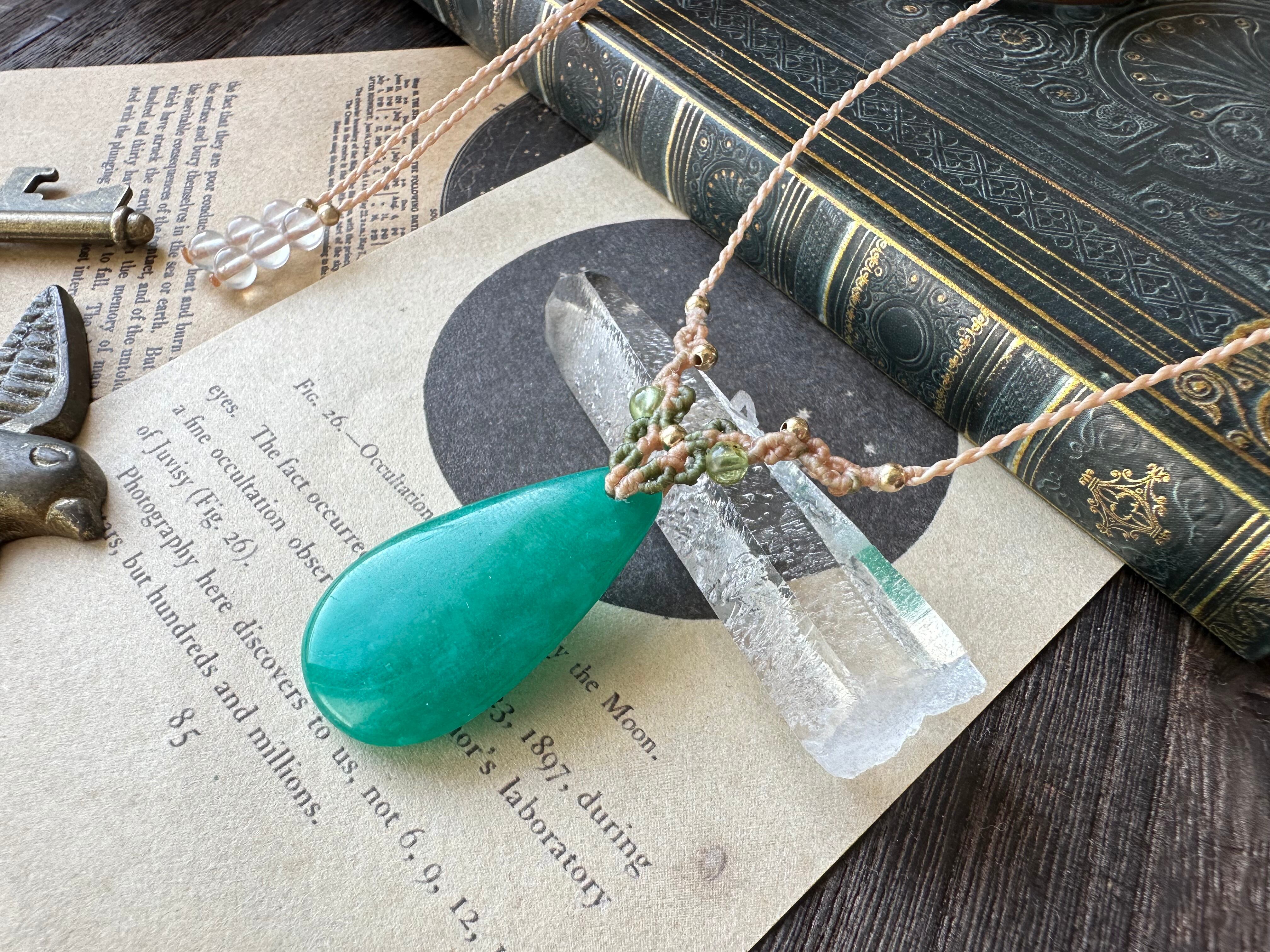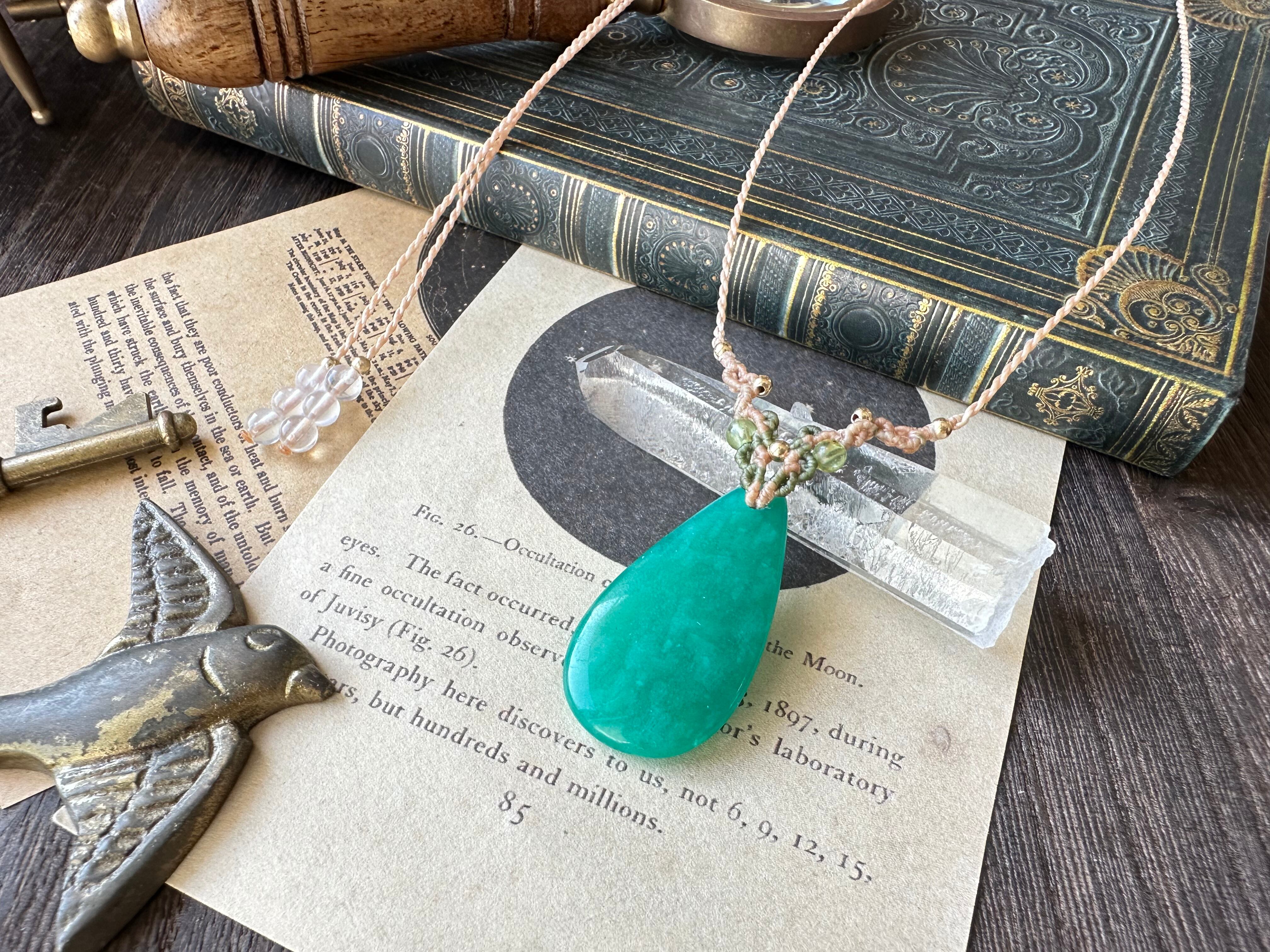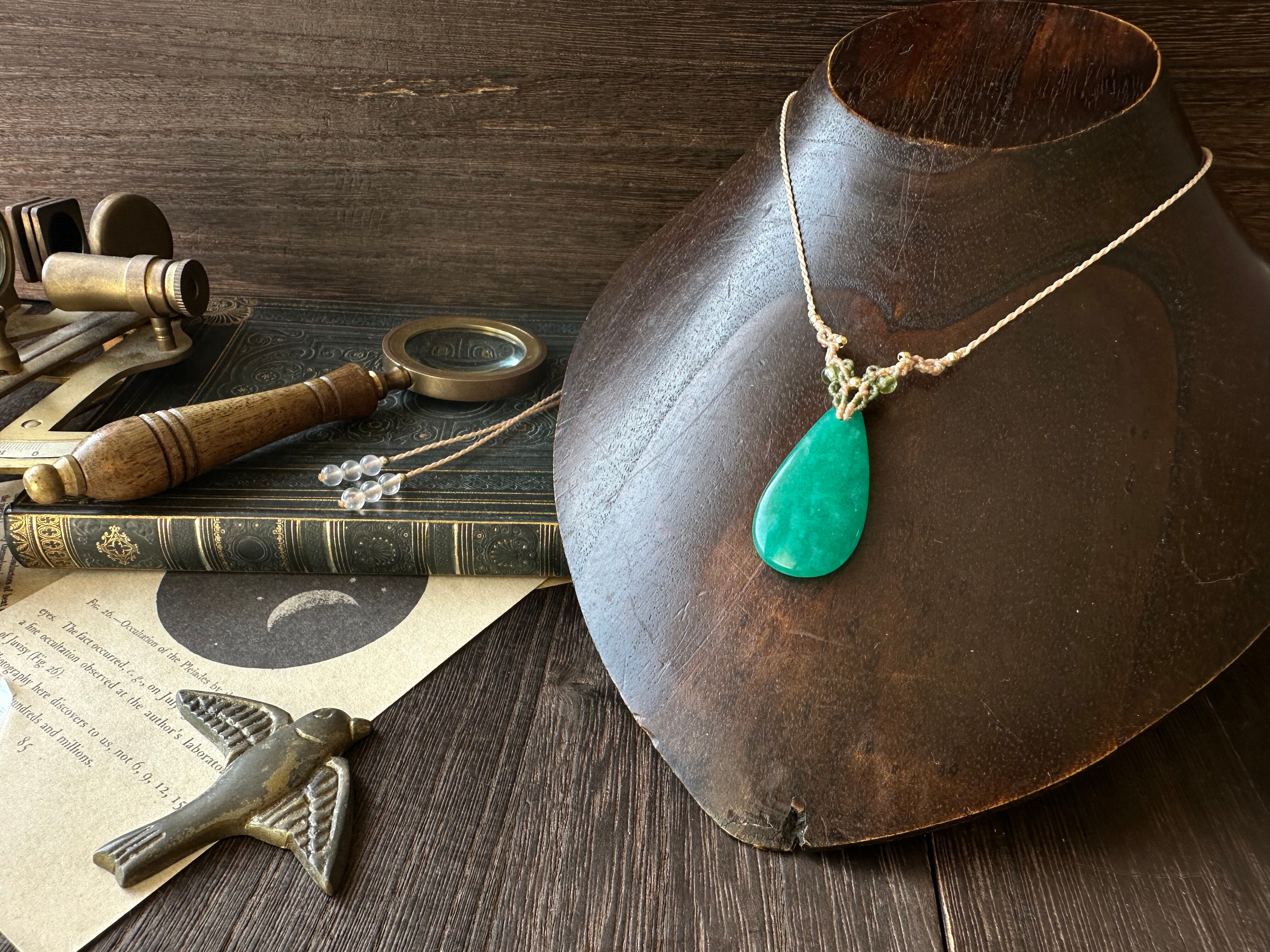 大粒で美しいグリーンのアマゾナイト、春を先取りしたようなマクラメネックレスをお仕立ていたしました。
