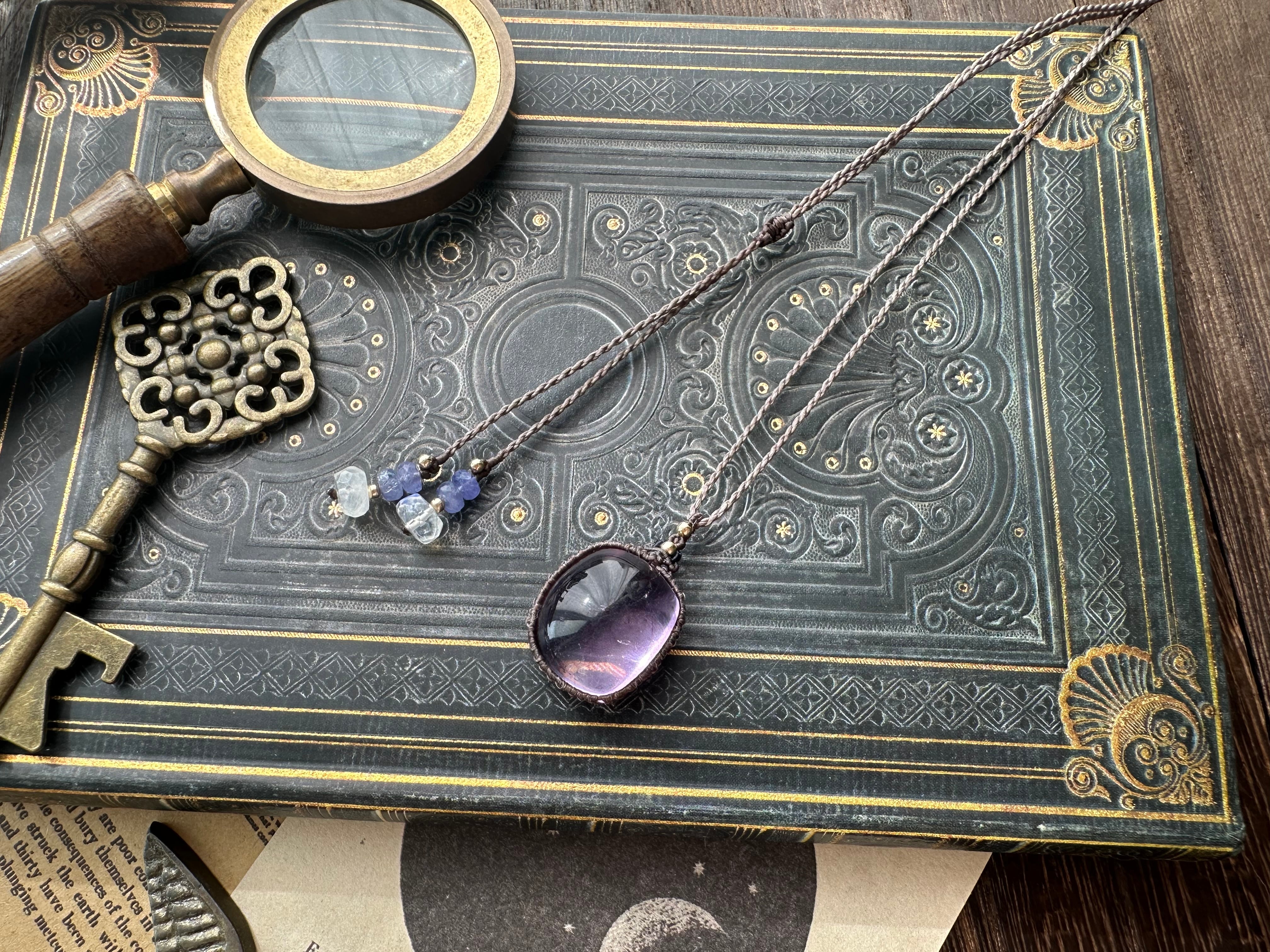 ブラジル産ツートンカラーアメジストのマクラメペンダント / 0.25㎜仕上げ